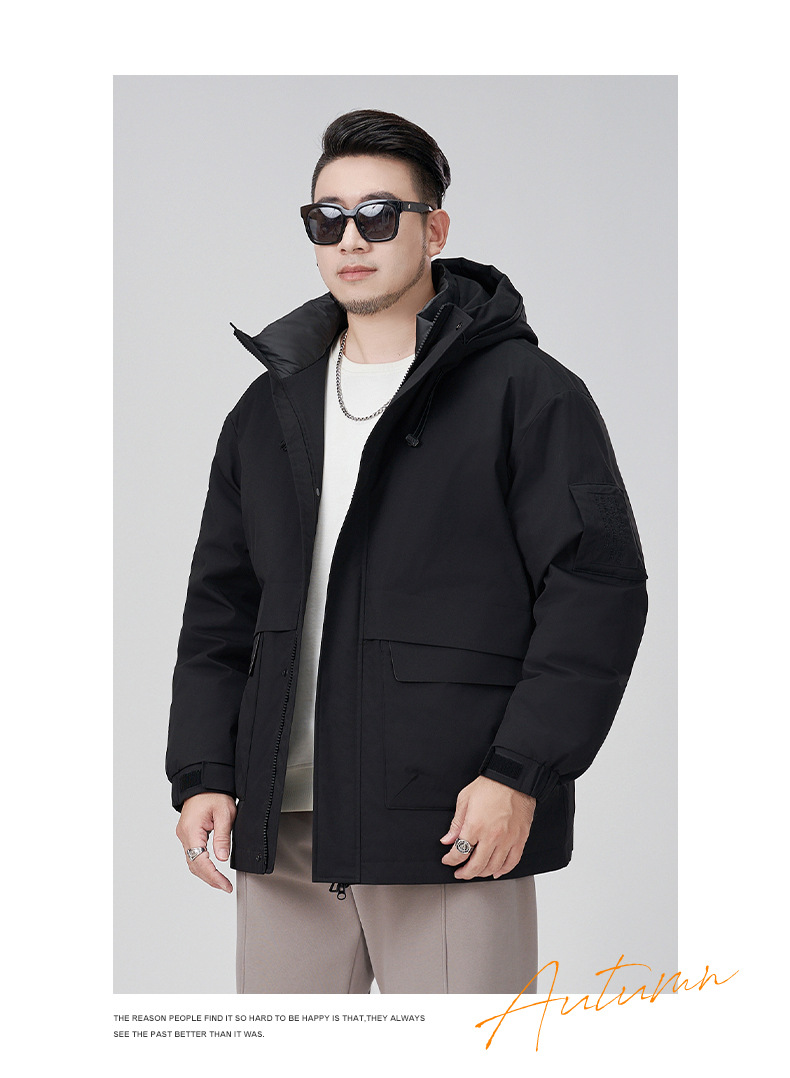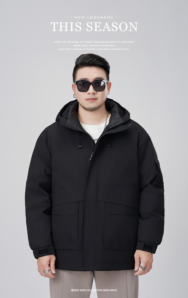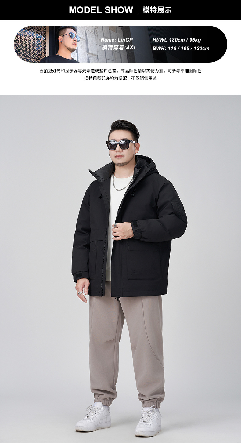 【두꺼운 다운 재킷】빅사이즈 남성복 신상 화이트 덕다운 보풀방지 겨울 따뜻한 후드탑 재킷 남성용