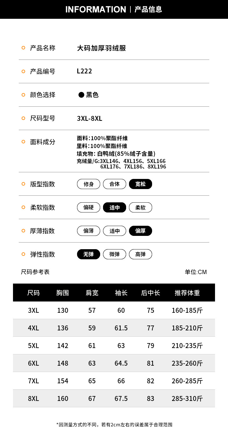 3XL146、4XL156、5XL166、6XL176、7XL186、8XL196