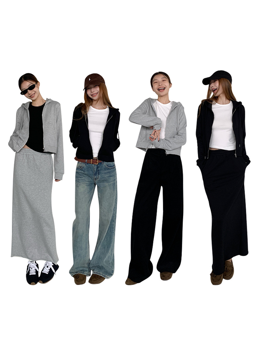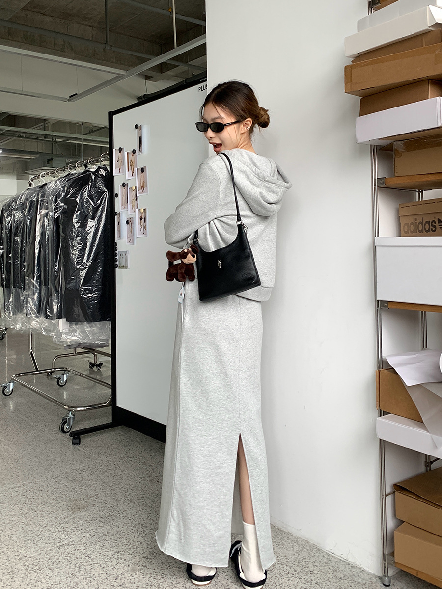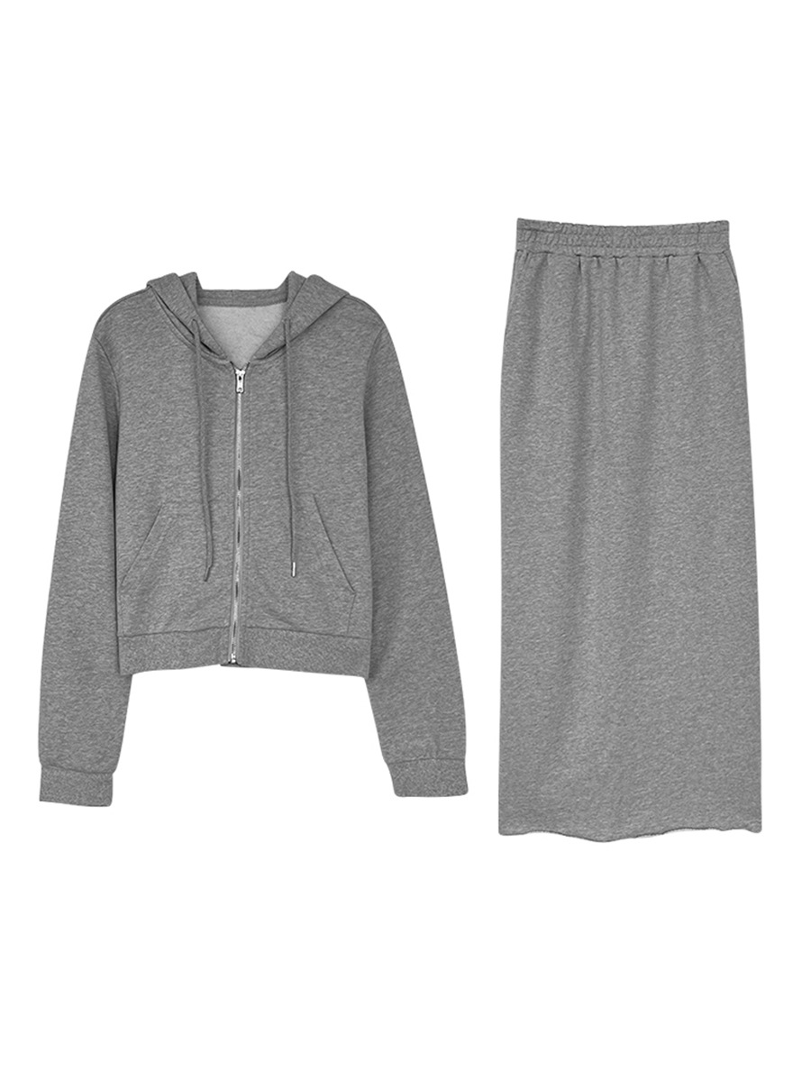 Nantao 루즈 캐주얼 짧은 스포츠 후드 티셔츠 여성 2025 가을 솔리드 컬러 슬림 a 라인 스커트 정장