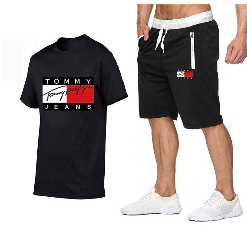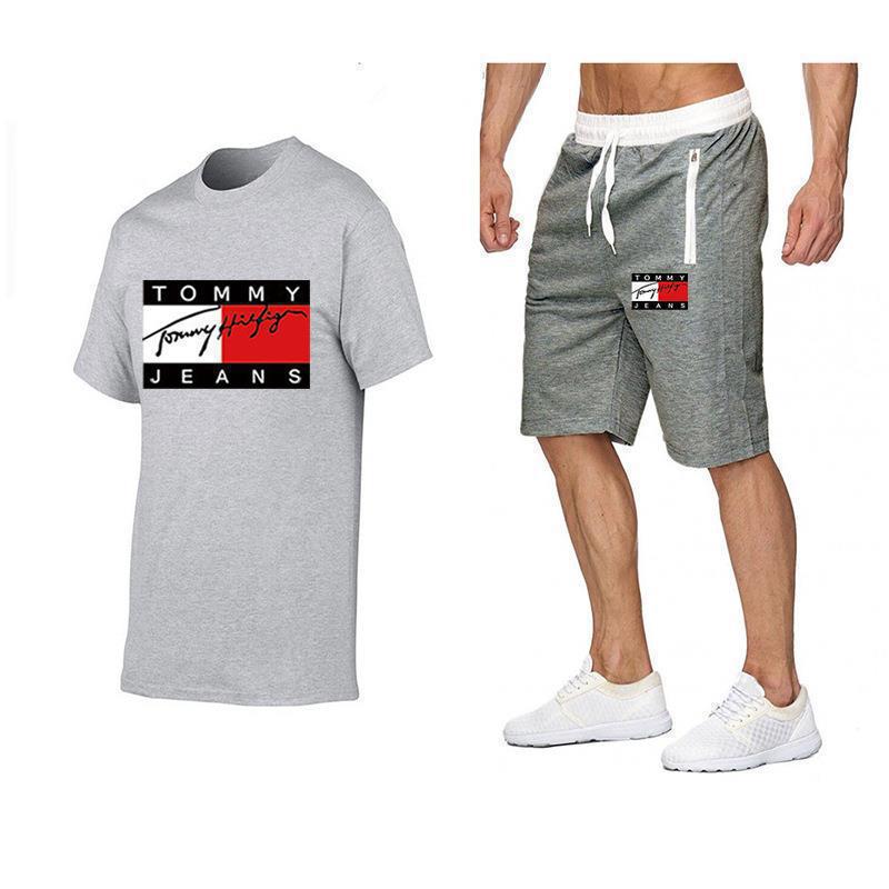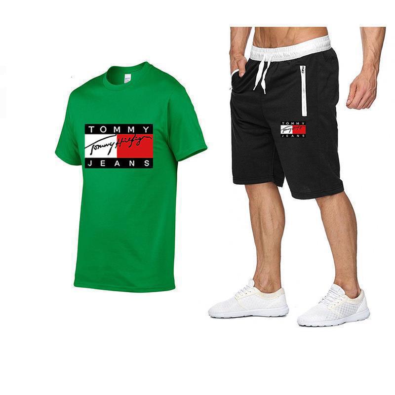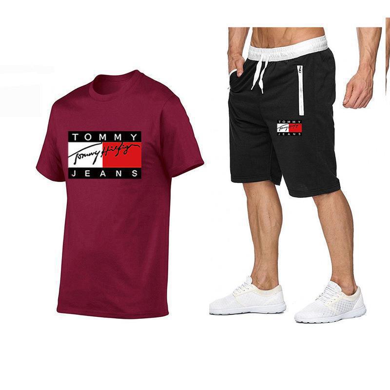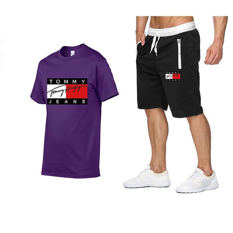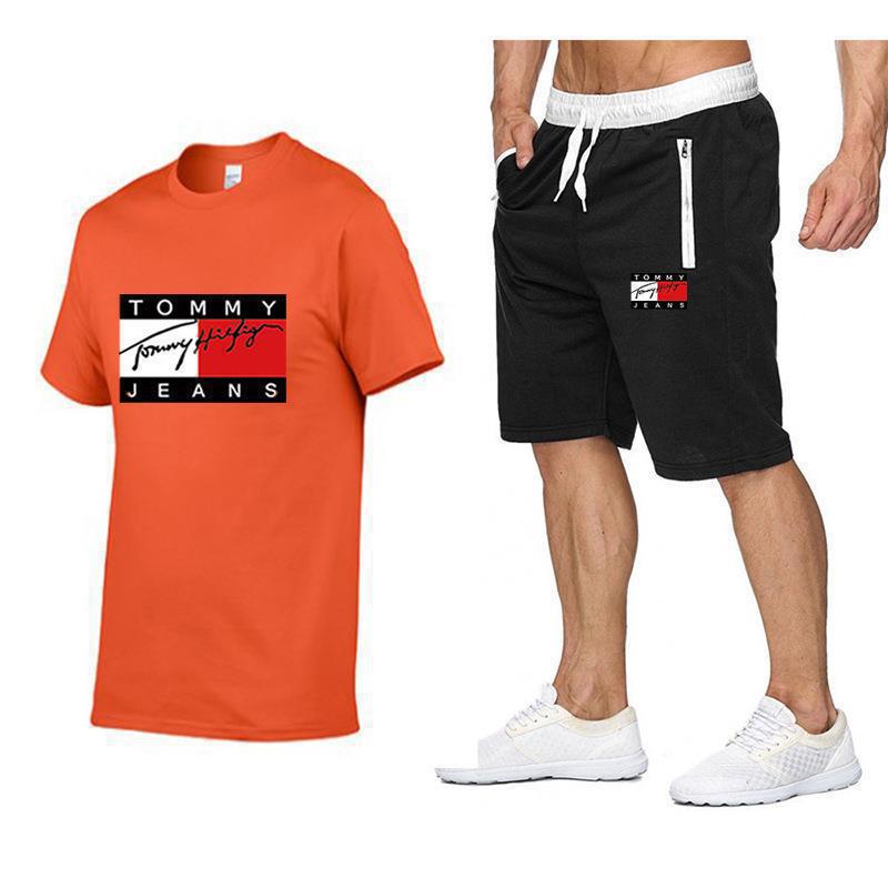 외국인 무역 새로운 여름 남성 티셔츠 비치 바지 캐주얼 패션 반바지 지퍼 바지 스포츠 세트 남성