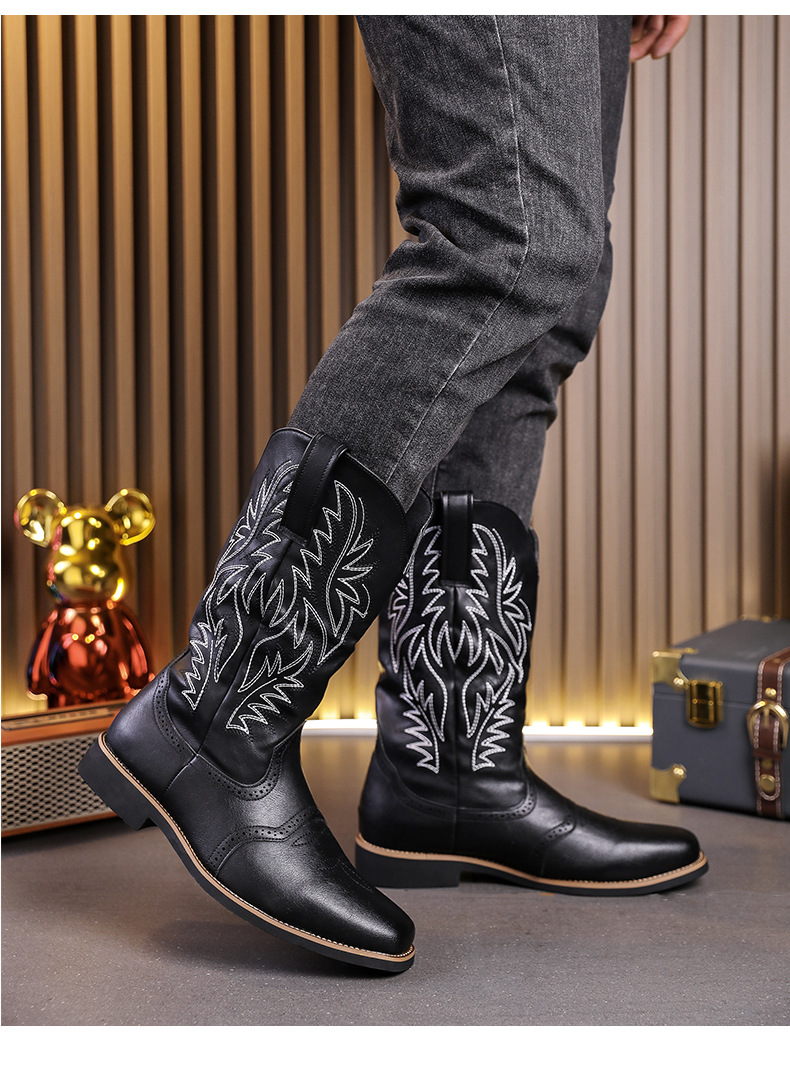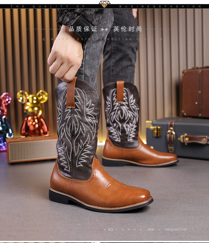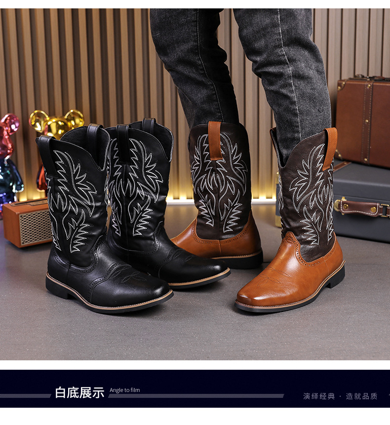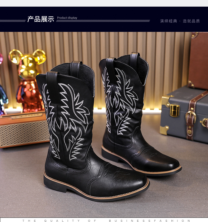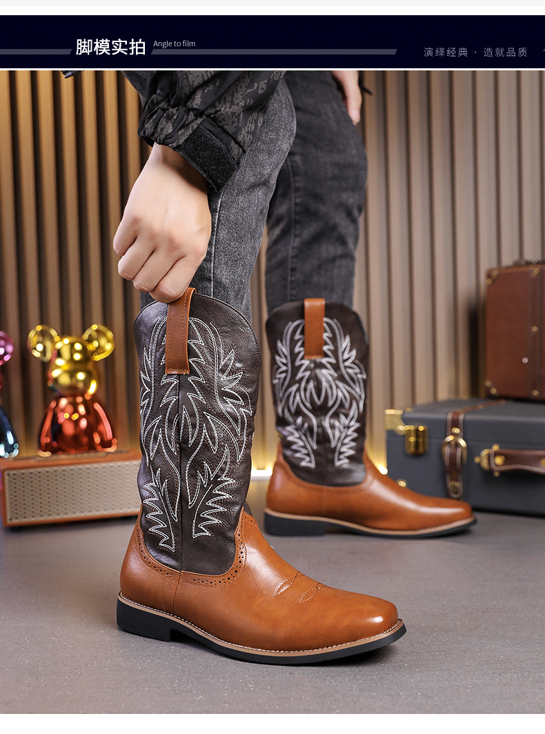2024 사계절 국가 조수 꽃 조각 마틴 하이 엔드 플러스 사이즈 코트 스타일 복고풍 작업복 오토바이 부츠 대외 무역 남성 신발 도매