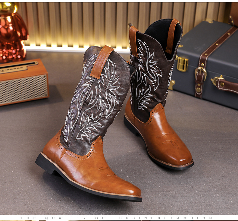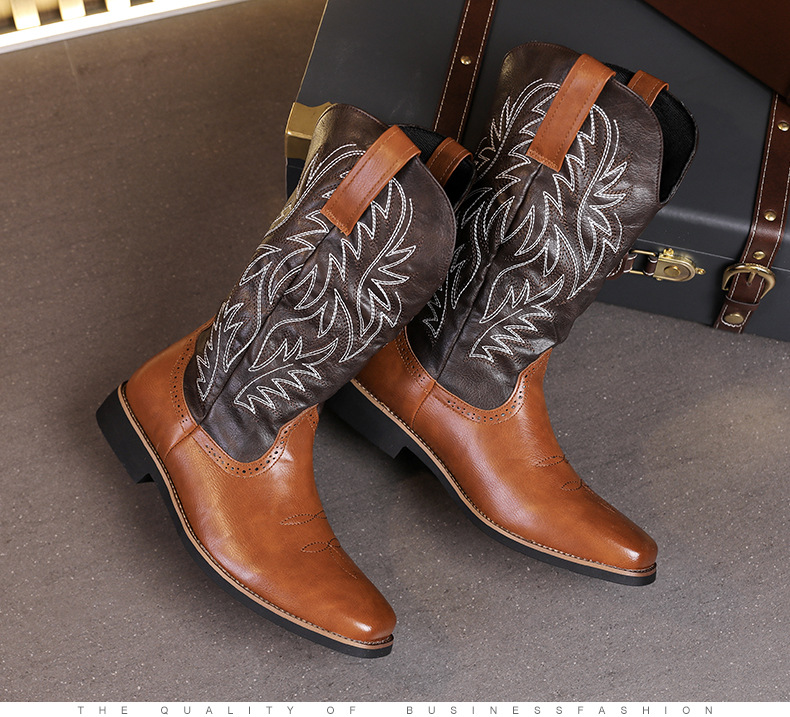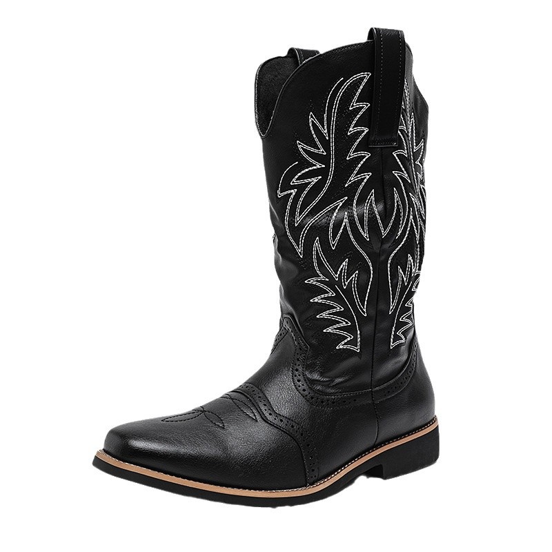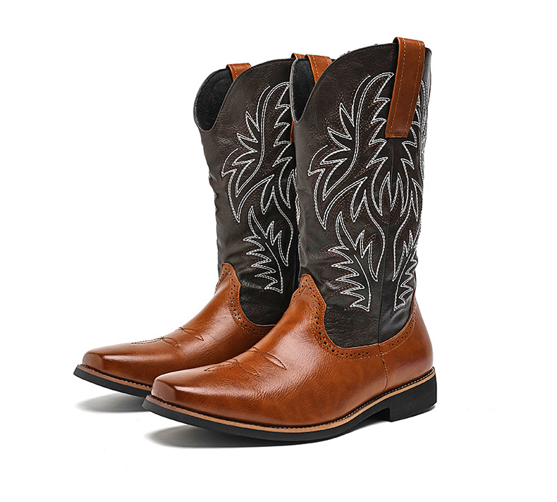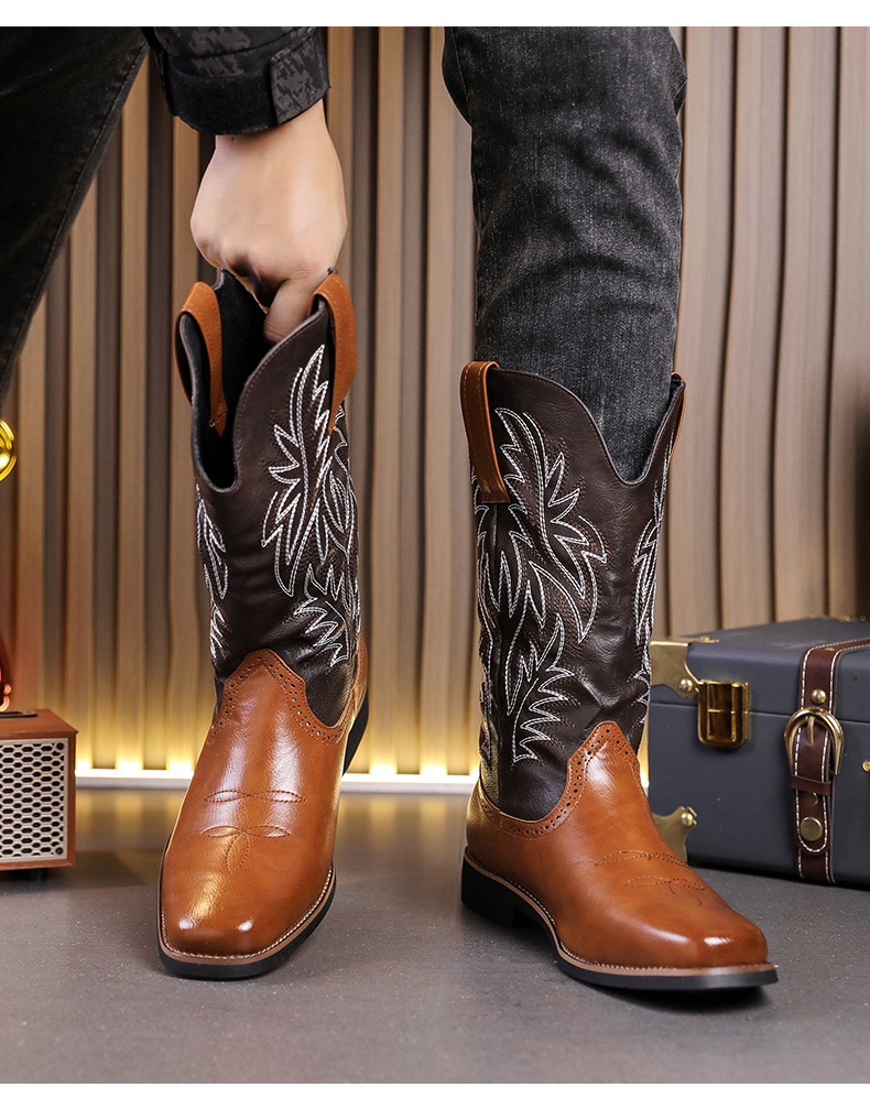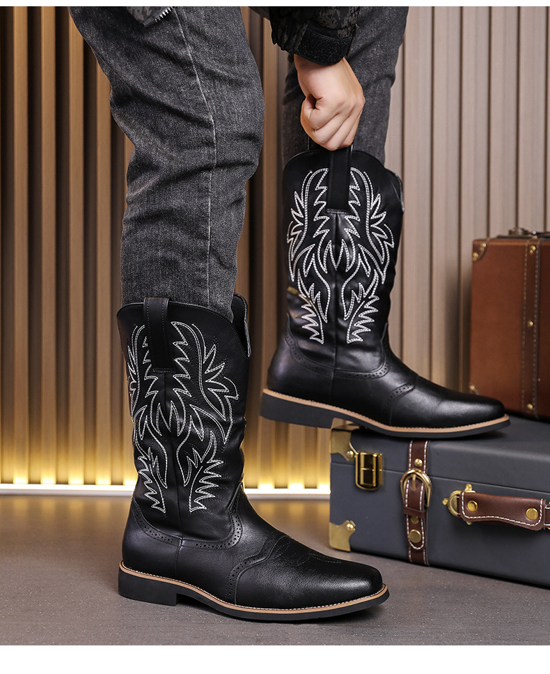 2024 사계절 국가 조수 꽃 조각 마틴 하이 엔드 플러스 사이즈 코트 스타일 복고풍 작업복 오토바이 부츠 대외 무역 남성 신발 도매