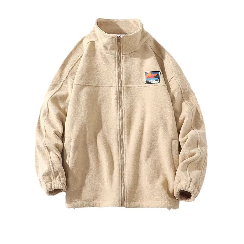 가을과 겨울 남자 홍콩 스타일 양털 지퍼 가죽 라벨 재킷 남성용 크로스 보더 캐주얼 스웨트 셔츠 루즈 재킷