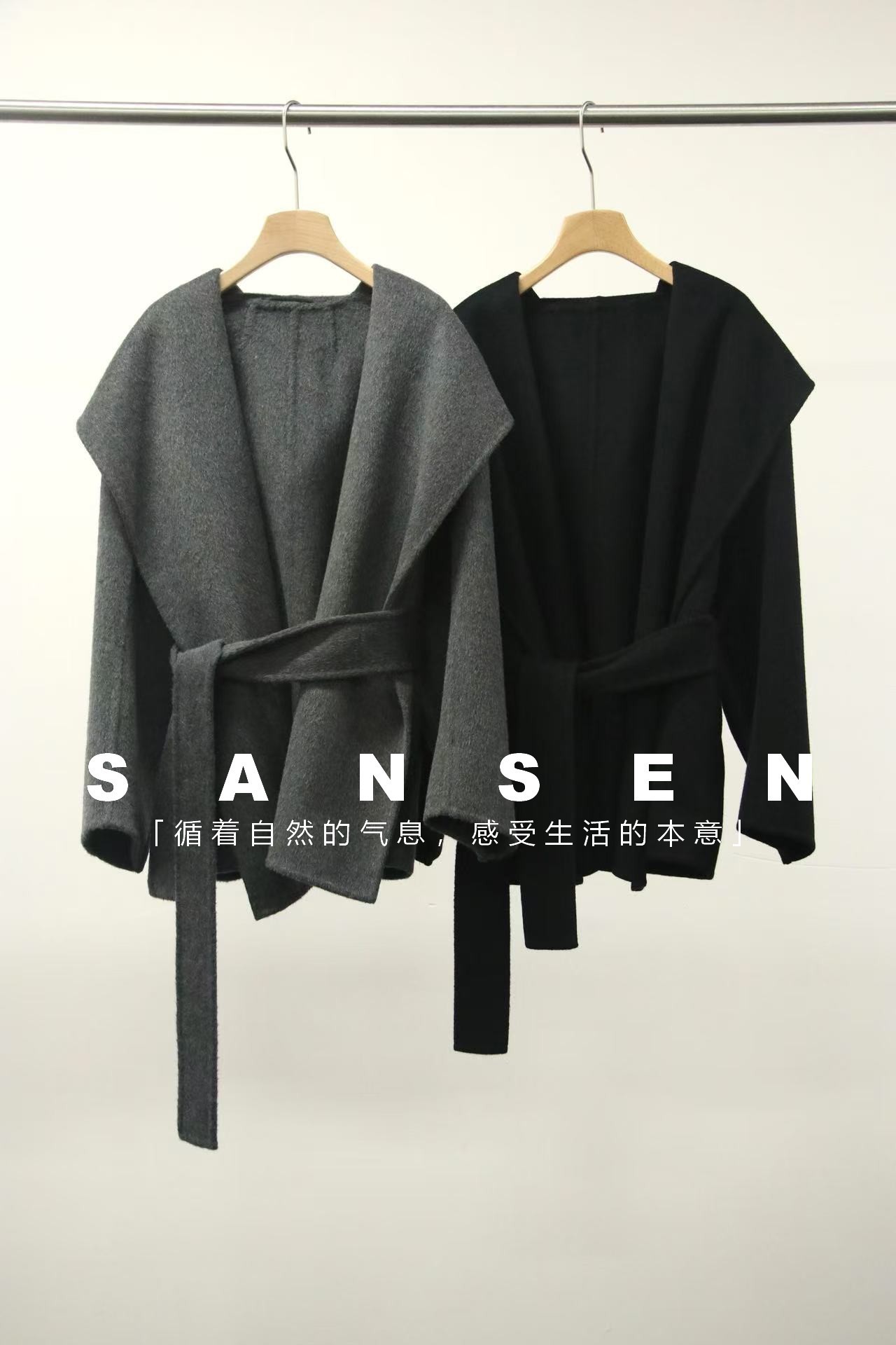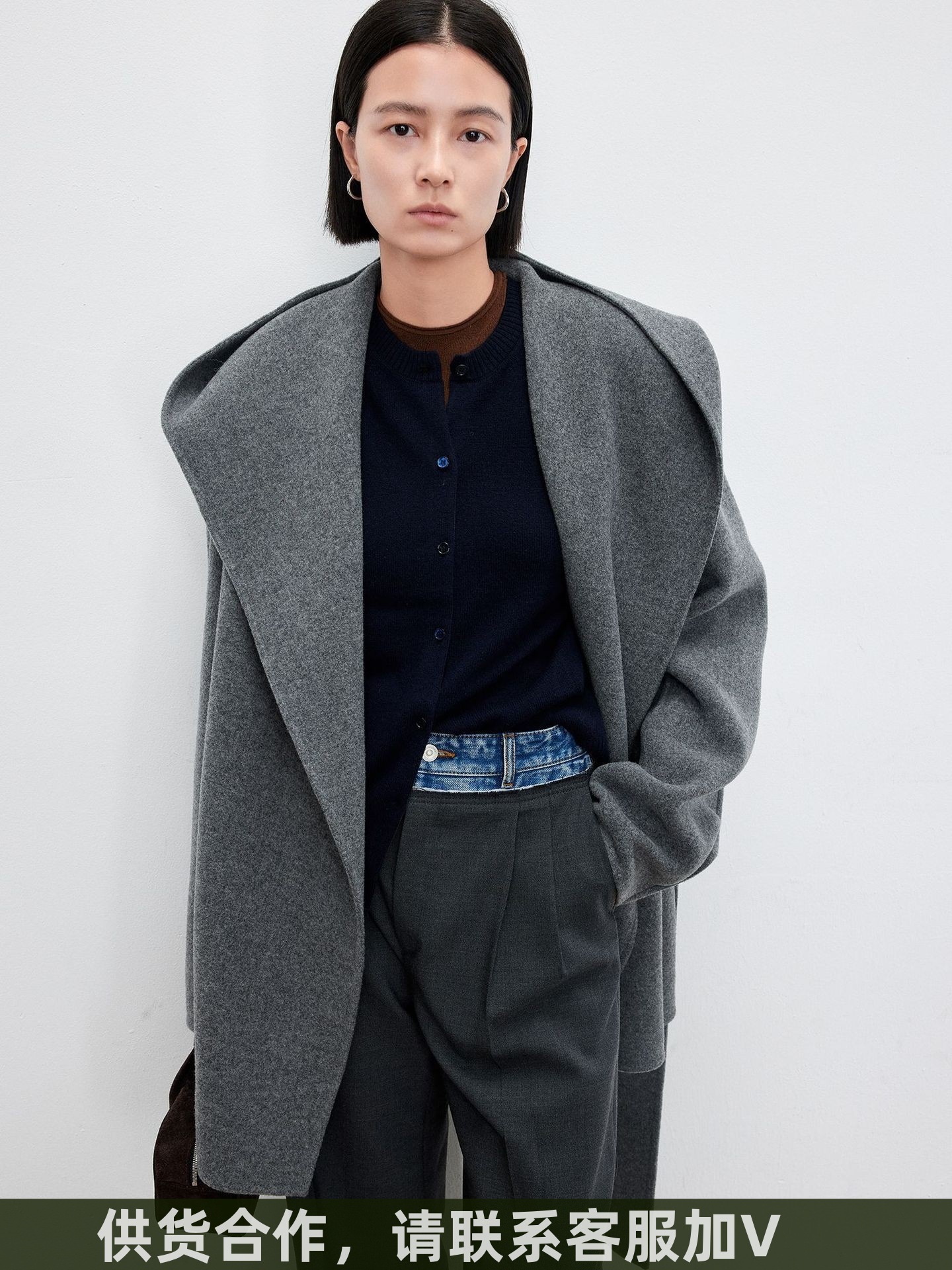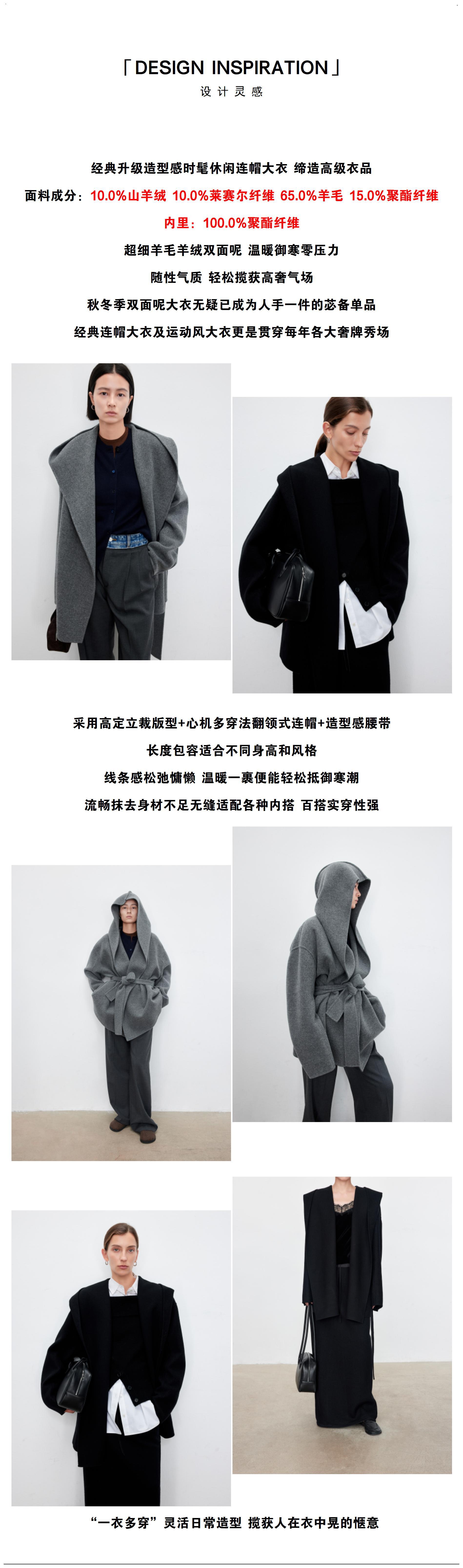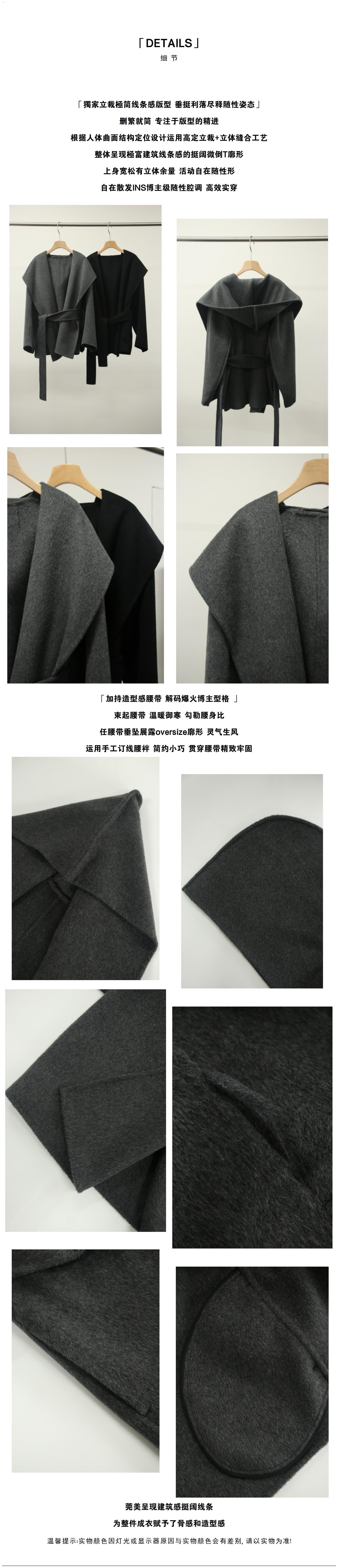 JOC 카운터 탑 럭셔리 실크 캐시미어 울 양면 양모 짧은 유행 구조 라인 느낌 후드 코트