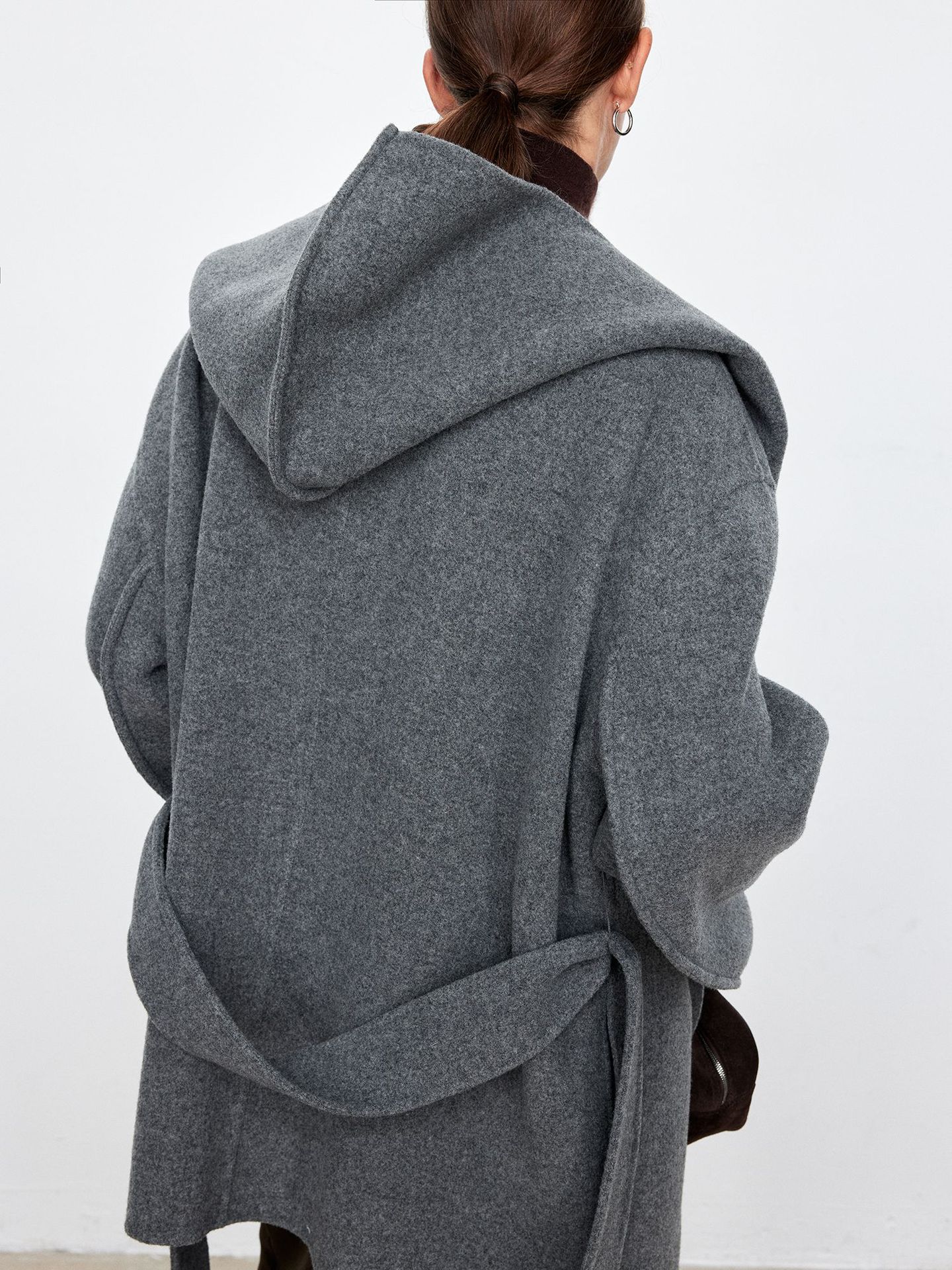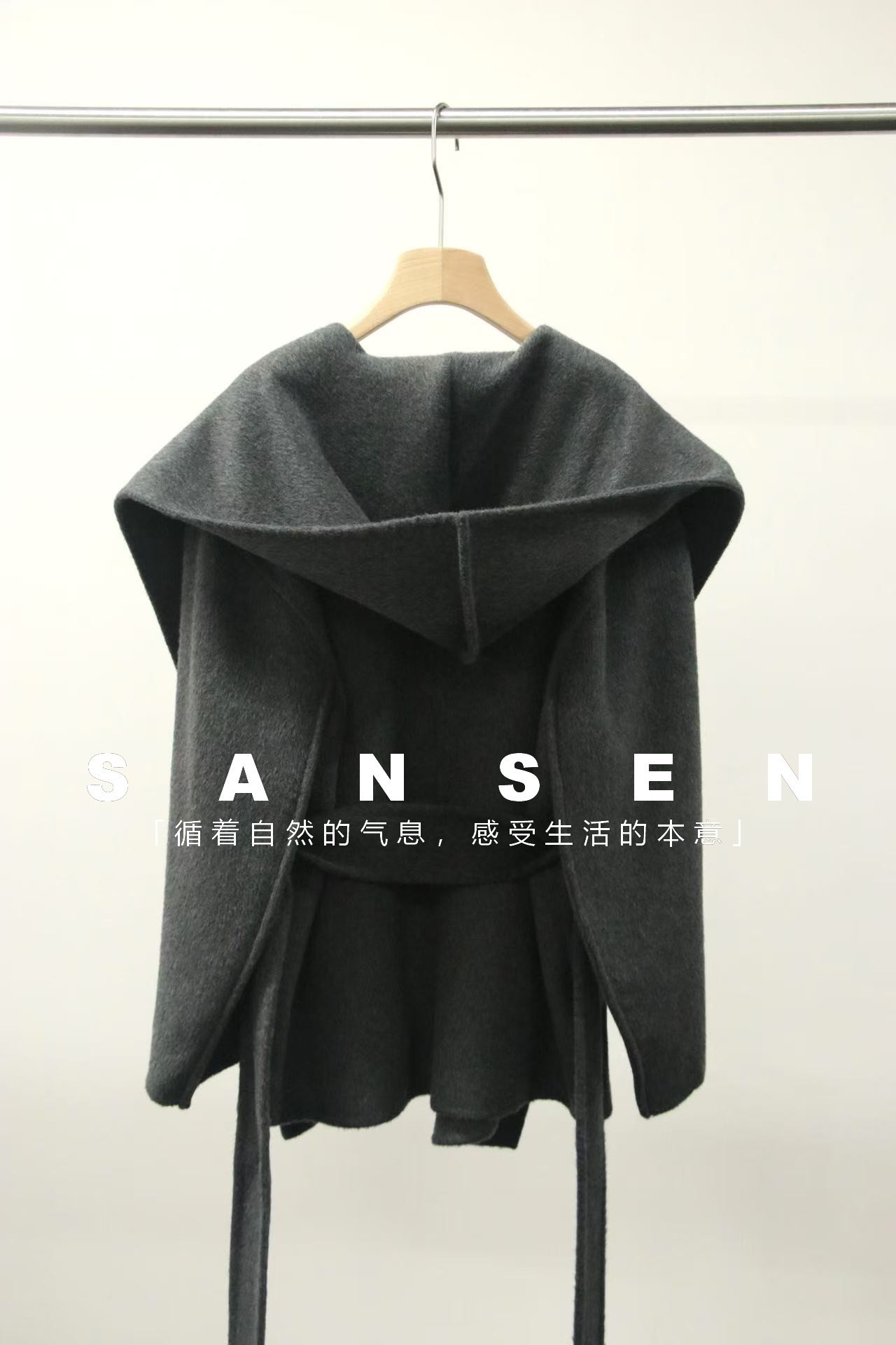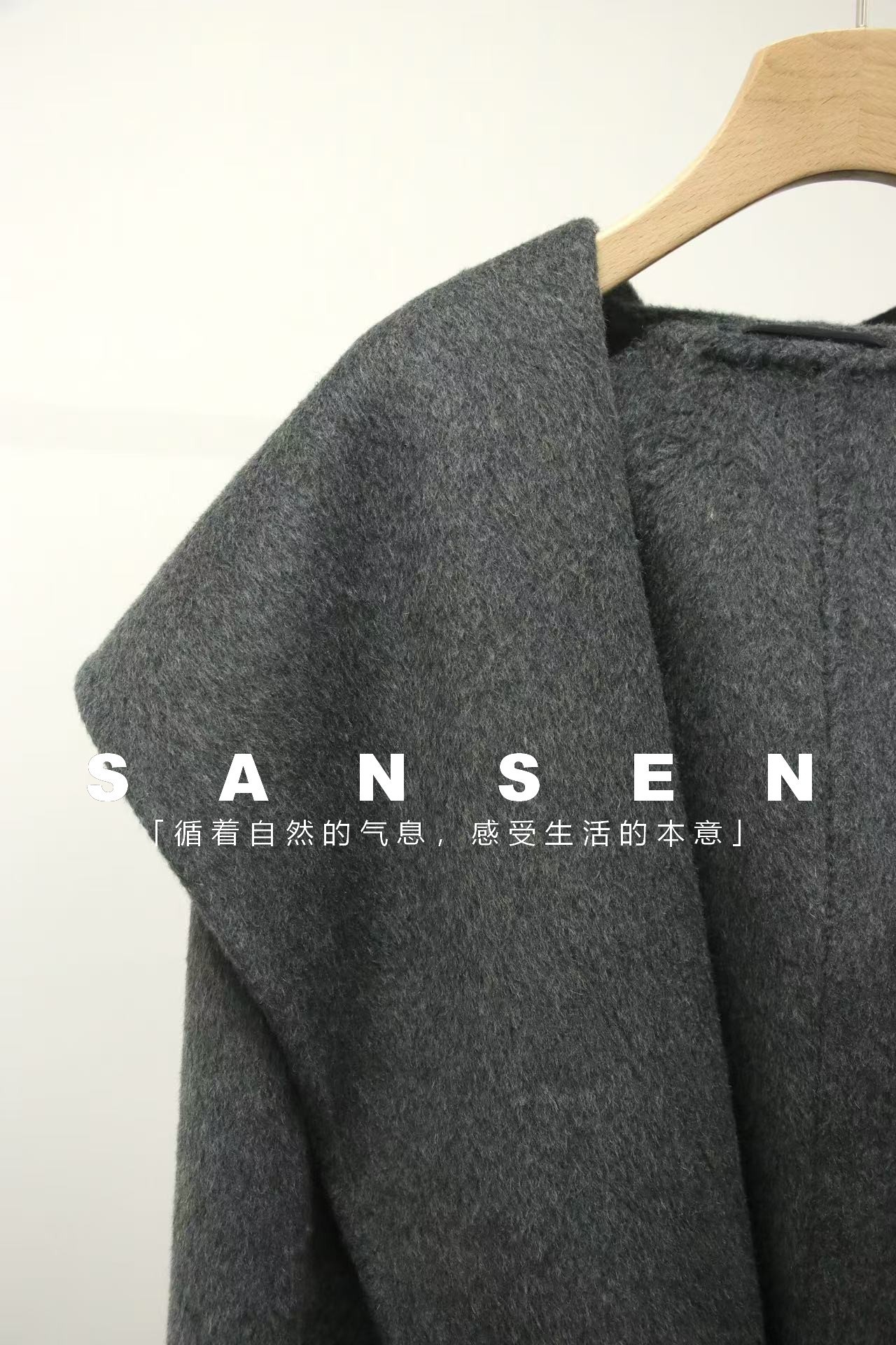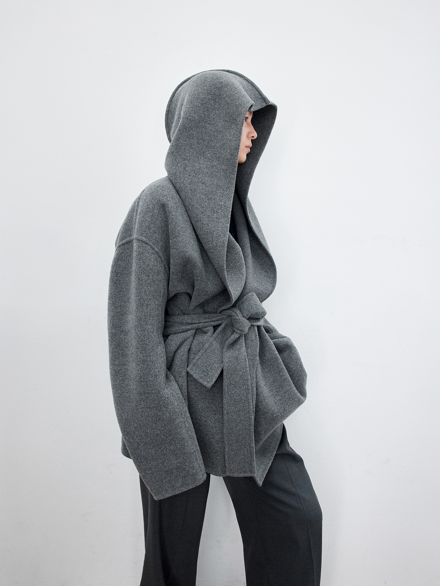 JOC 카운터 탑 럭셔리 실크 캐시미어 울 양면 양모 짧은 유행 구조 라인 느낌 후드 코트