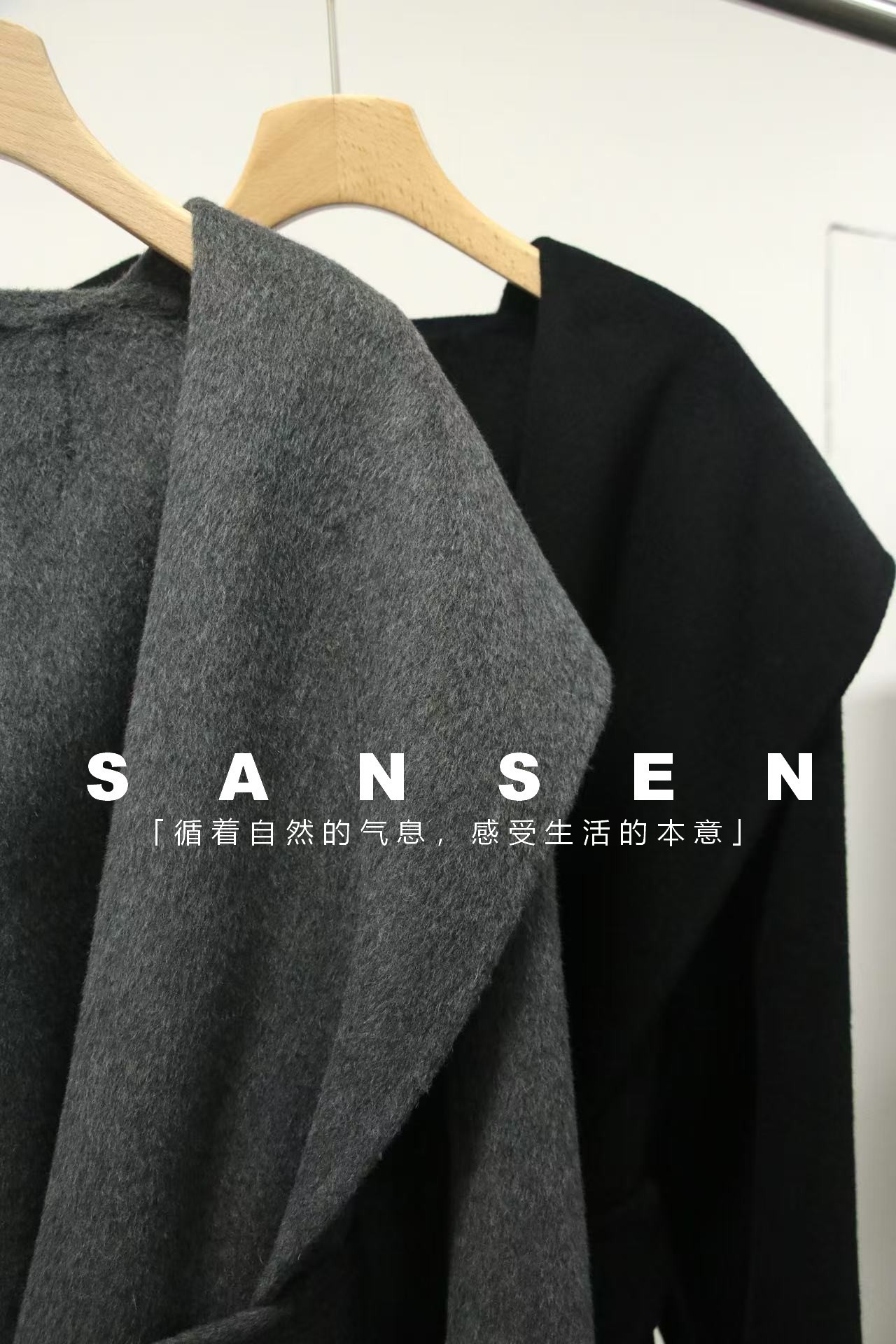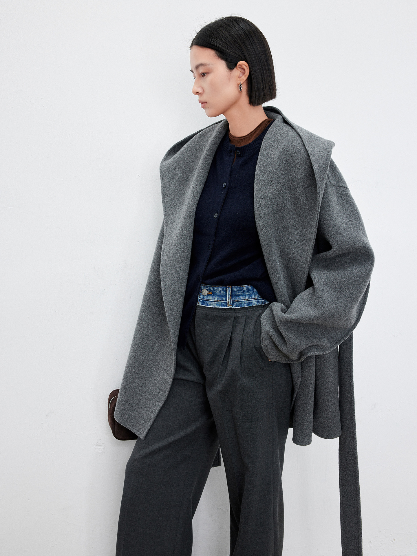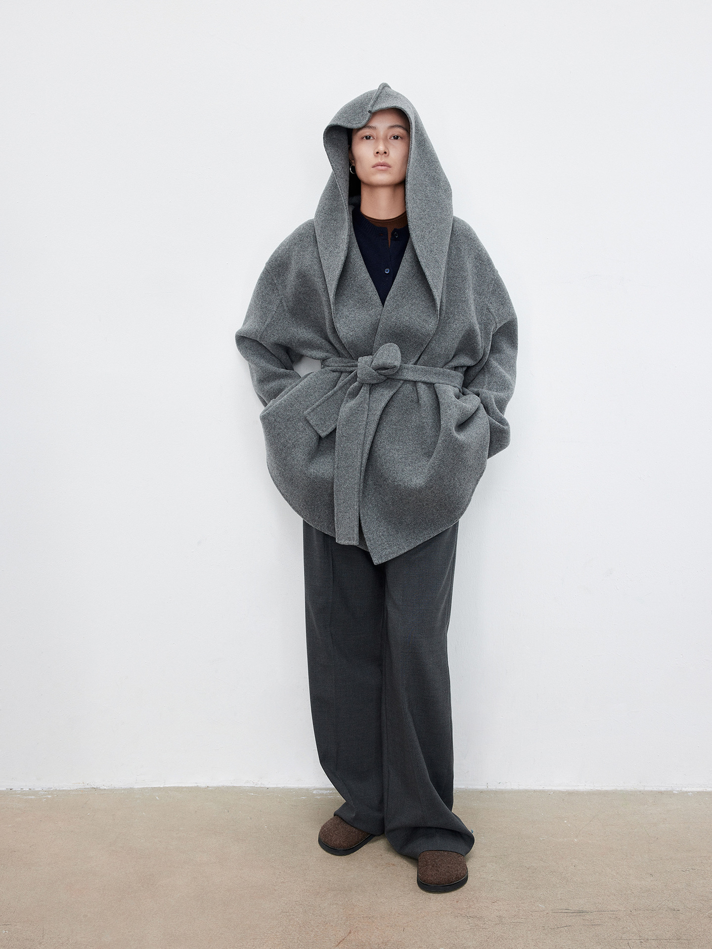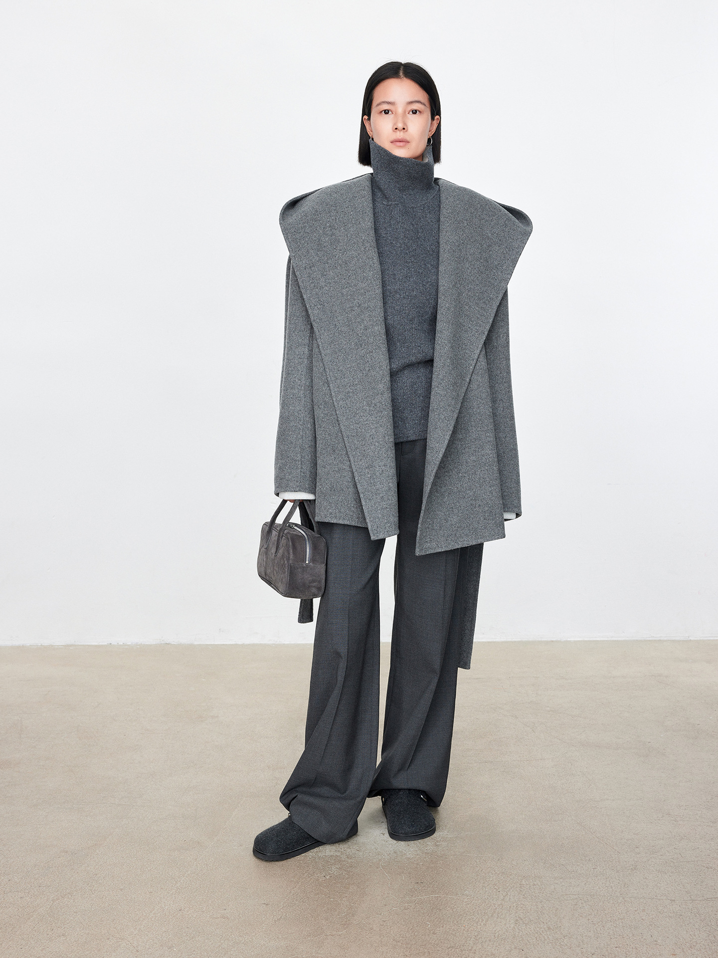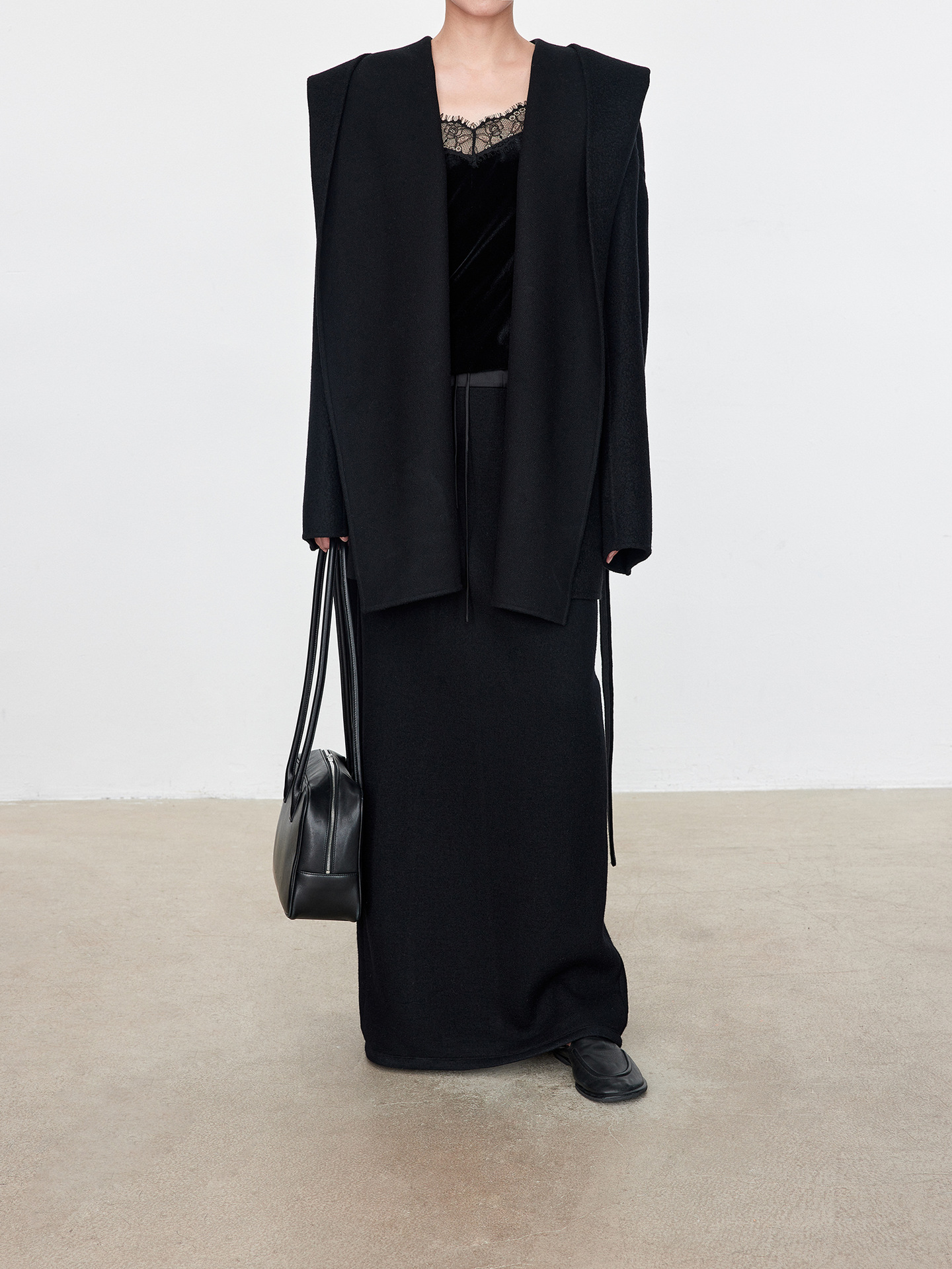 JOC 카운터 탑 럭셔리 실크 캐시미어 울 양면 양모 짧은 유행 구조 라인 느낌 후드 코트