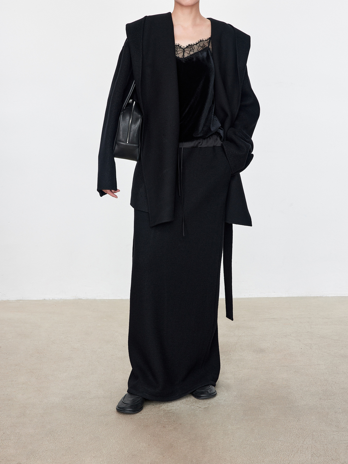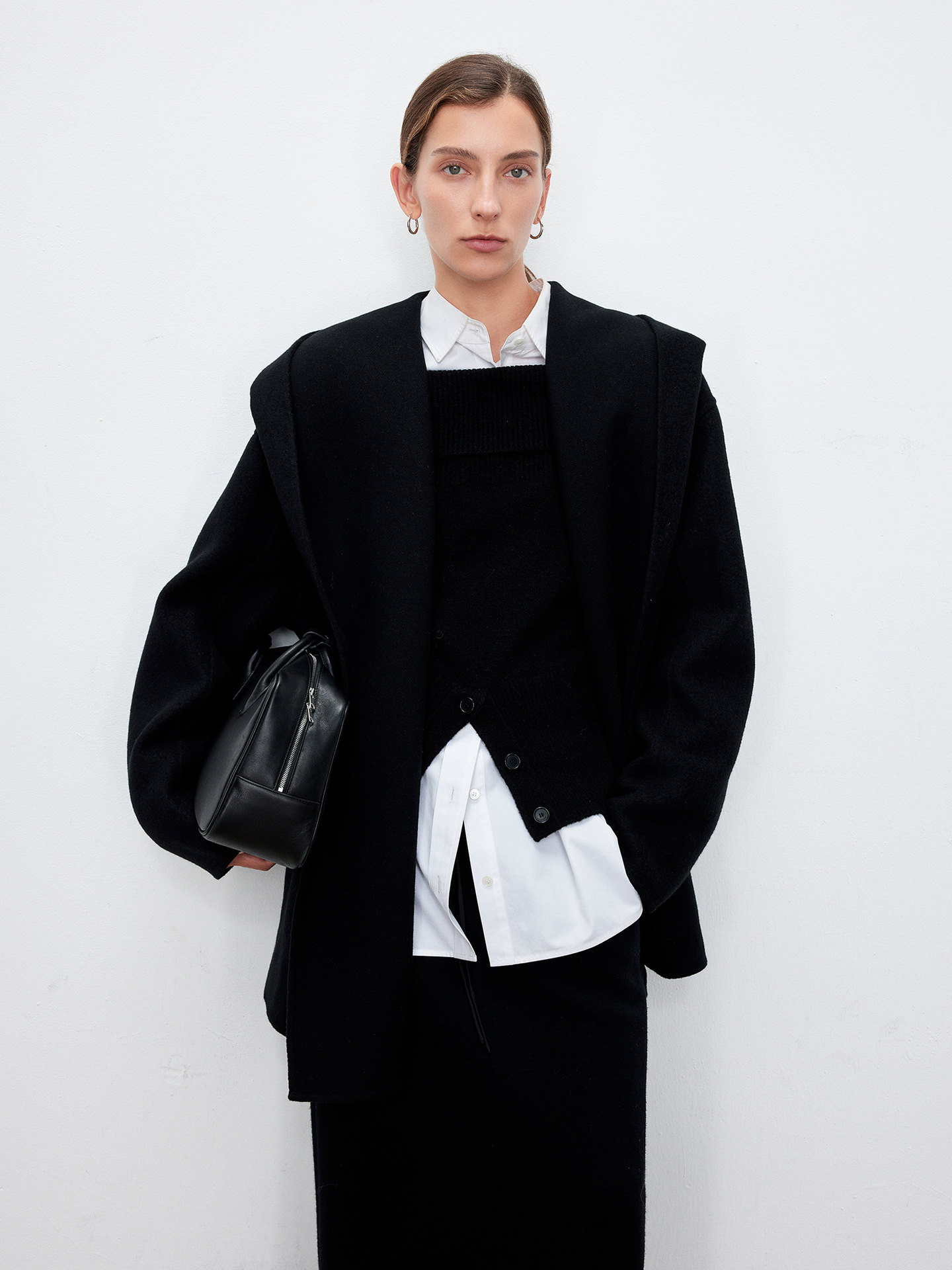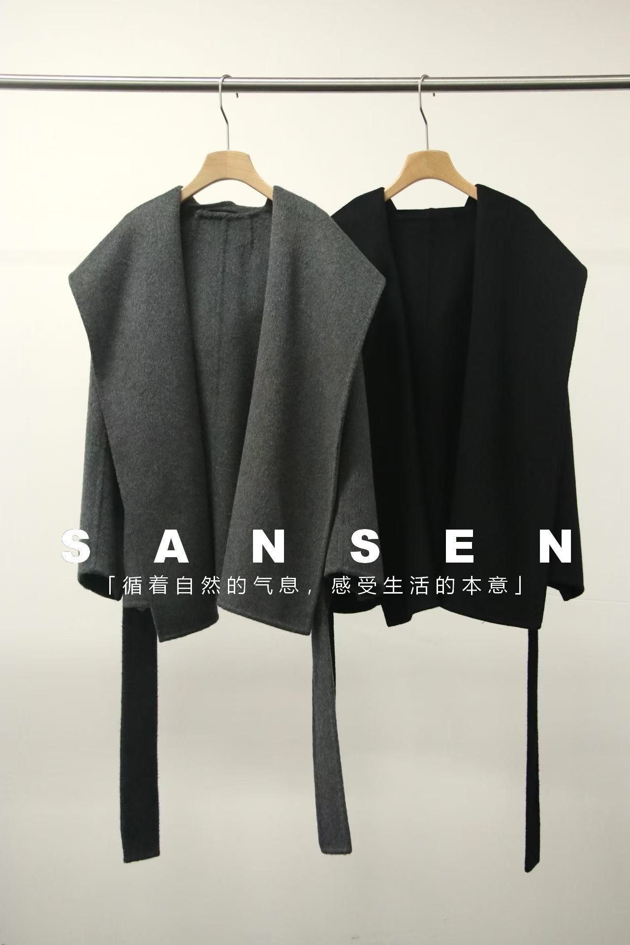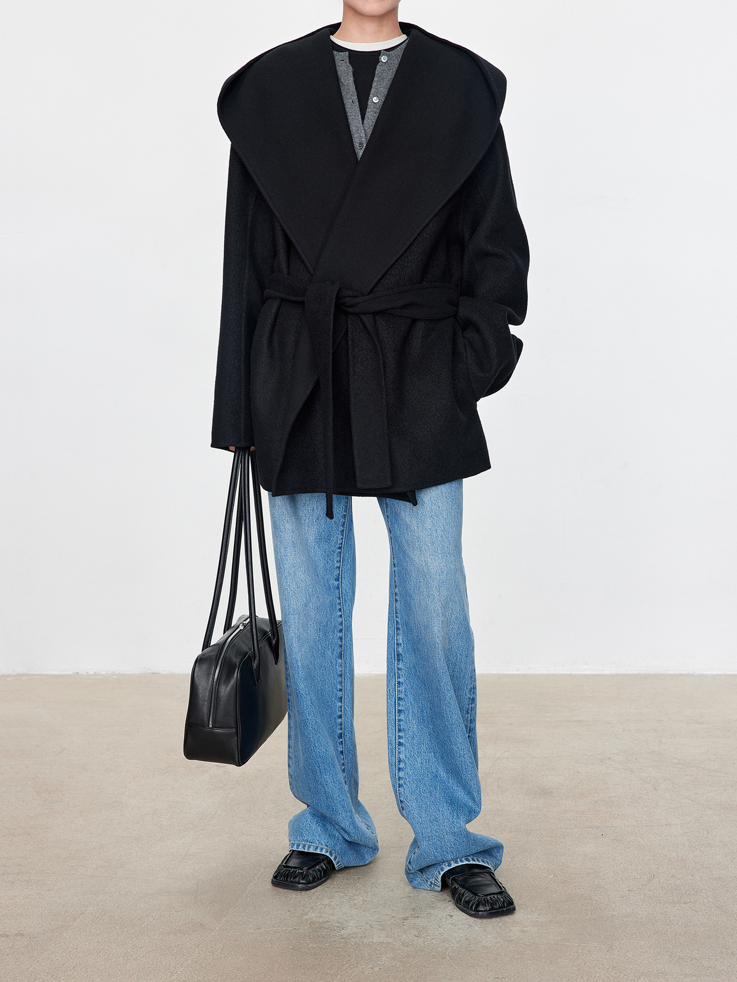 JOC 카운터 탑 럭셔리 실크 캐시미어 울 양면 양모 짧은 유행 구조 라인 느낌 후드 코트