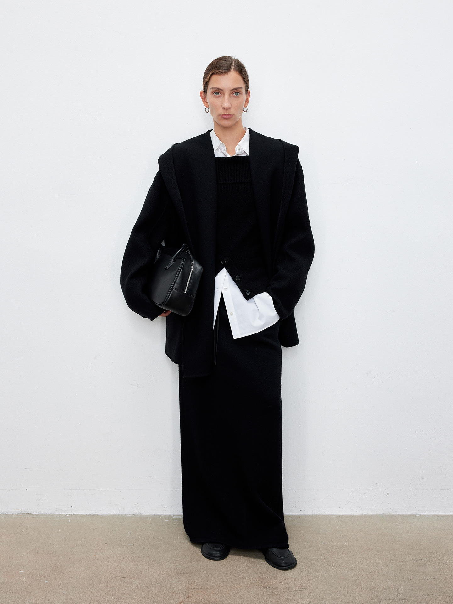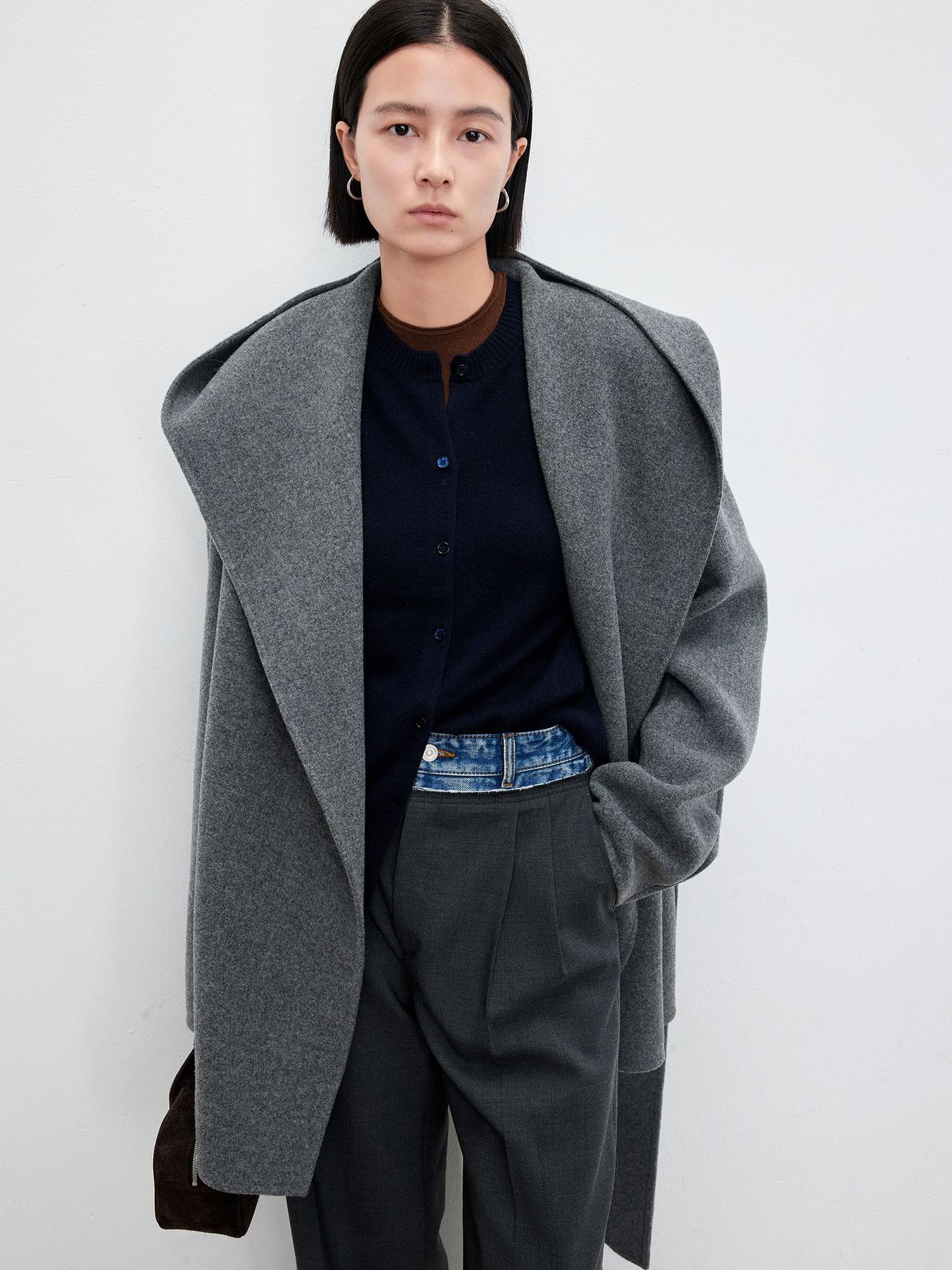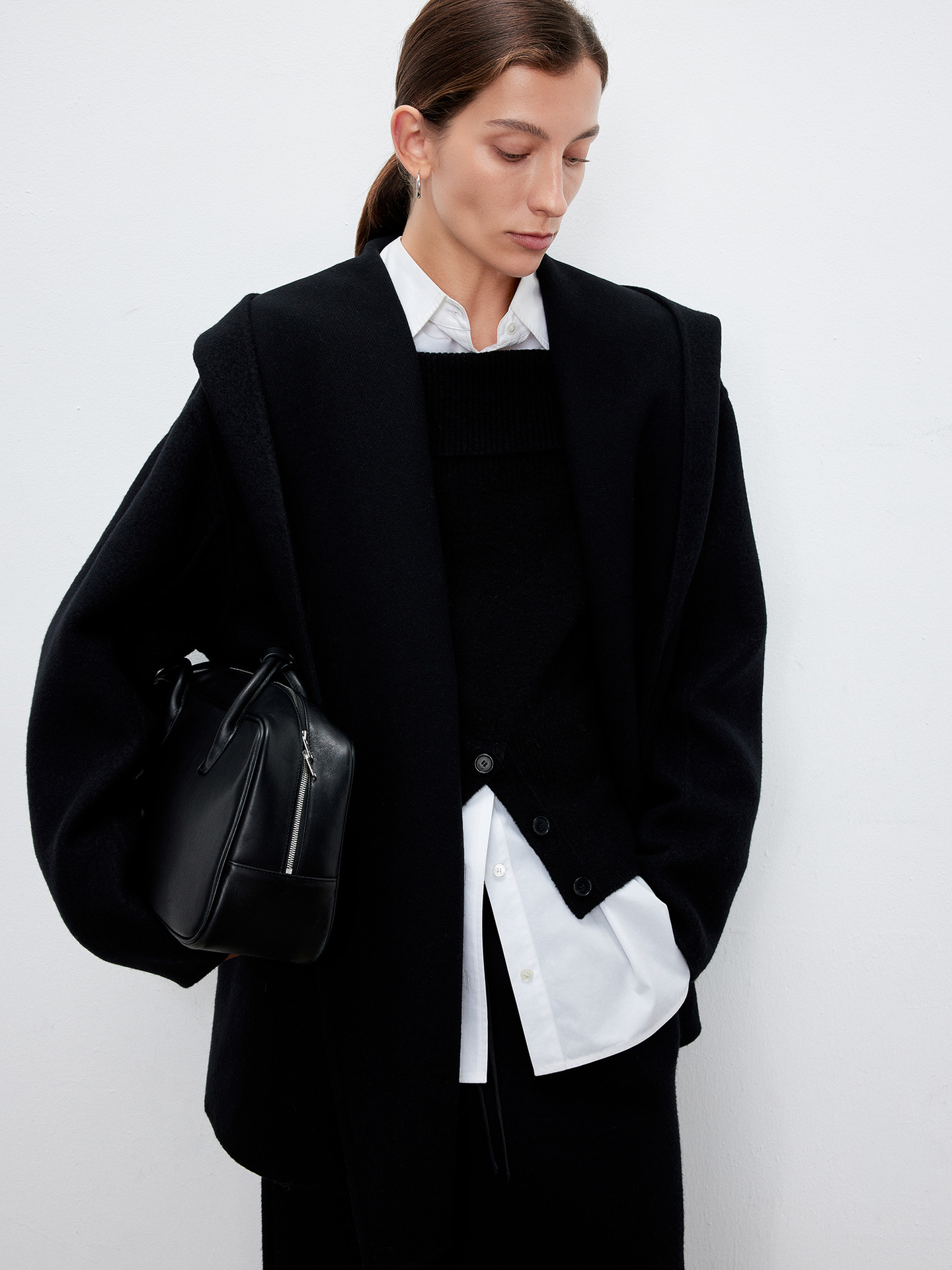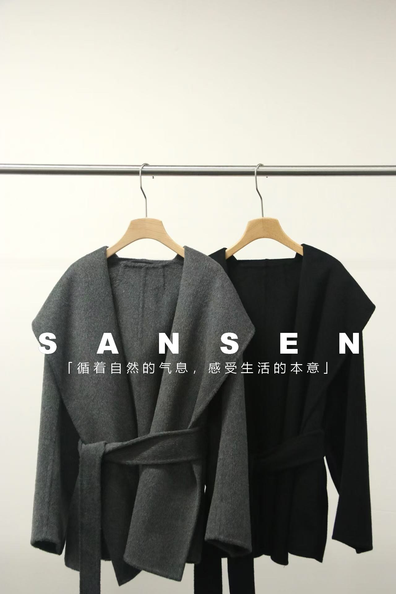 JOC 카운터 탑 럭셔리 실크 캐시미어 울 양면 양모 짧은 유행 구조 라인 느낌 후드 코트