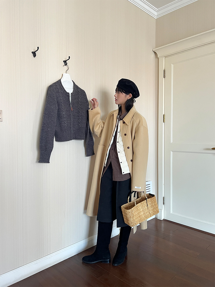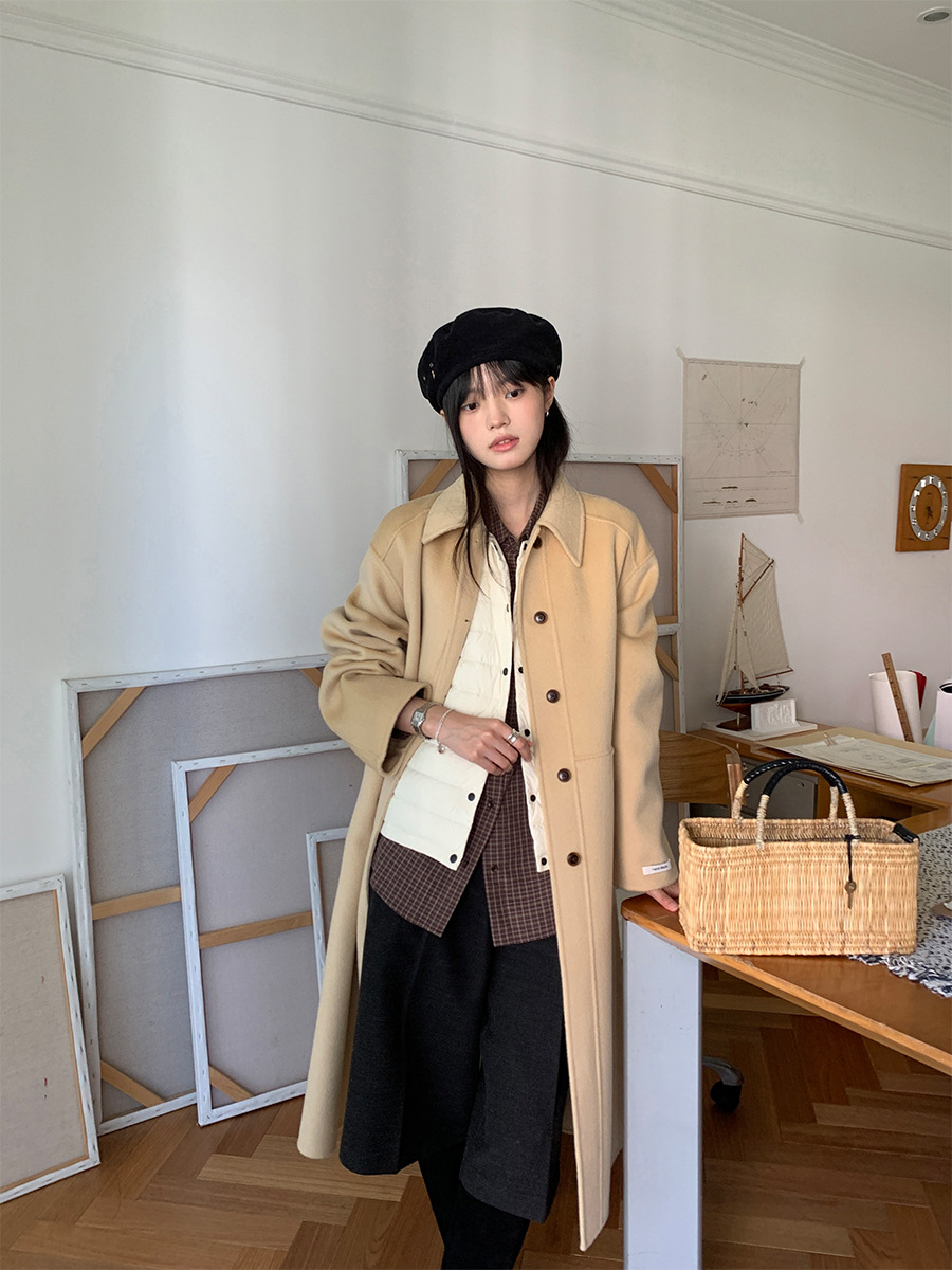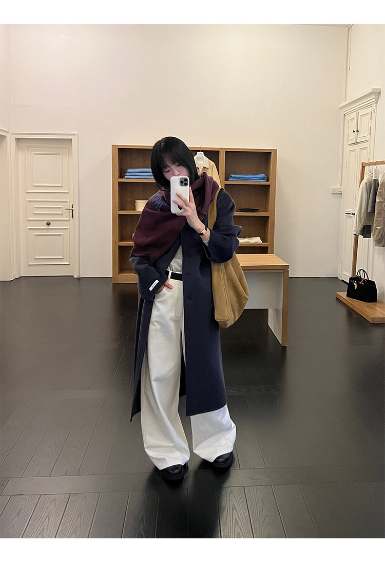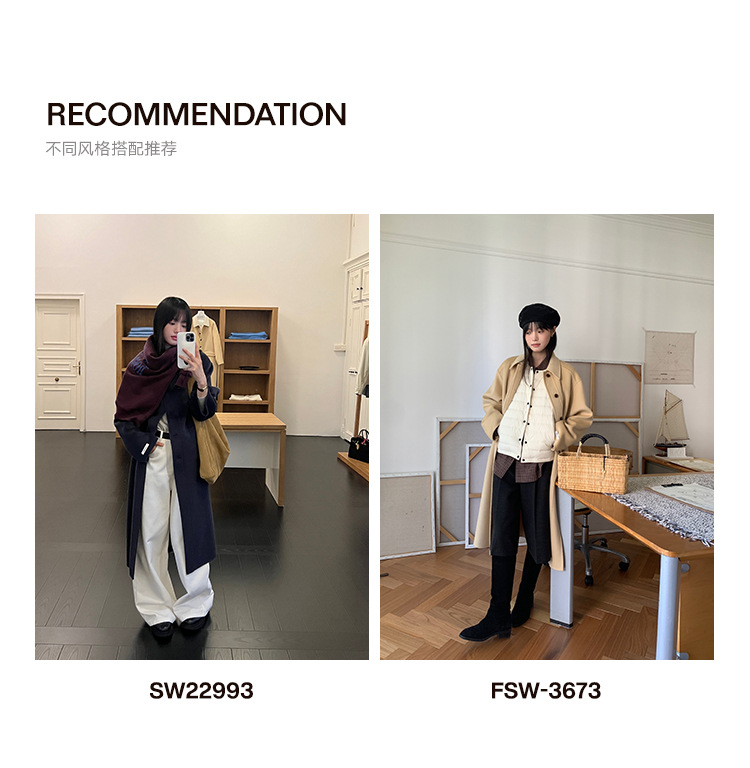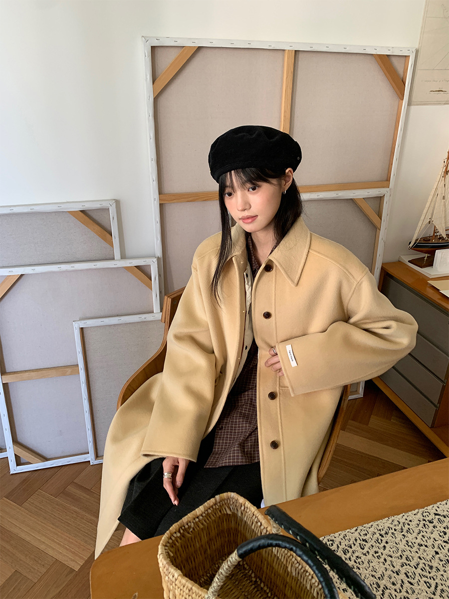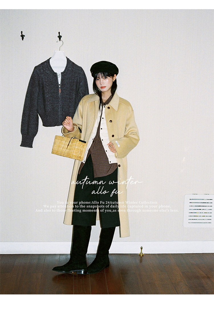 푸울 코트 여자 2024 년 겨울 새 한국식 하이 엔드 캐주얼 랩 단순 양면 모직 코트 878