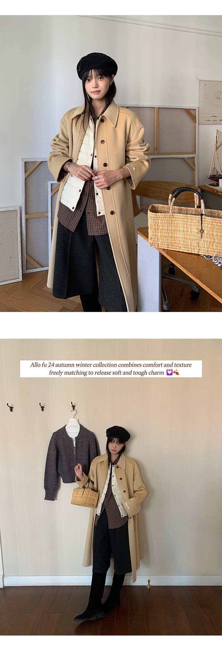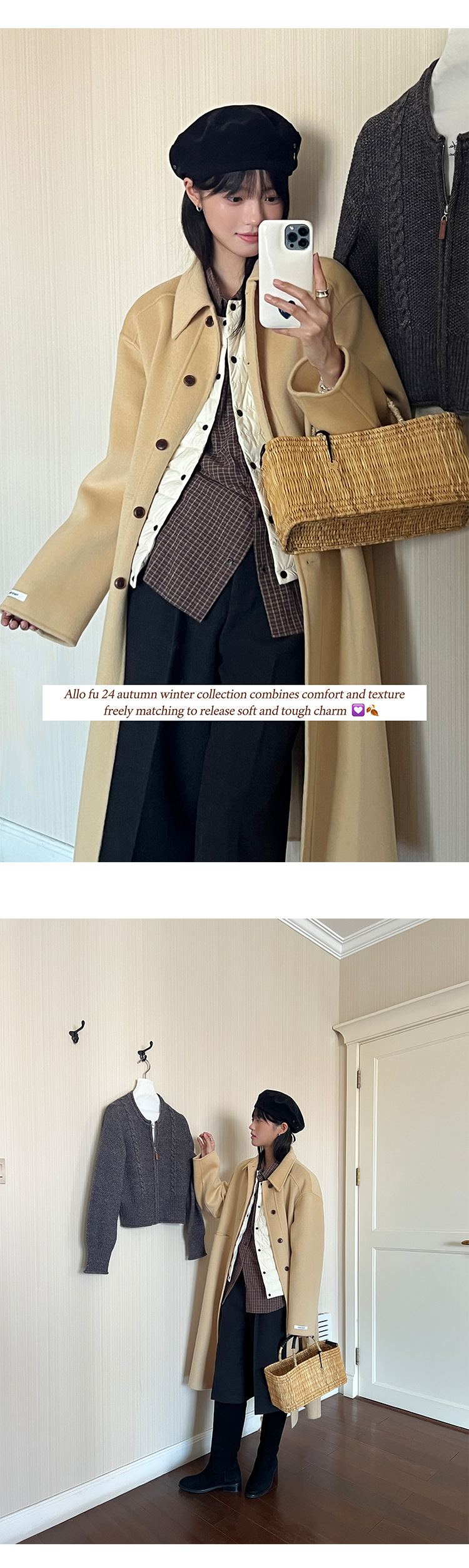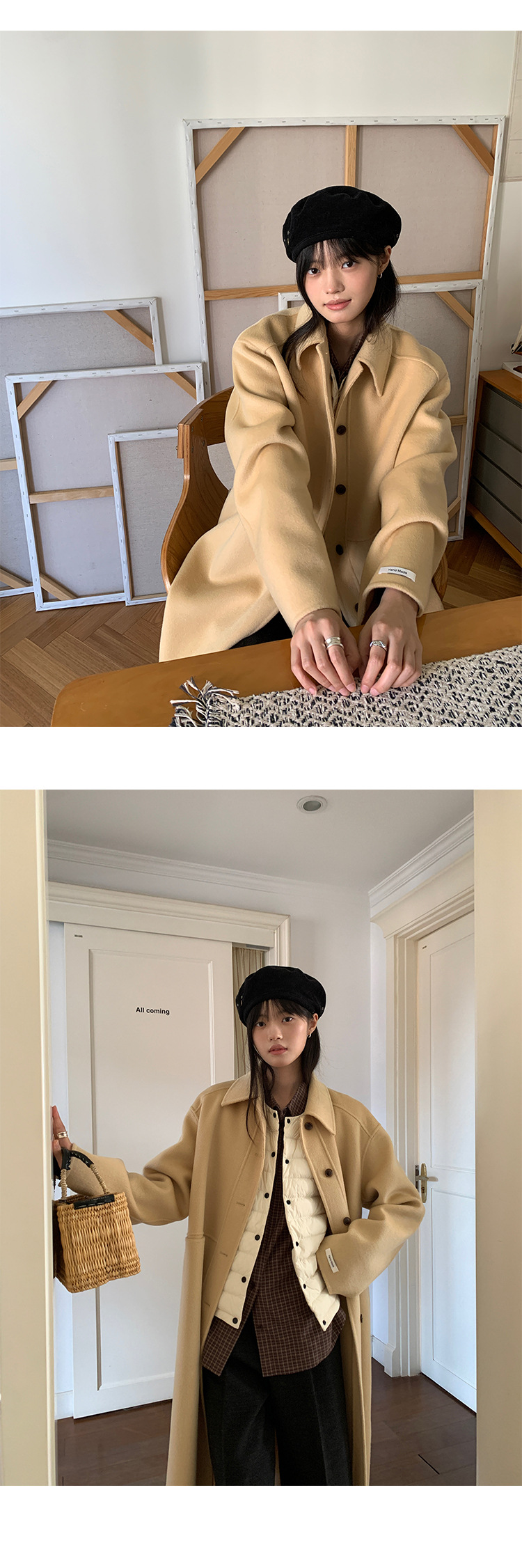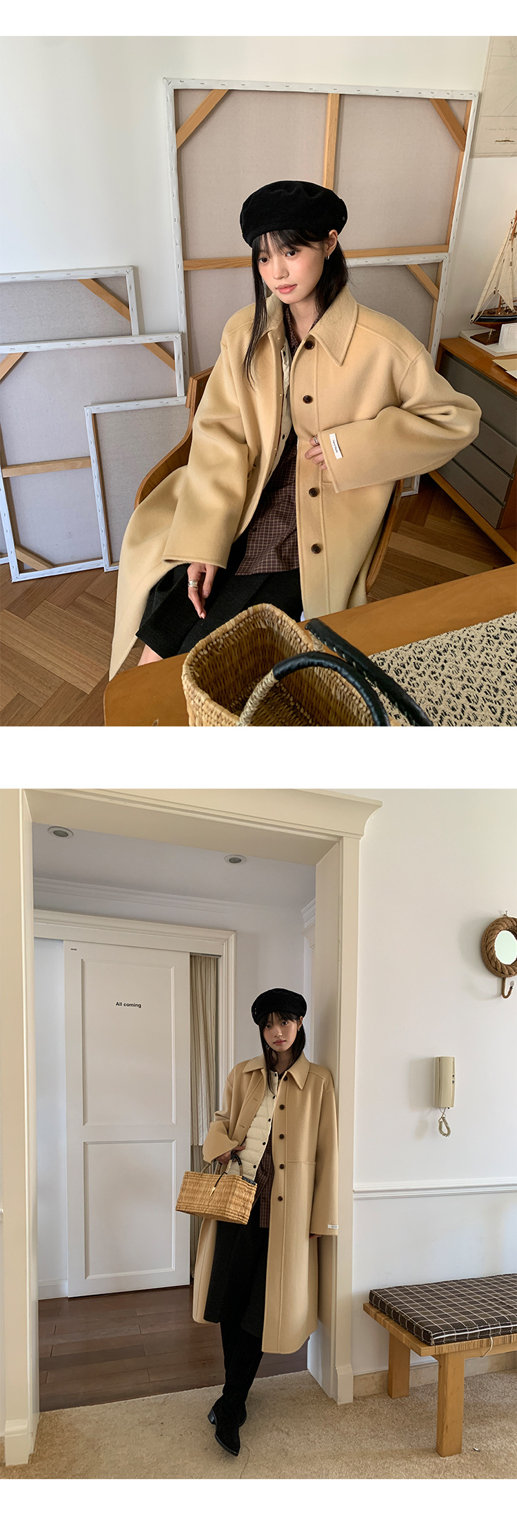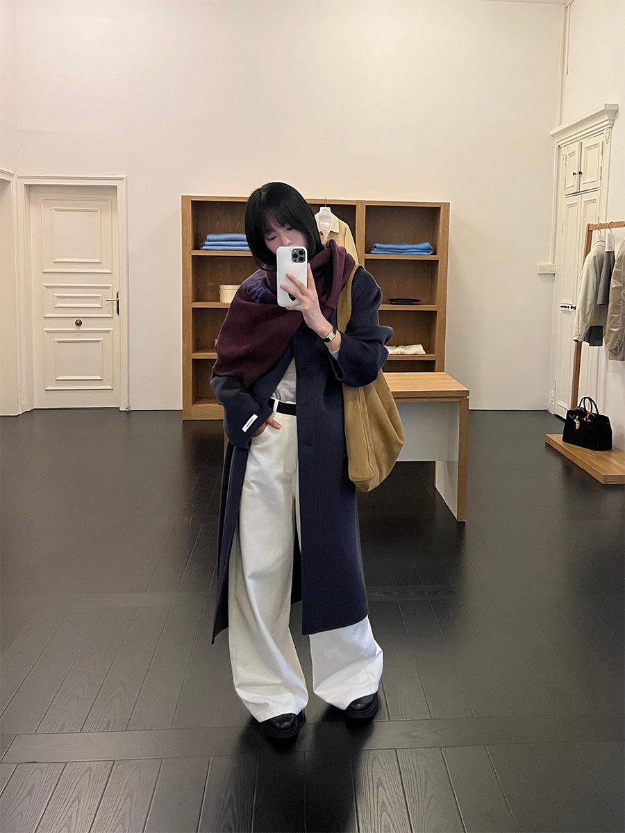 푸울 코트 여자 2024 년 겨울 새 한국식 하이 엔드 캐주얼 랩 단순 양면 모직 코트 878