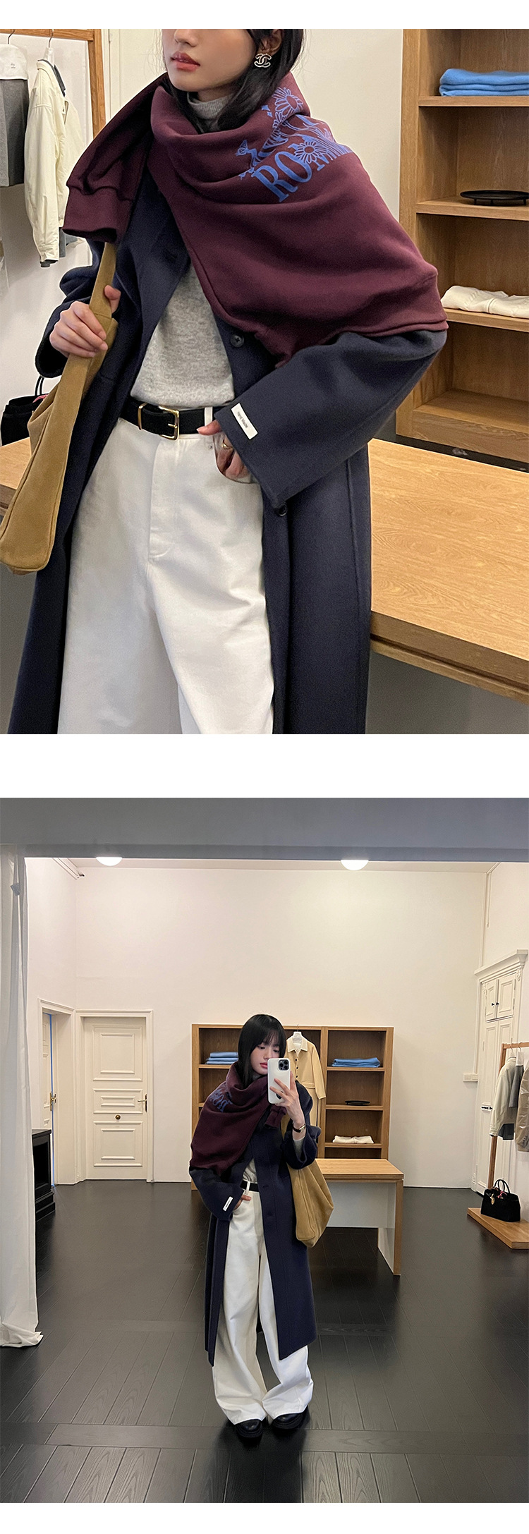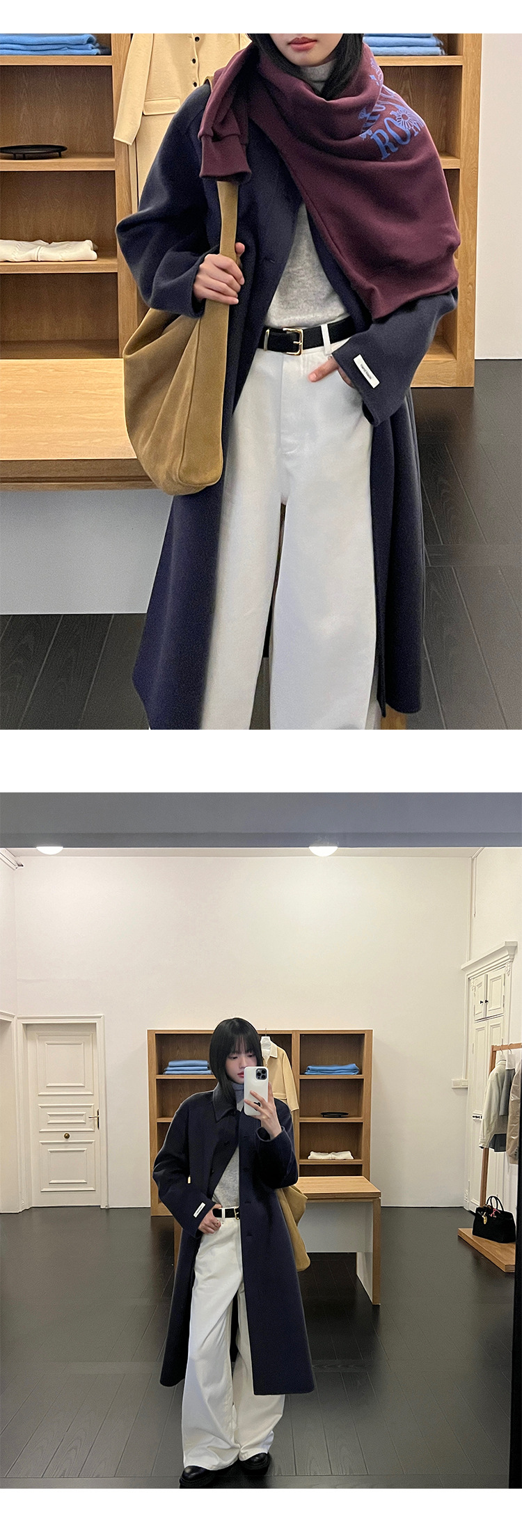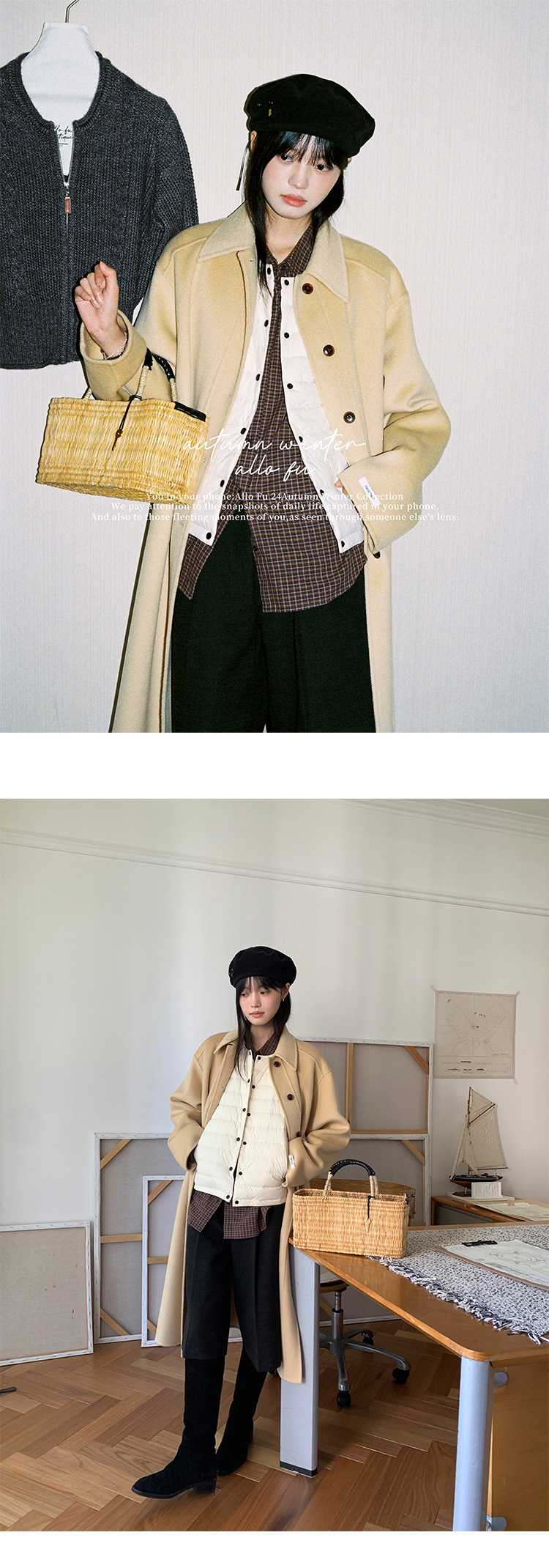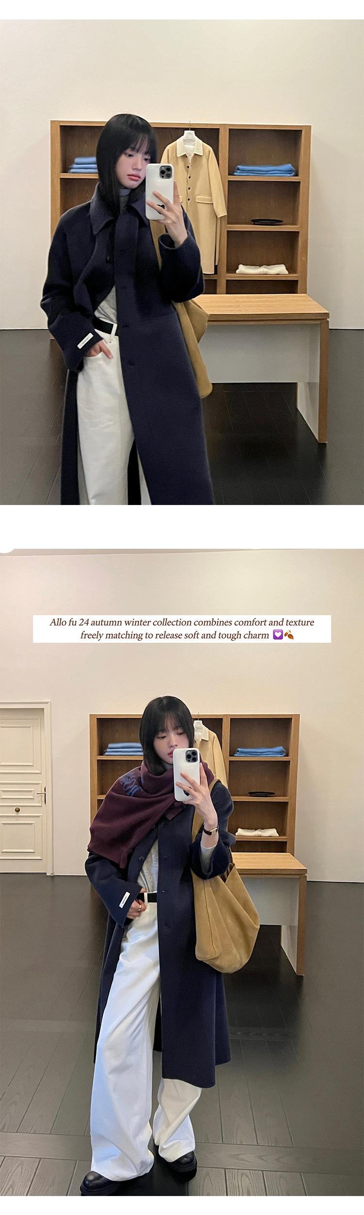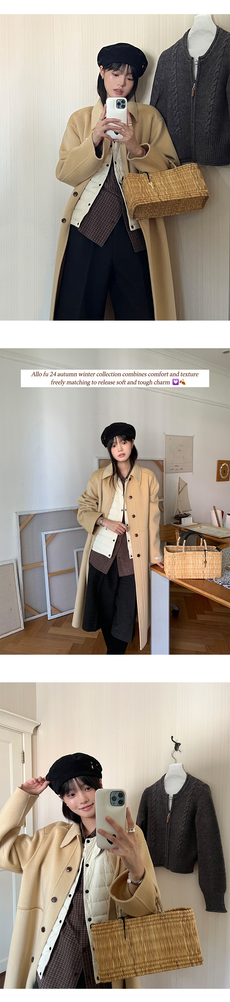 푸울 코트 여자 2024 년 겨울 새 한국식 하이 엔드 캐주얼 랩 단순 양면 모직 코트 878
