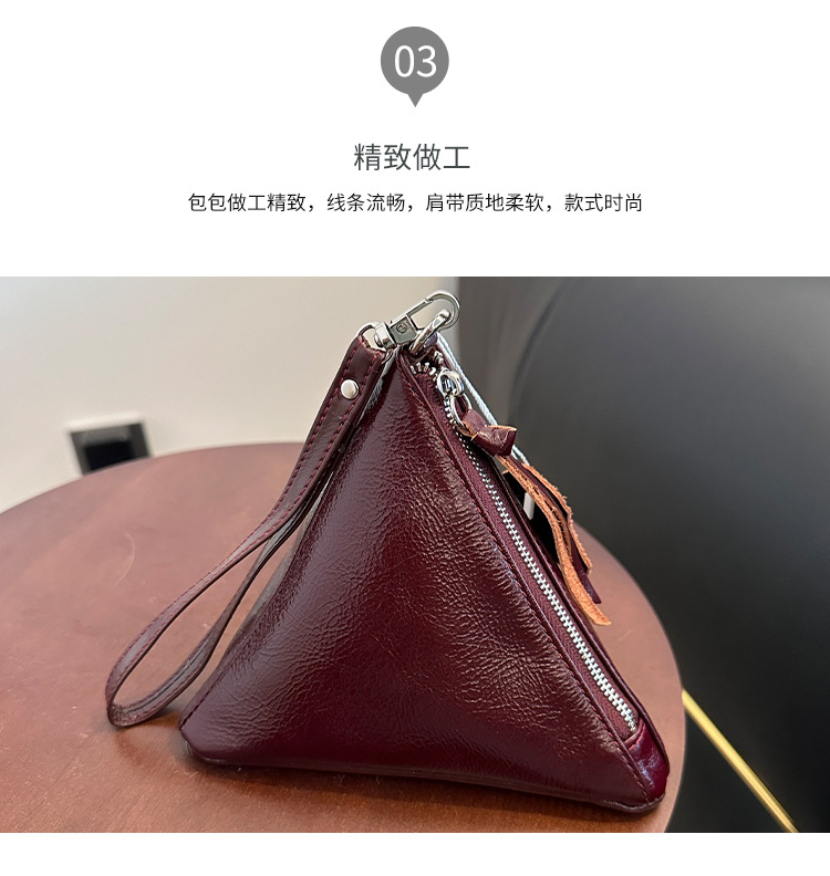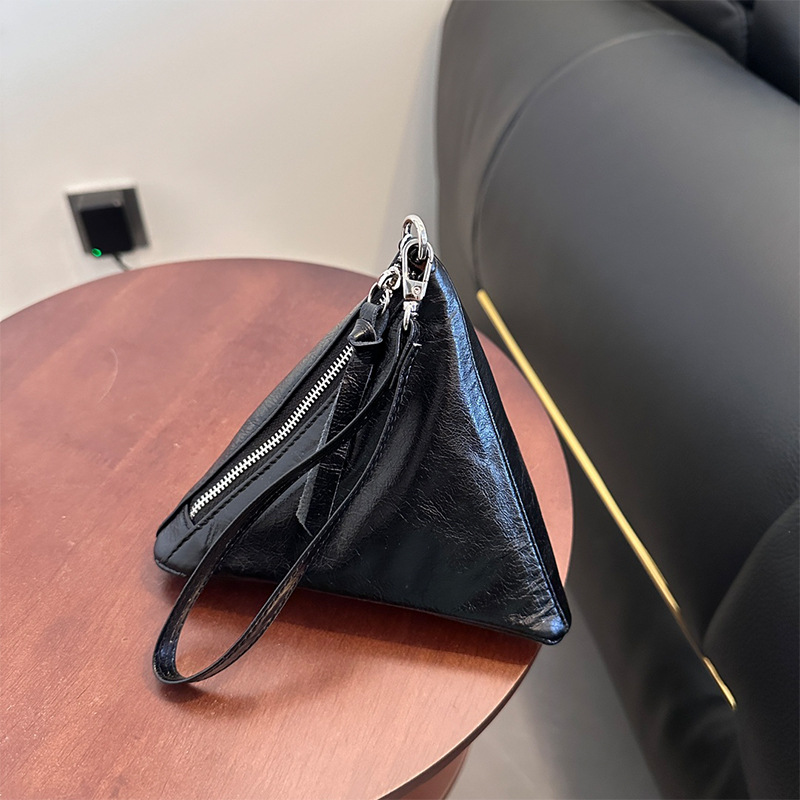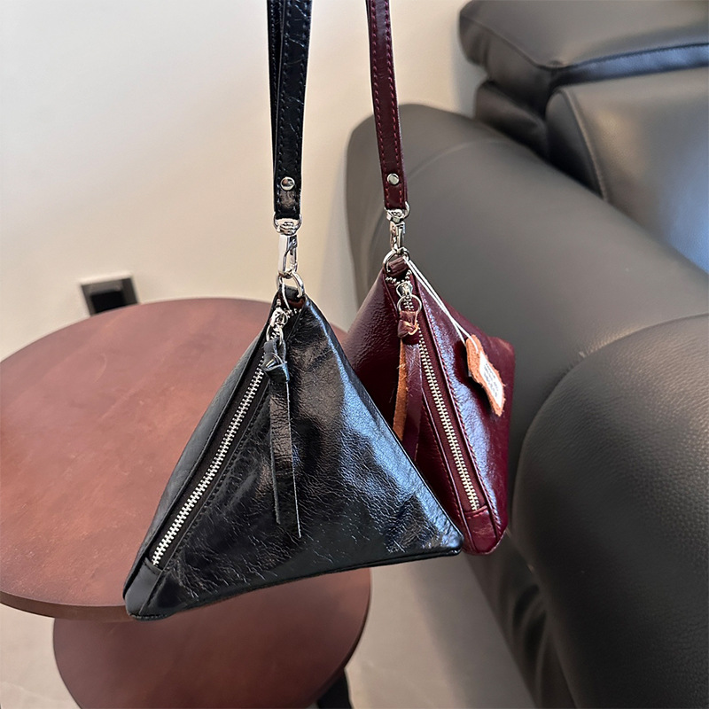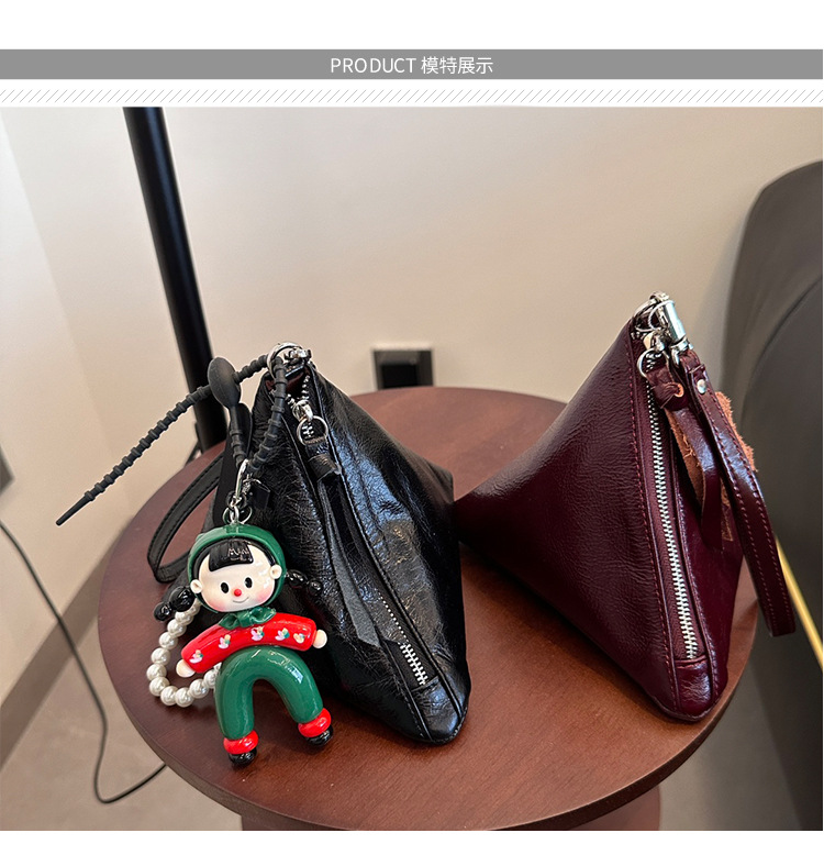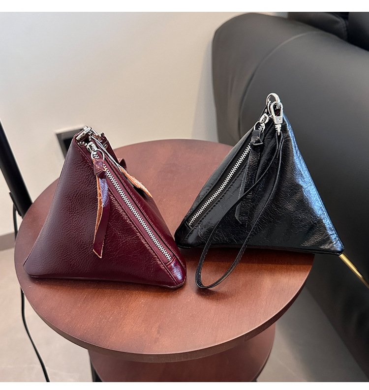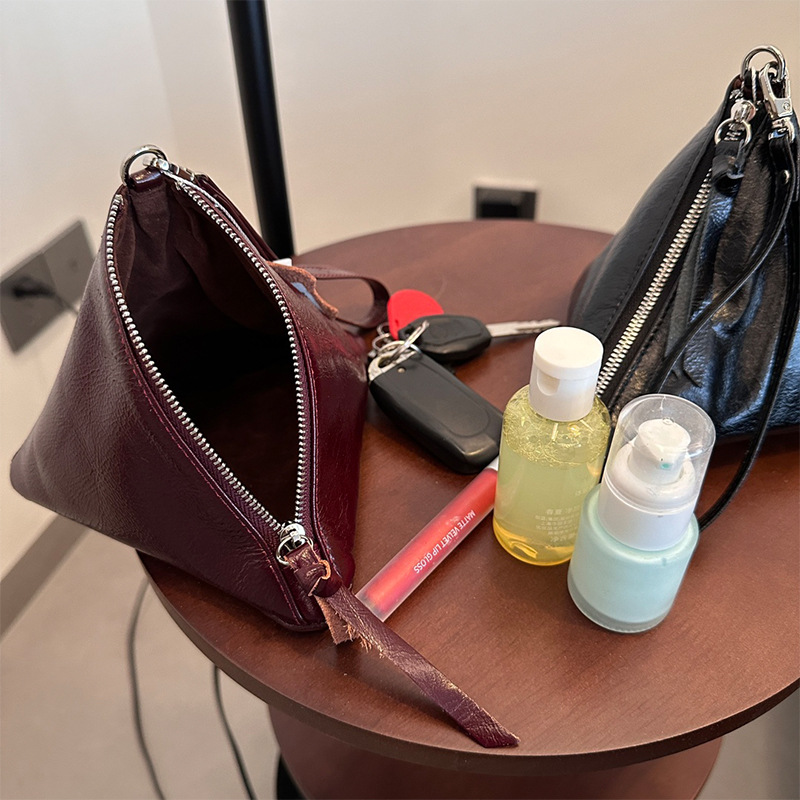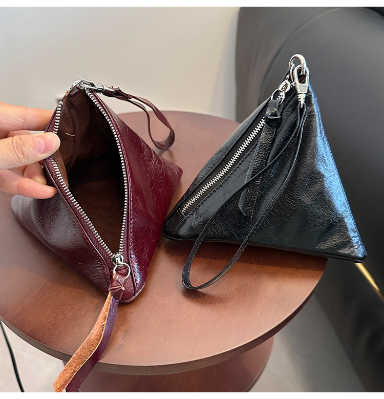 2025 새로운 맞춤형 오일 왁스 소가죽 삼각형 가방 틈새 패션 동전 지갑 트렌디 한 수납 가방 핸드백