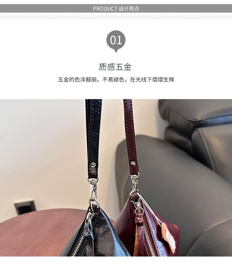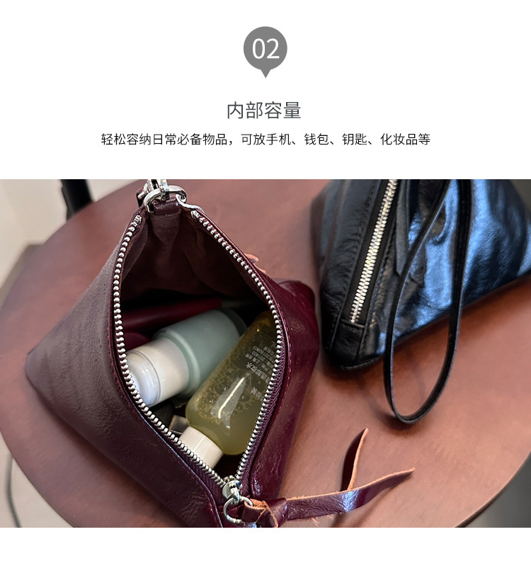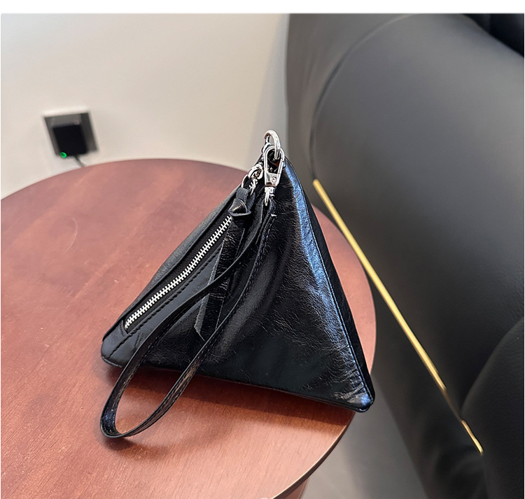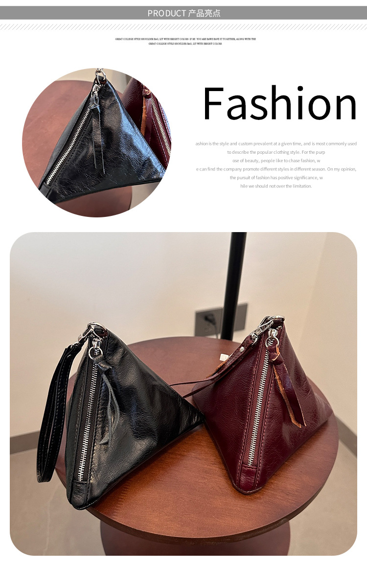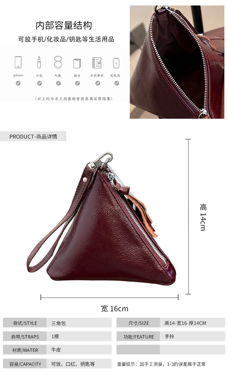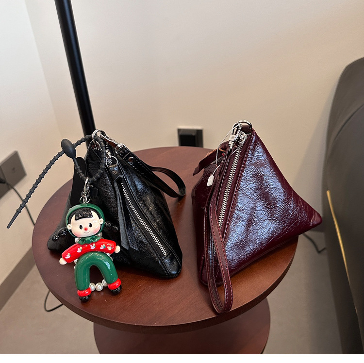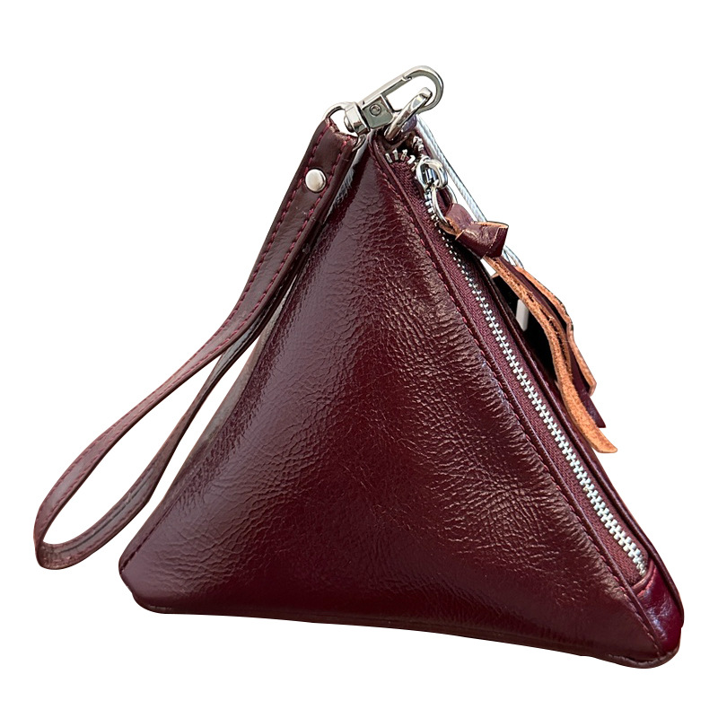 2025 새로운 맞춤형 오일 왁스 소가죽 삼각형 가방 틈새 패션 동전 지갑 트렌디 한 수납 가방 핸드백