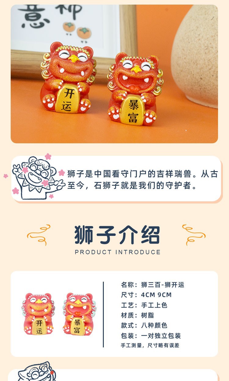 [소형] 사자 300마리 행운의 민난 돌 사자 4.5cm 서재 가정용 가구 오픈 기념품