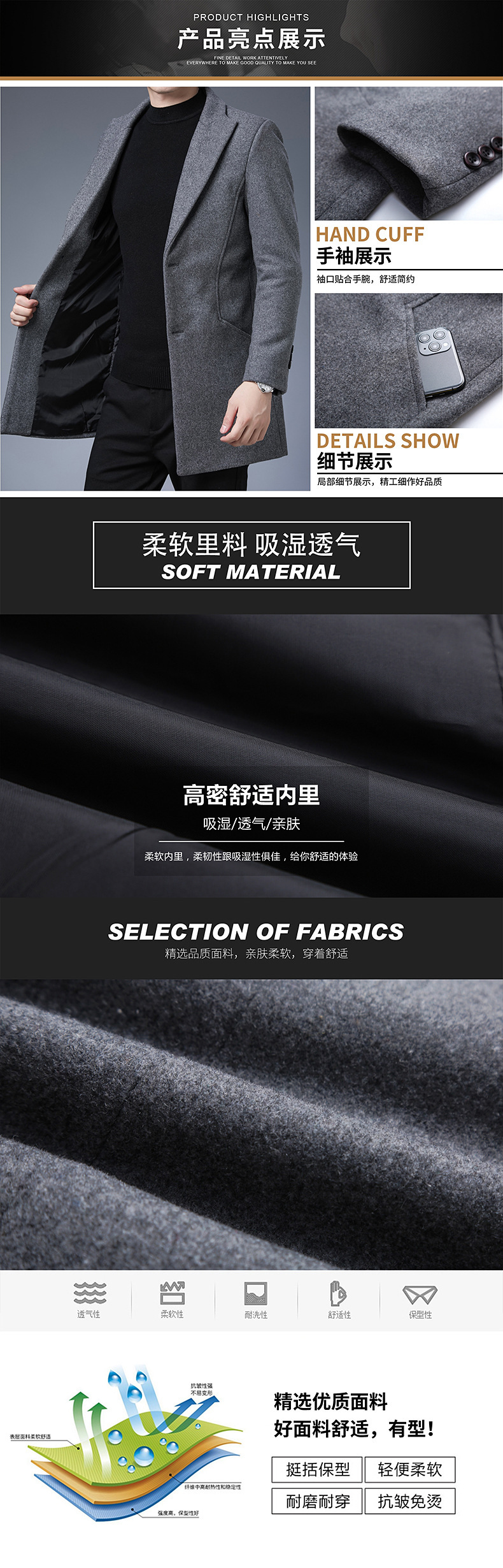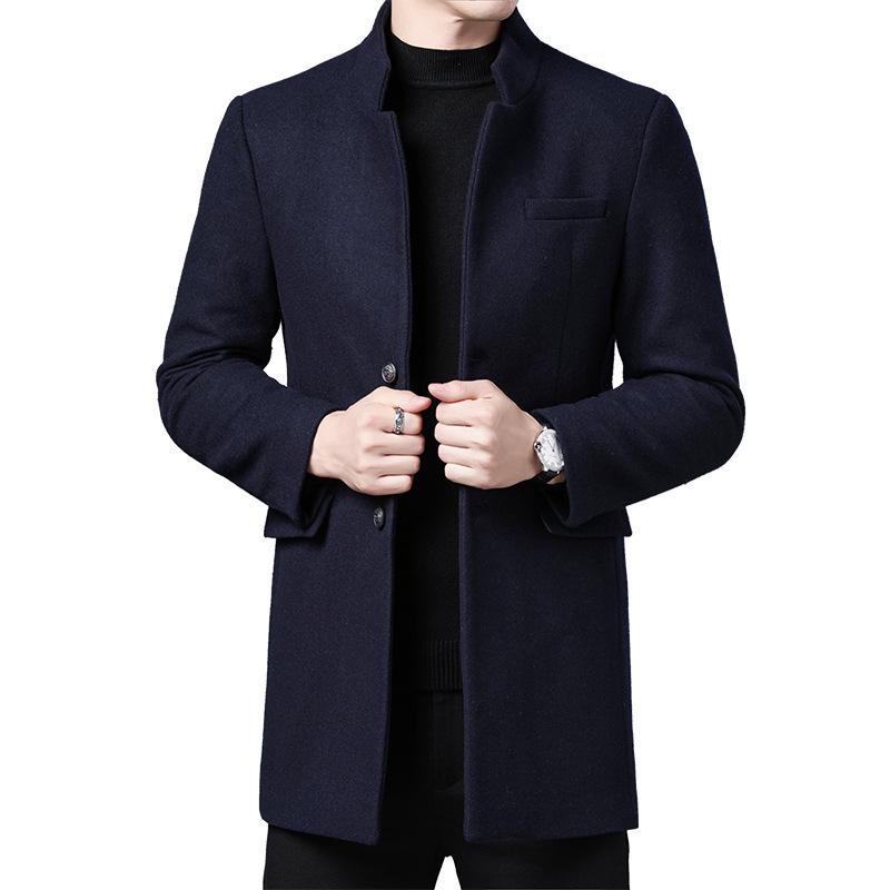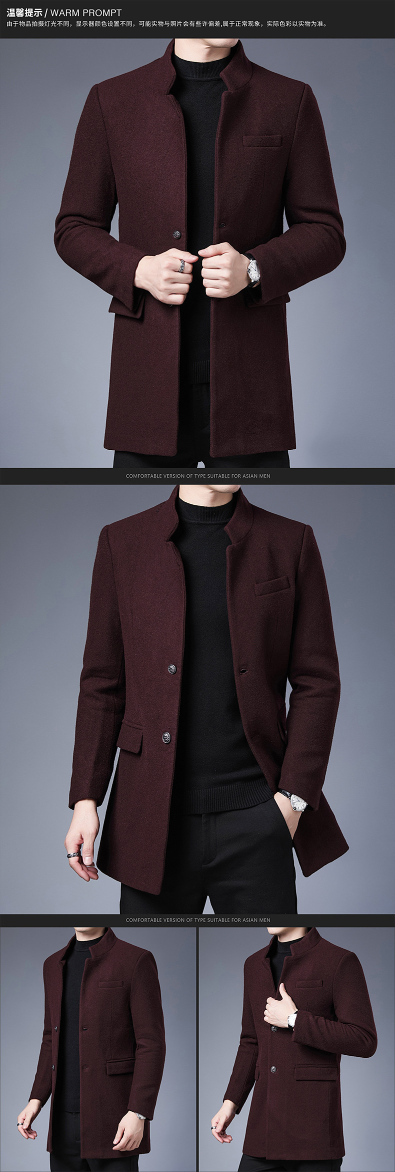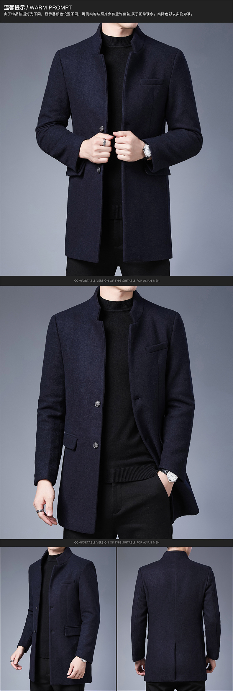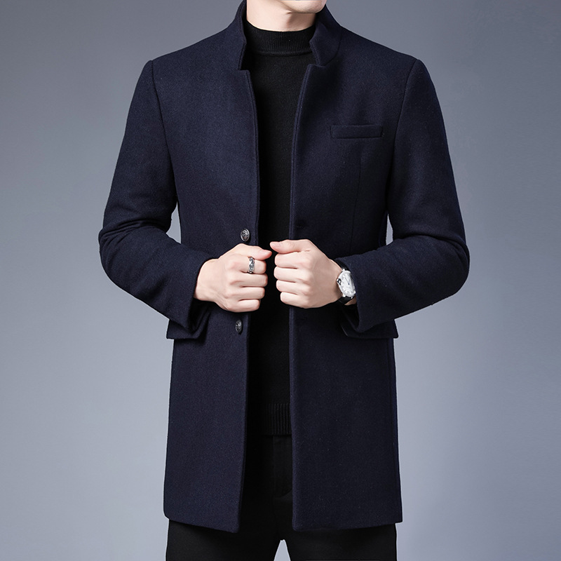 국경 간 가을과 겨울 트렌디 중장 코트 중년 남성 모직 코트 한국식 슬림핏 모직 재킷 코트 남성용