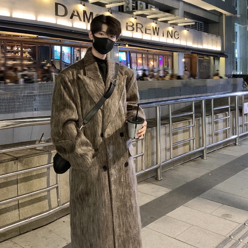 한국 커플 모직 코트 남자 가을 겨울 중간 길이 무릎 하이 엔드 모직 코트 남성용 영국 코트