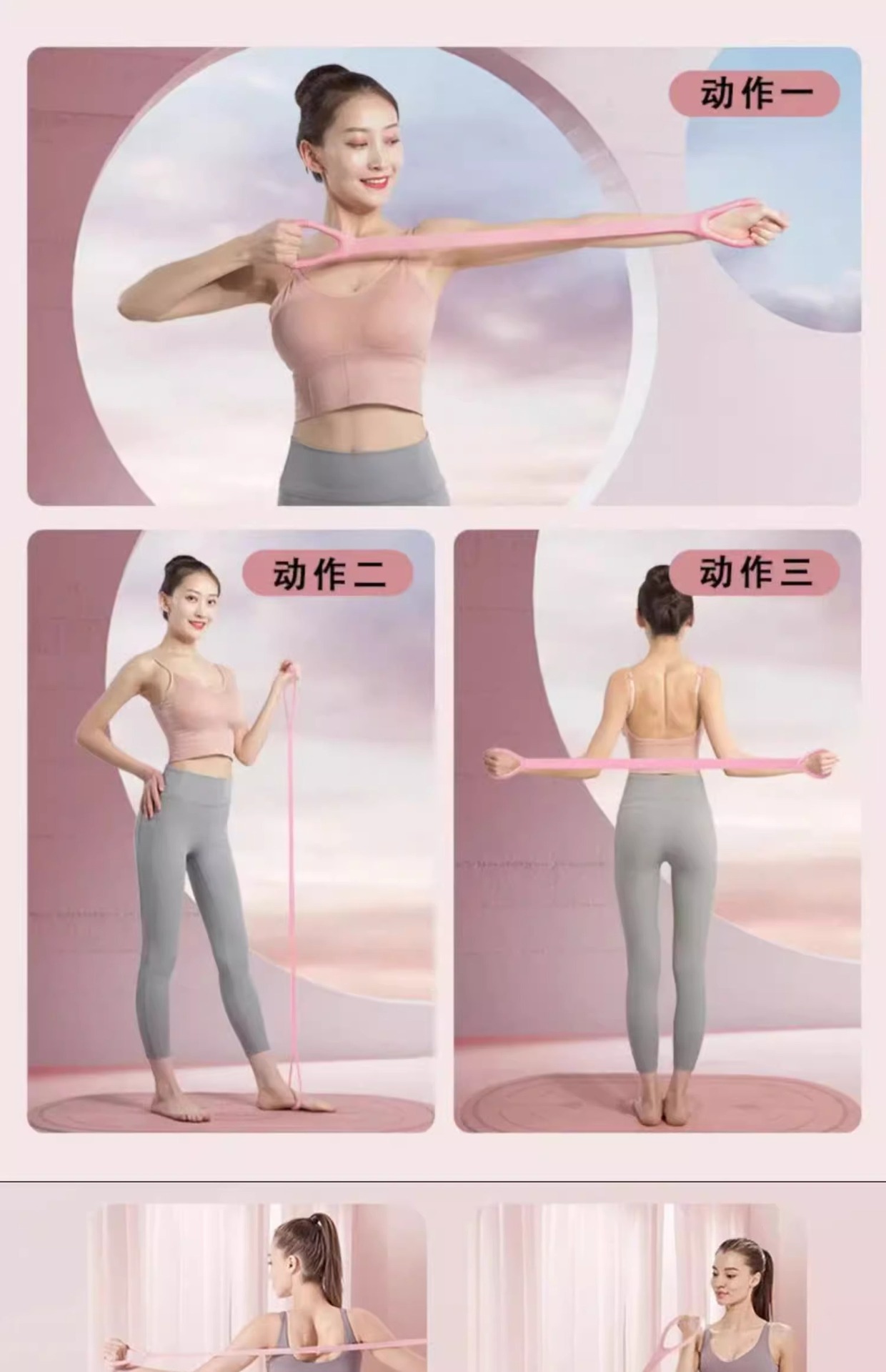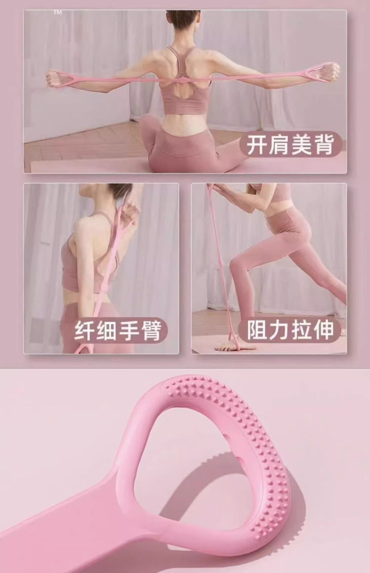 여성용 8자 텐셔너, 오픈백, 어깨 트레이닝, 얇은 등 인공물, 홈 요가 스트레칭 벨트, 등 실리콘 두꺼운 탄성 로프