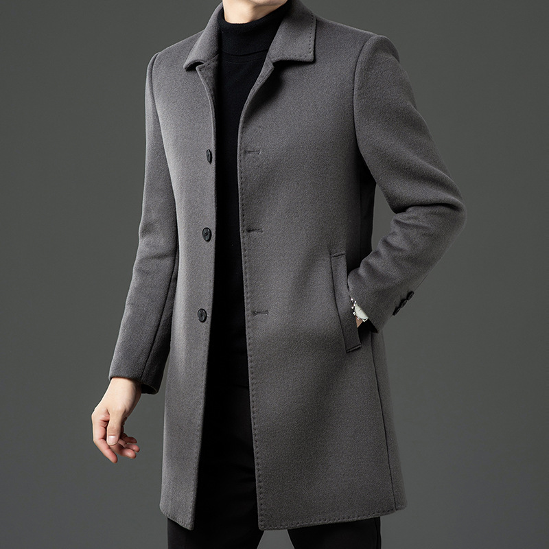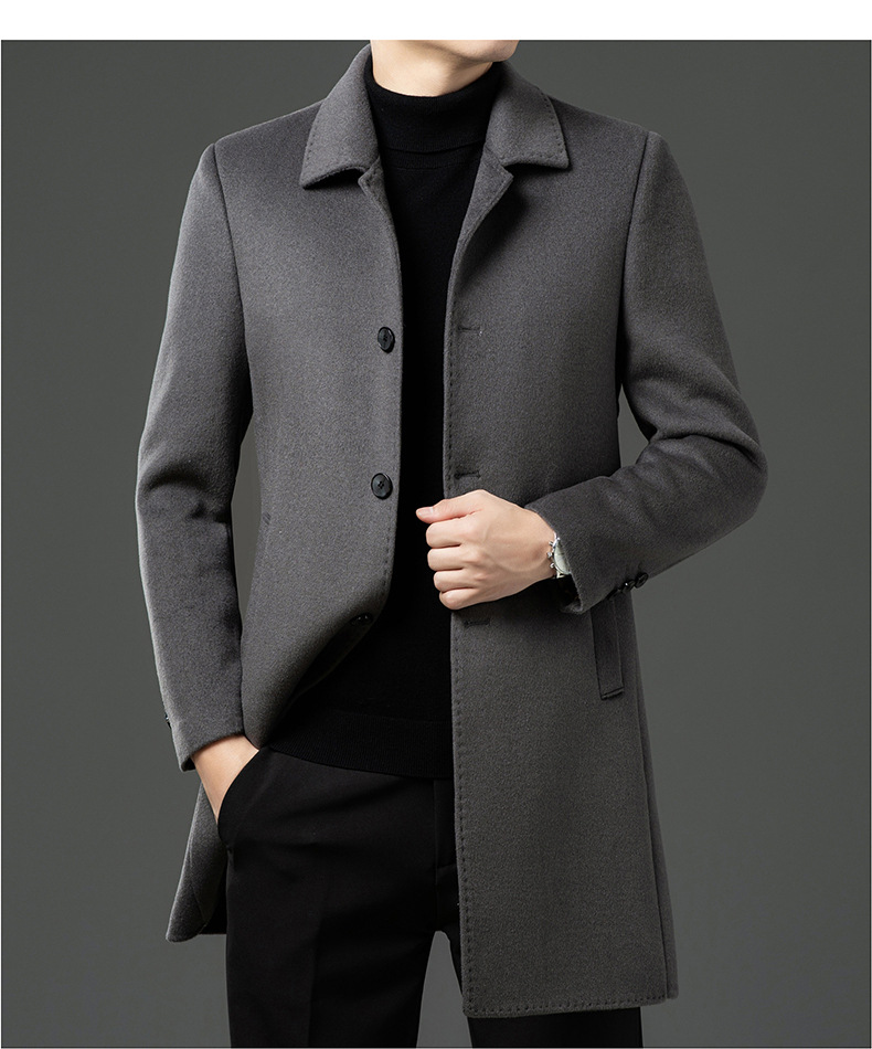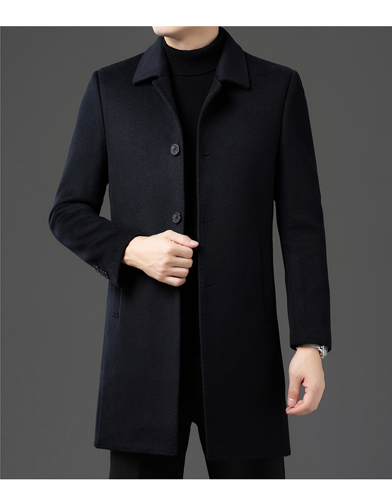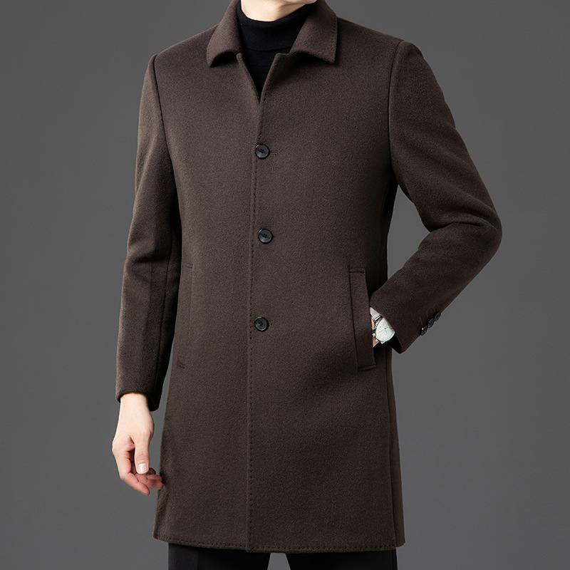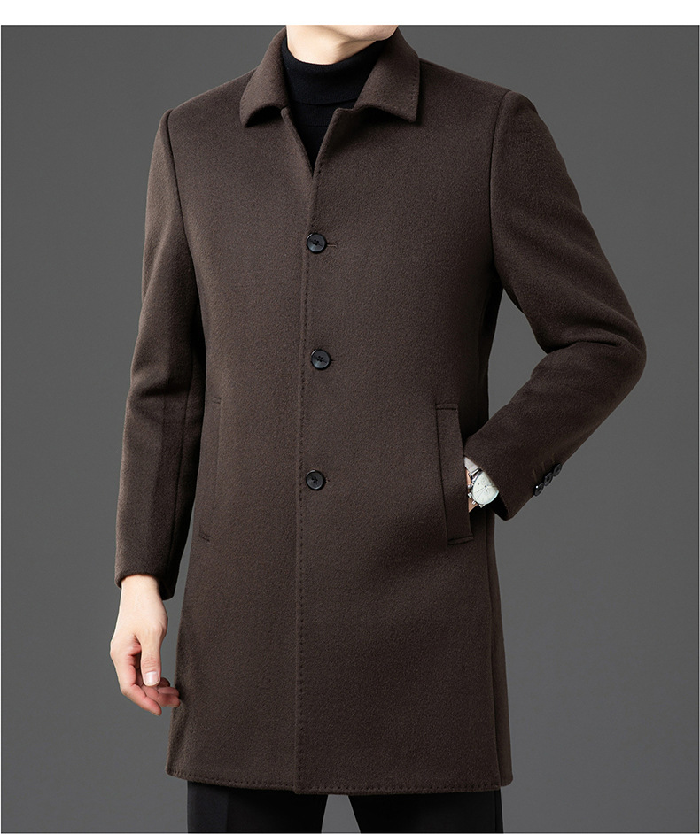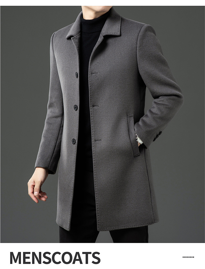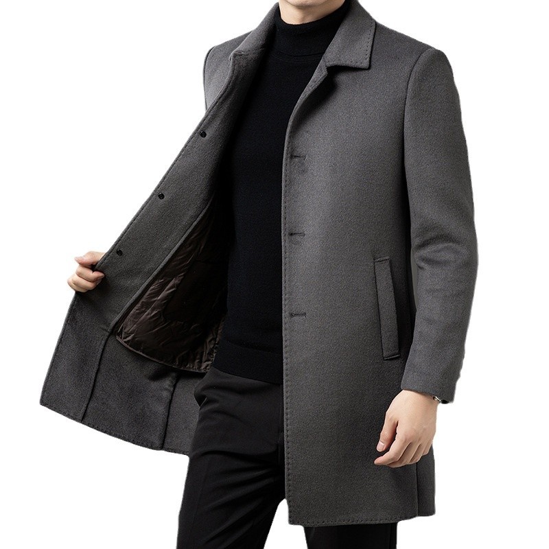 중년 아빠를위한 고급 중형 캐시미어 라이너 남성용 모직 코트 양면 모직 가을과 남성용 겨울 고급 코트
