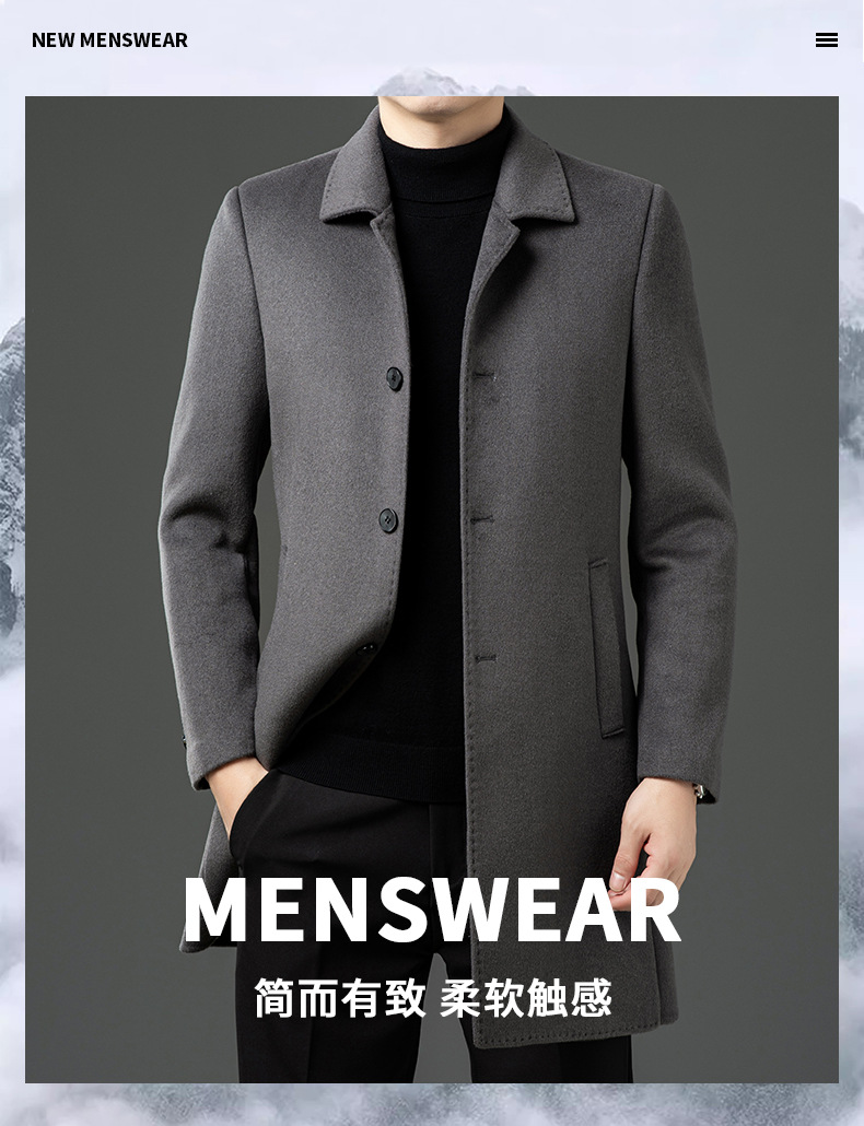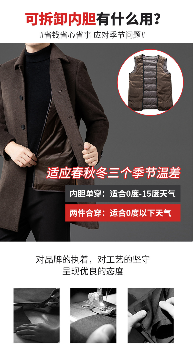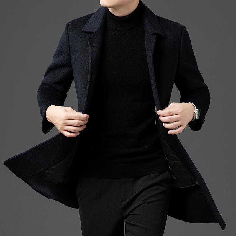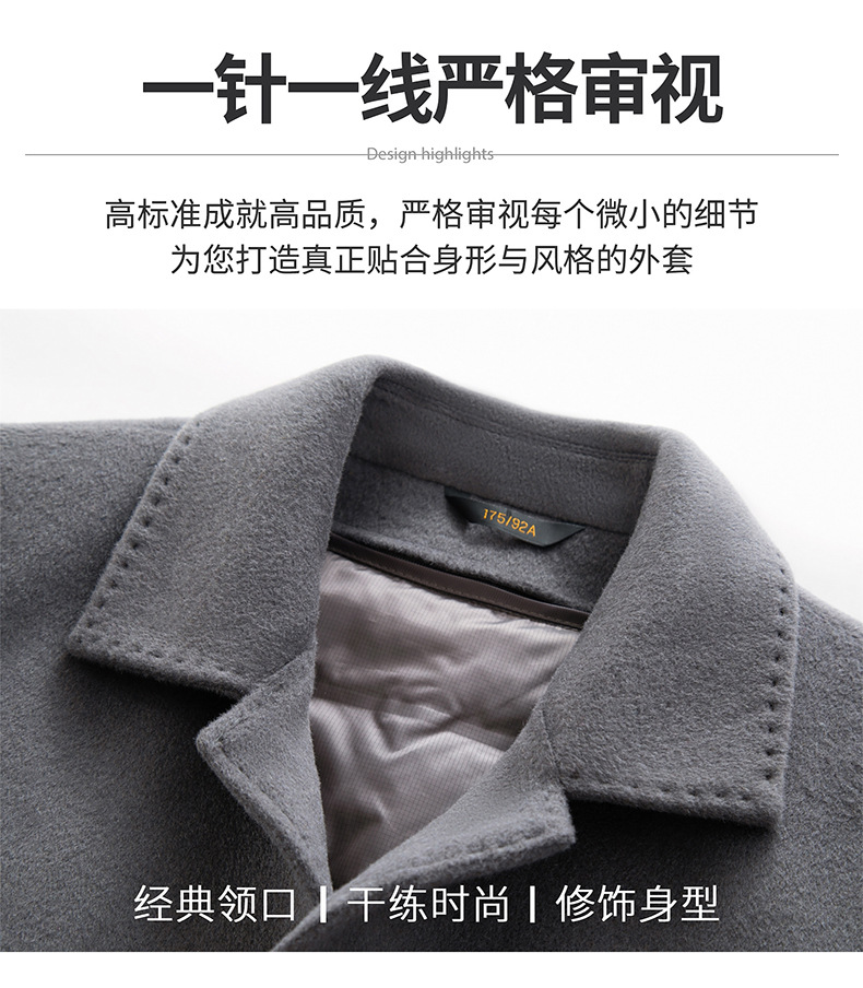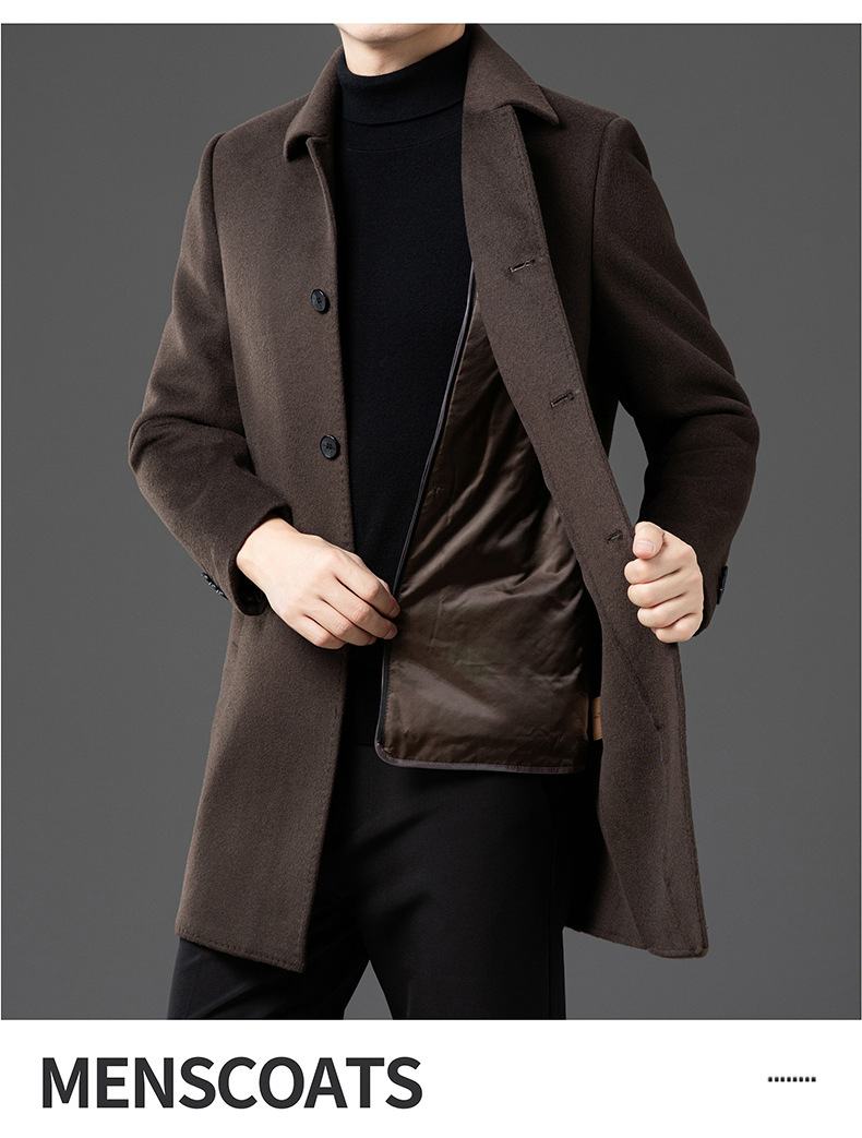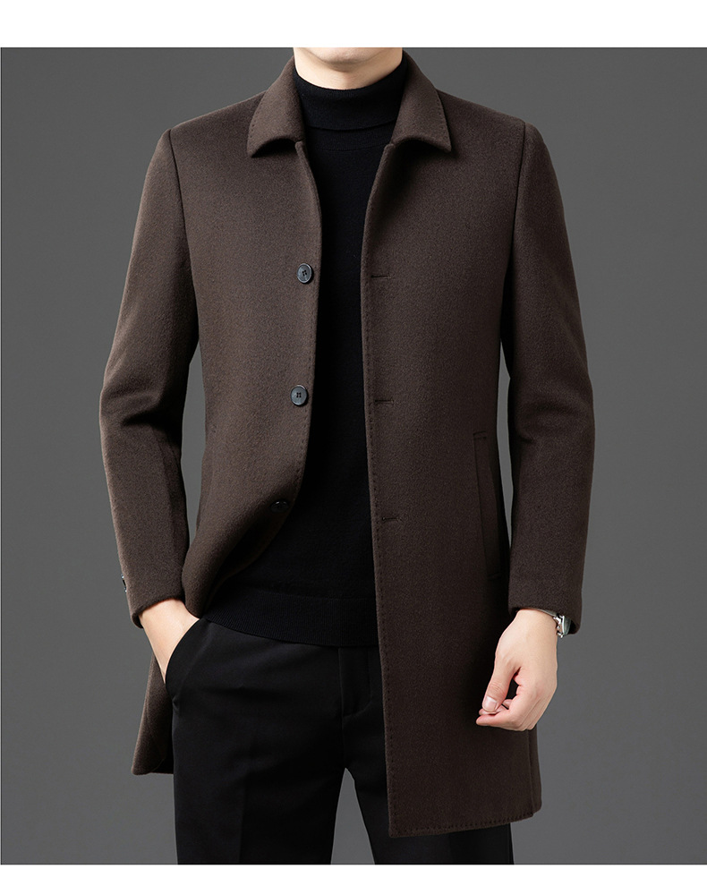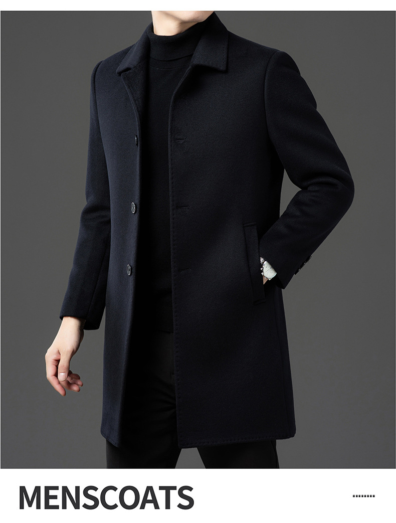 중년 아빠를위한 고급 중형 캐시미어 라이너 남성용 모직 코트 양면 모직 가을과 남성용 겨울 고급 코트