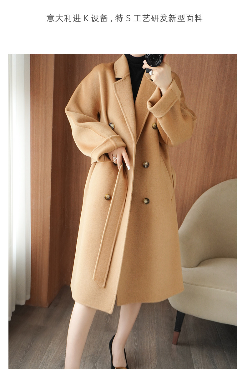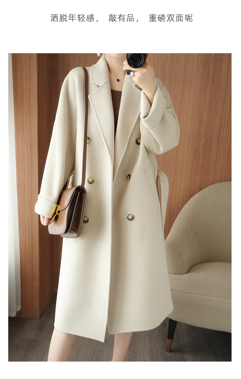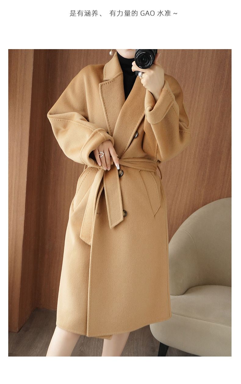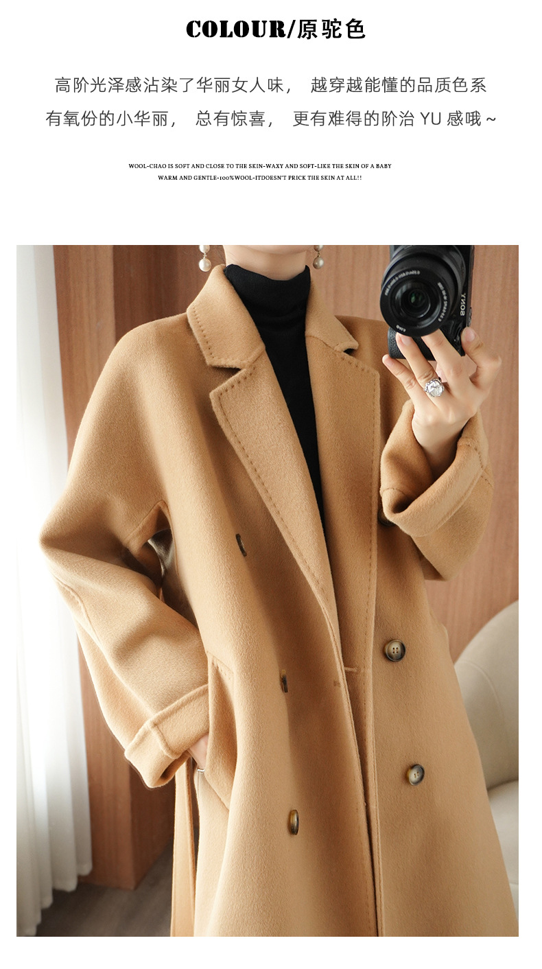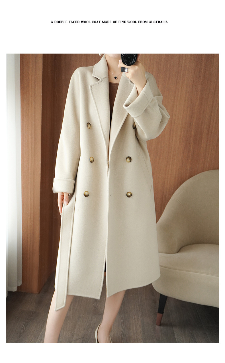 가을과 겨울 100% 양모 코트 여성용 긴 무릎 양면 양모 코트 벨트 느슨한 플러스 사이즈 캐시미어 코트