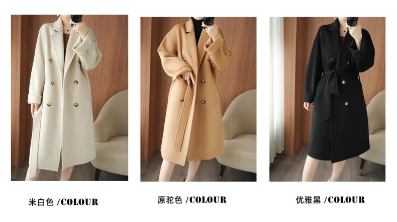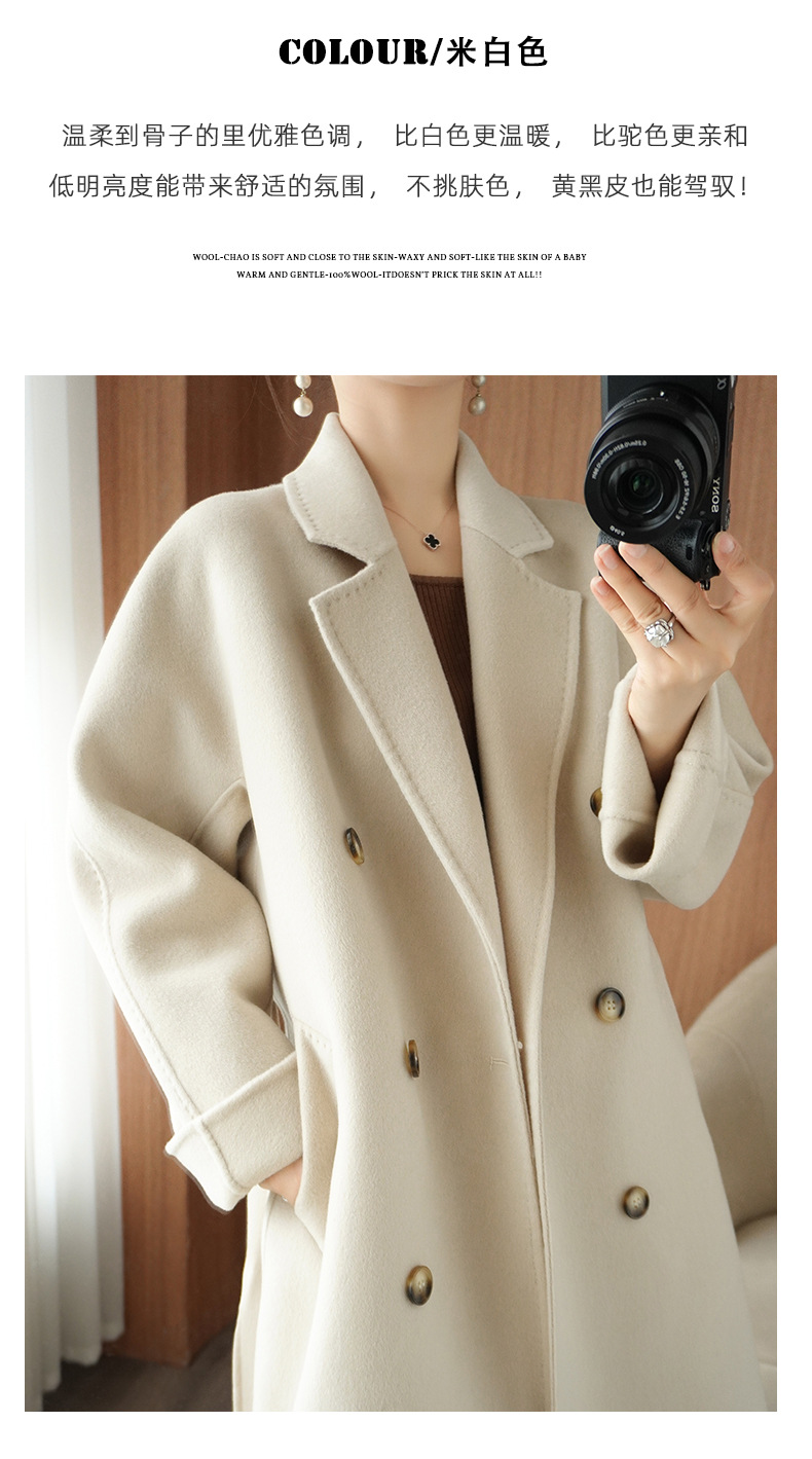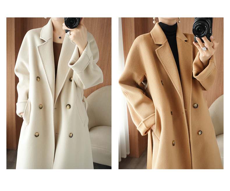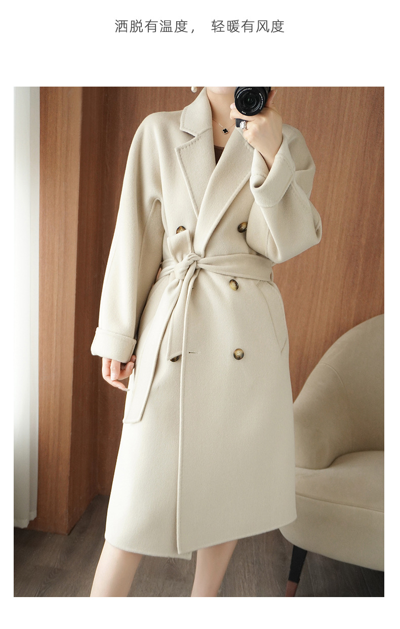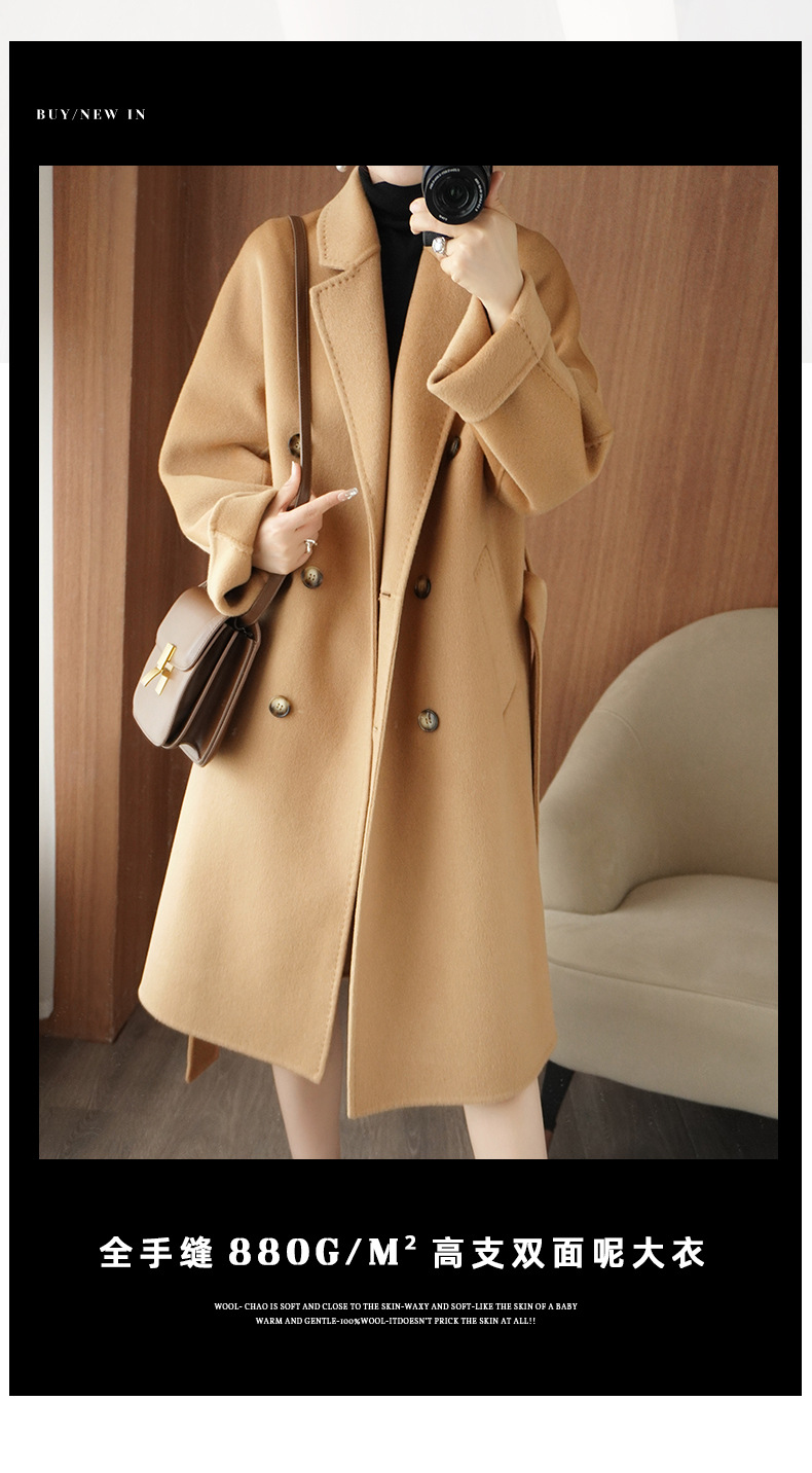 가을과 겨울 100% 양모 코트 여성용 긴 무릎 양면 양모 코트 벨트 느슨한 플러스 사이즈 캐시미어 코트