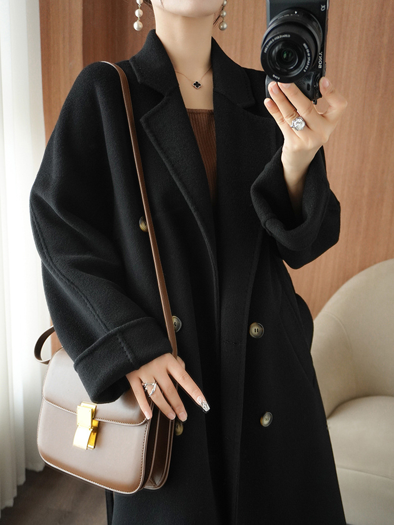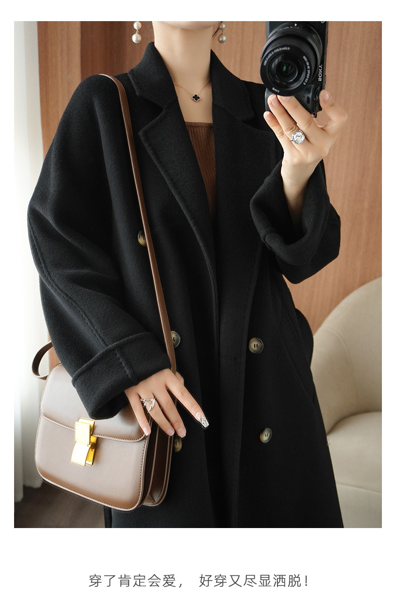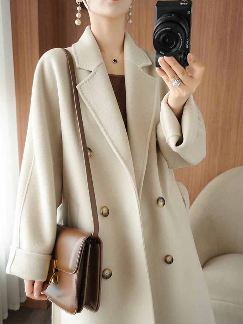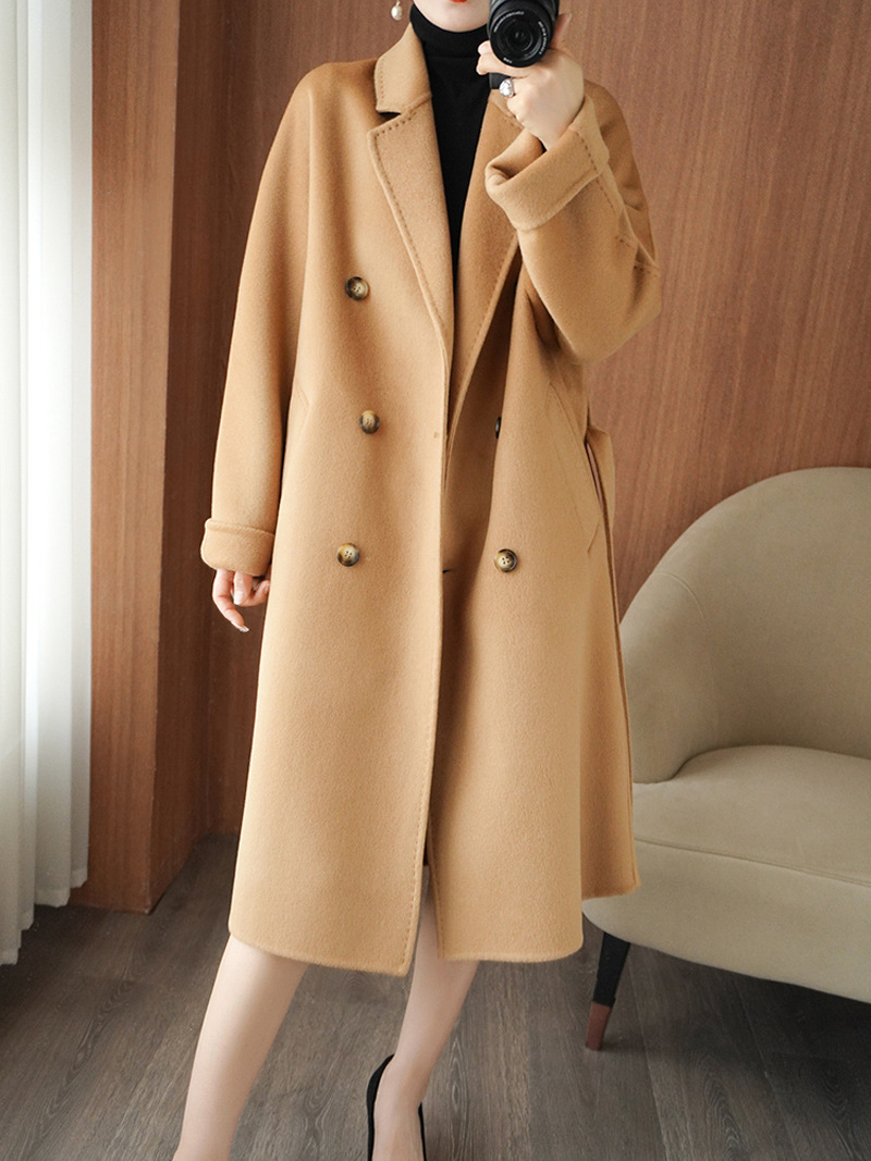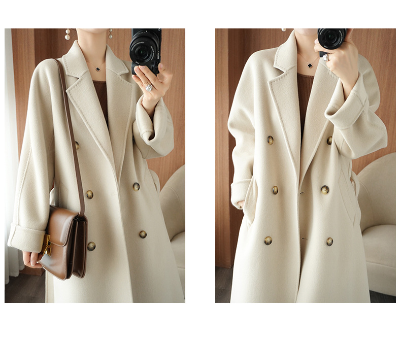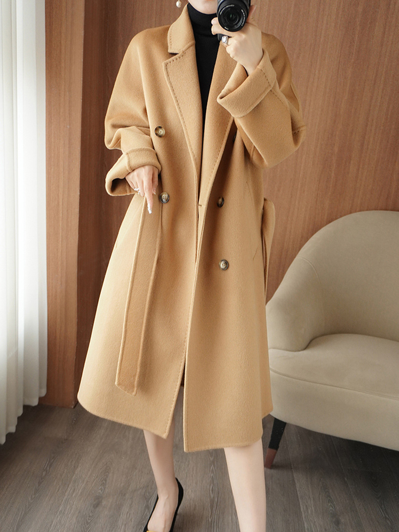 가을과 겨울 100% 양모 코트 여성용 긴 무릎 양면 양모 코트 벨트 느슨한 플러스 사이즈 캐시미어 코트