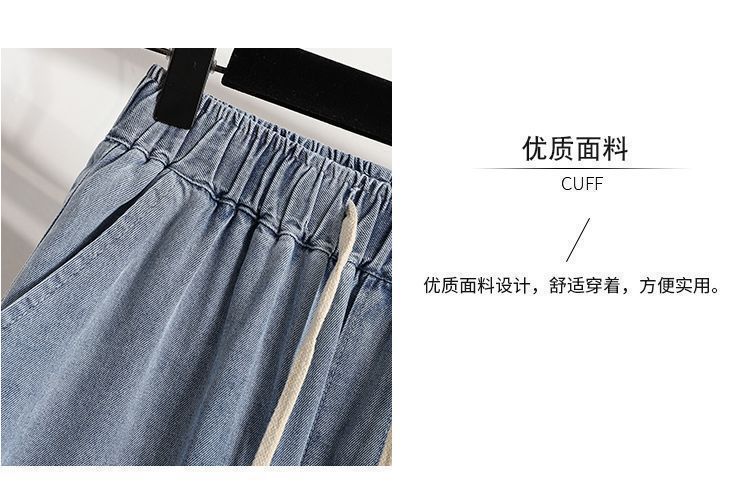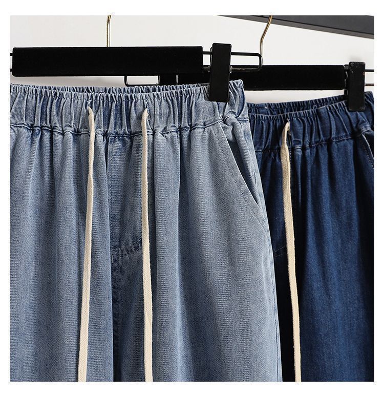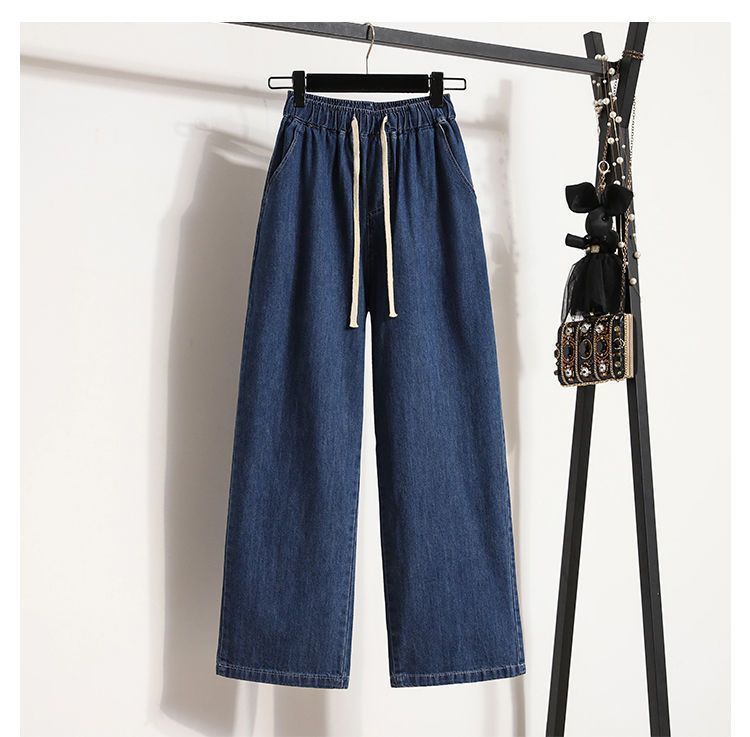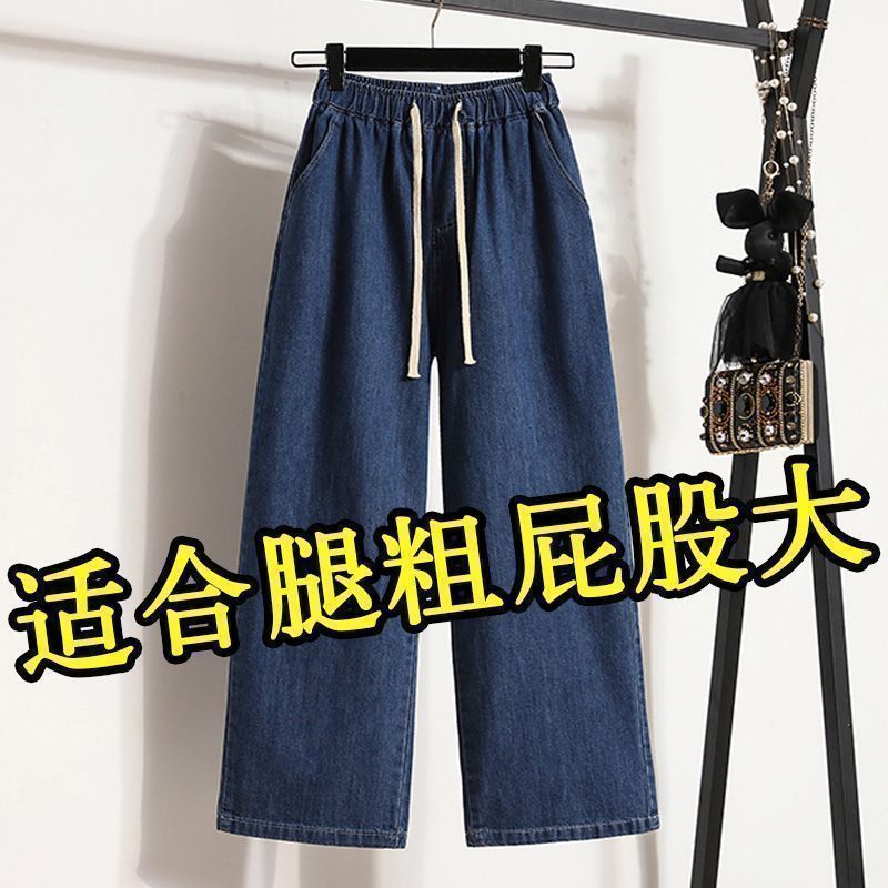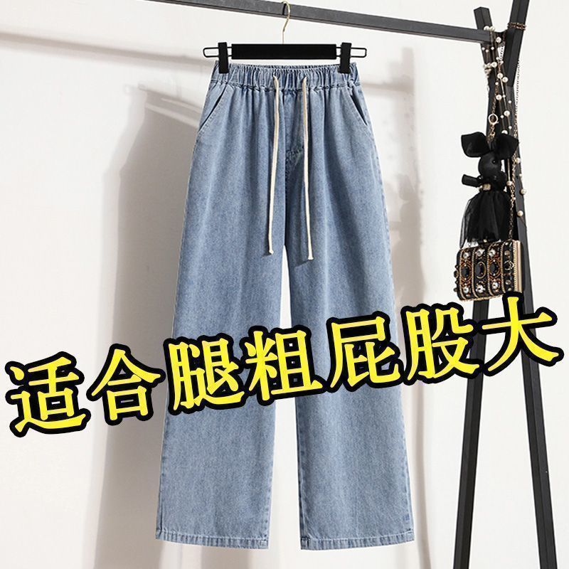 통통녀 느슨한 허리 청바지 여자 플러스 사이즈 중간 허리 슬림 얇은 직선 다리 바지 통통녀 s 느슨한 올 매치 와이드 다리 바지