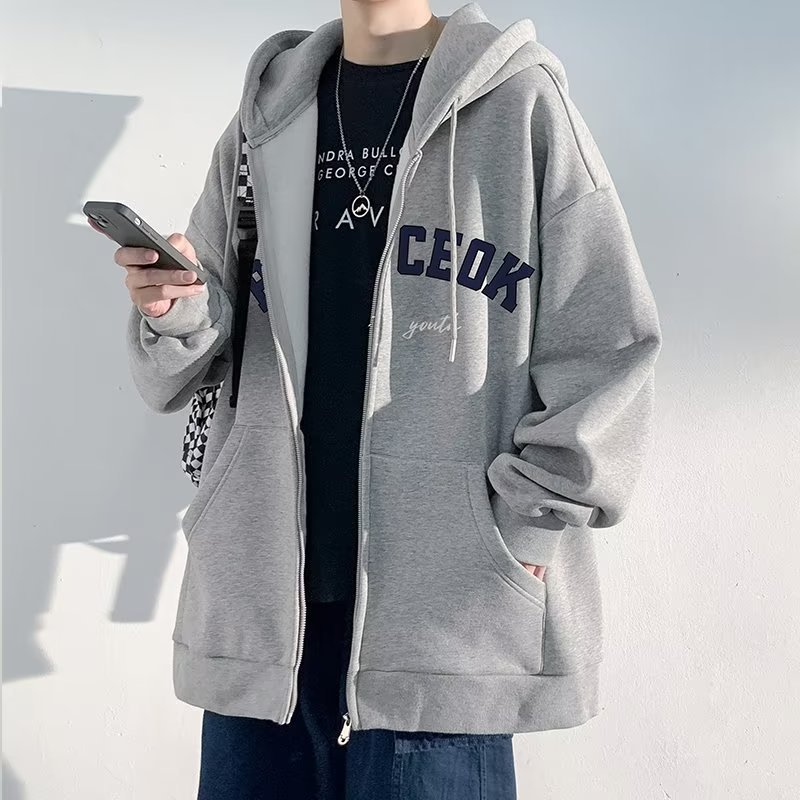한국 스타일 트렌디 브랜드 패션 재킷 남자 봄 가을 새 스포츠 후드 카디건 스웨터 캐주얼 올 매치 톱 크로스