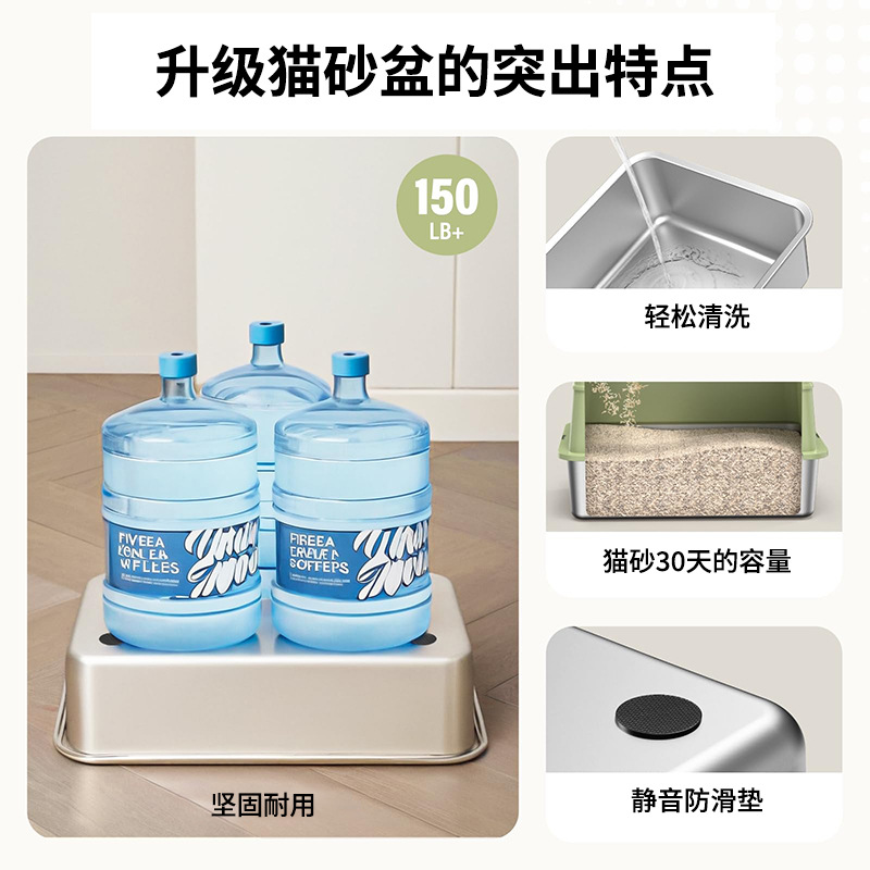 스테인레스 스틸 고양이 애완 동물 쓰레기 상자 고양이 화장실을 청소하기 쉬운 대형 반 밀폐 고양이 쓰레기 상자 탈착식