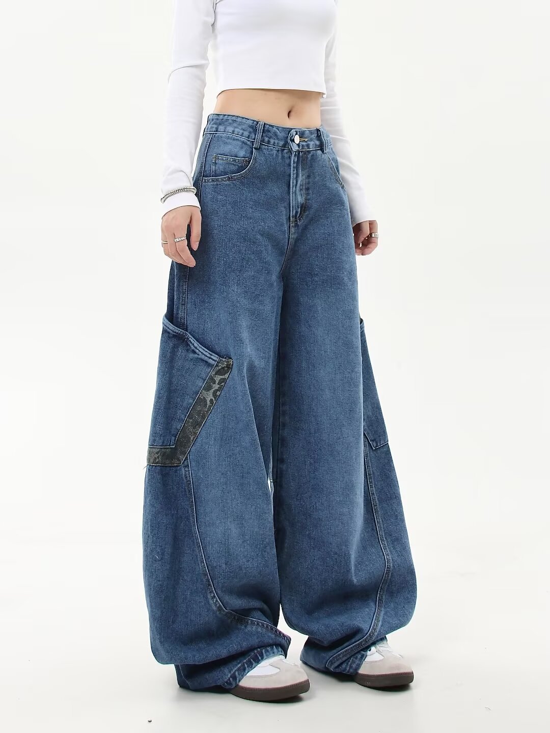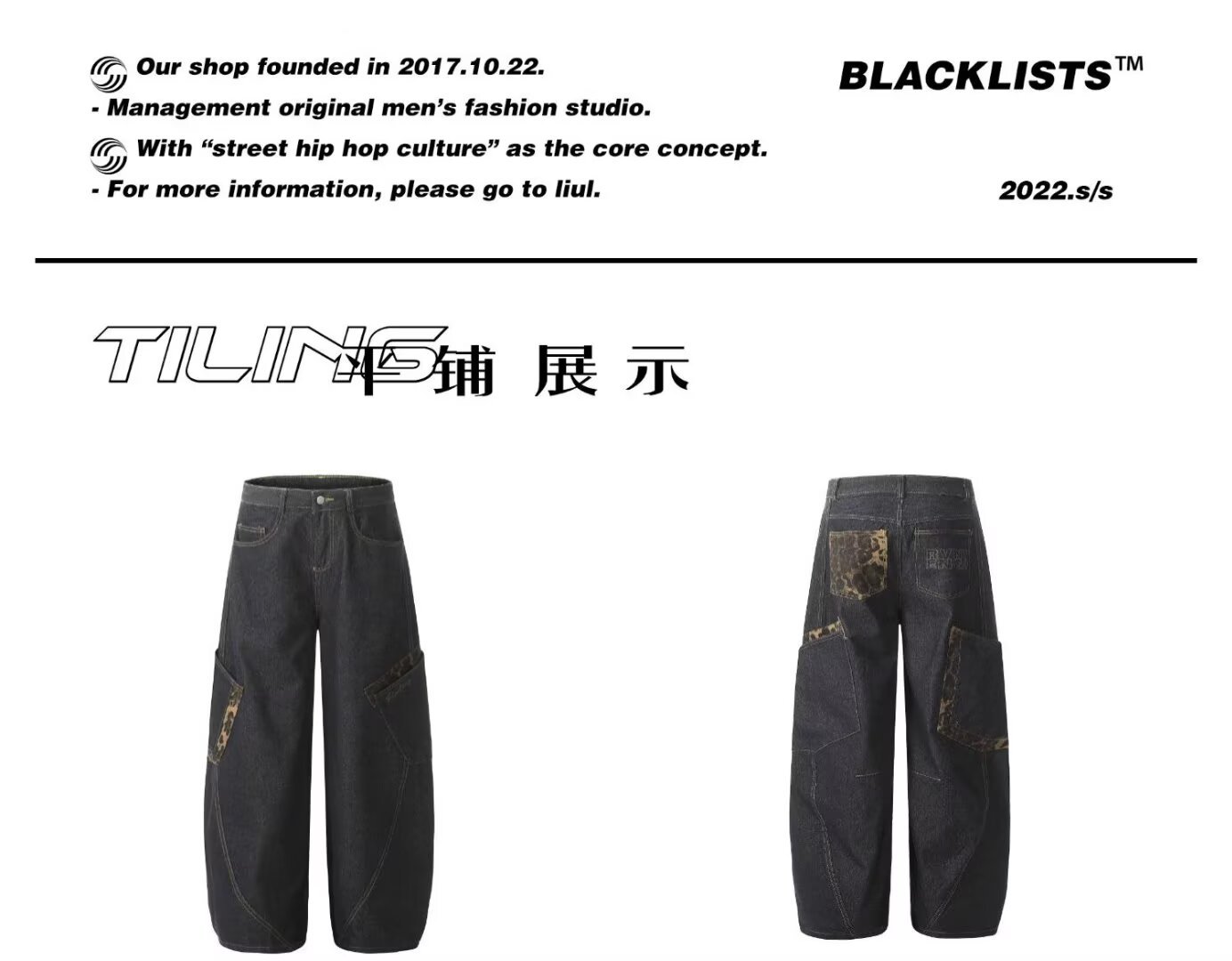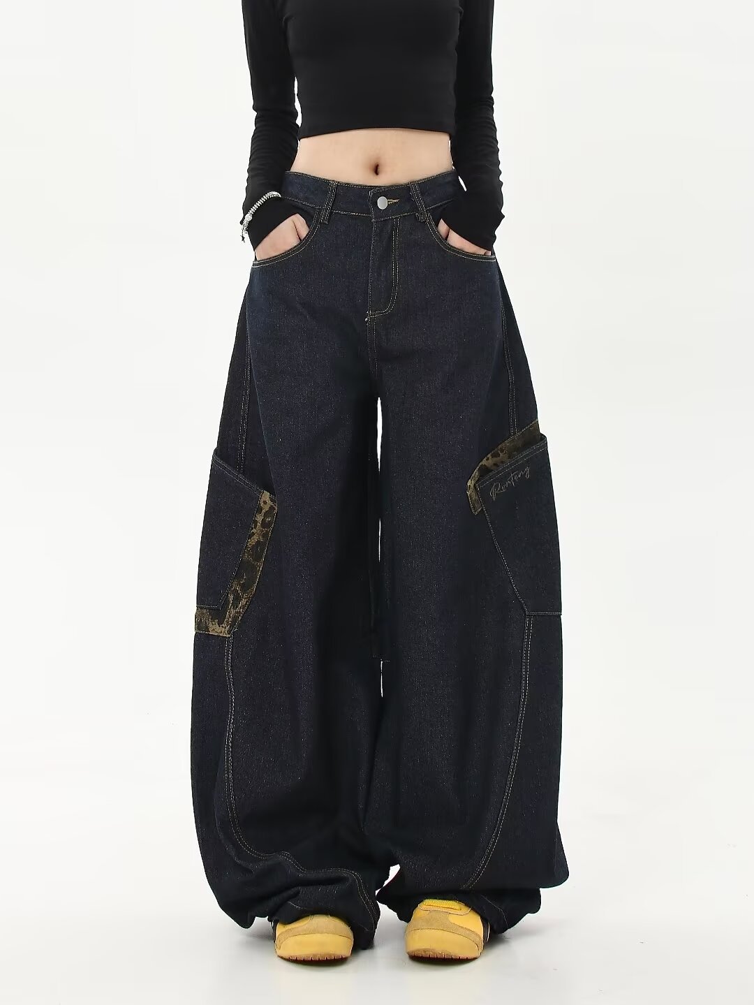 아메리칸 스타일 레트로 틈새 드레스 와이드 레그 청바지 여성의 가을과 겨울 새로운 느슨한 슬리밍 레오파드 무늬 마체테 바지