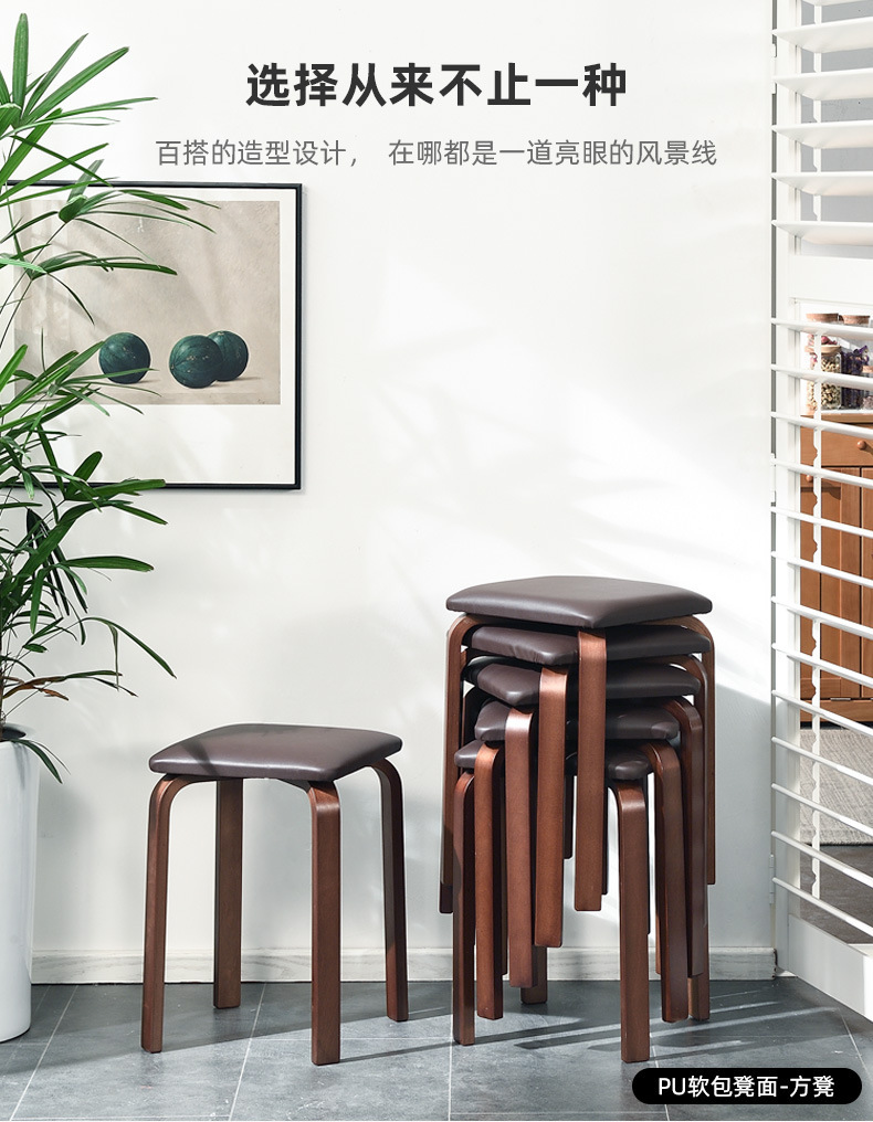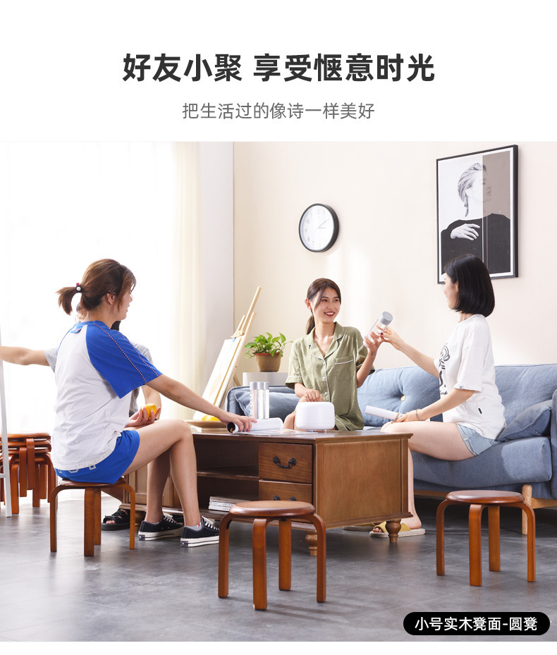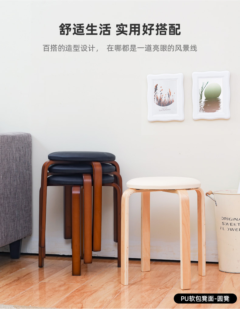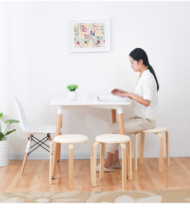 홈 쉽게 쌓을 수 있는 둥근 의자 가정용 단단한 나무 의자 간단한 나무 의자 문 신발 의자 쌓을 수 있는 작은 의자