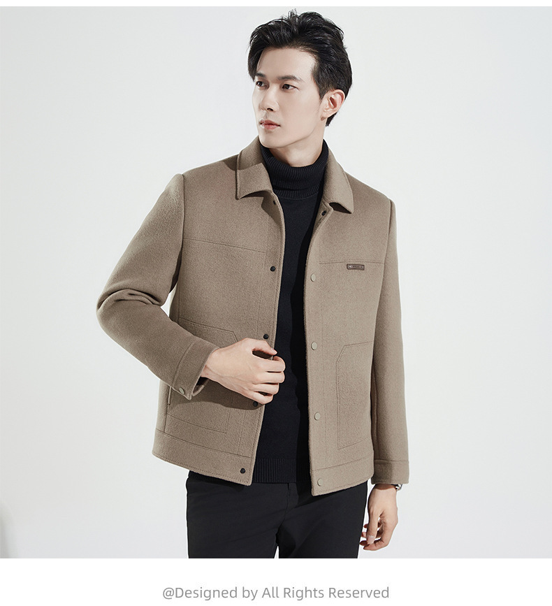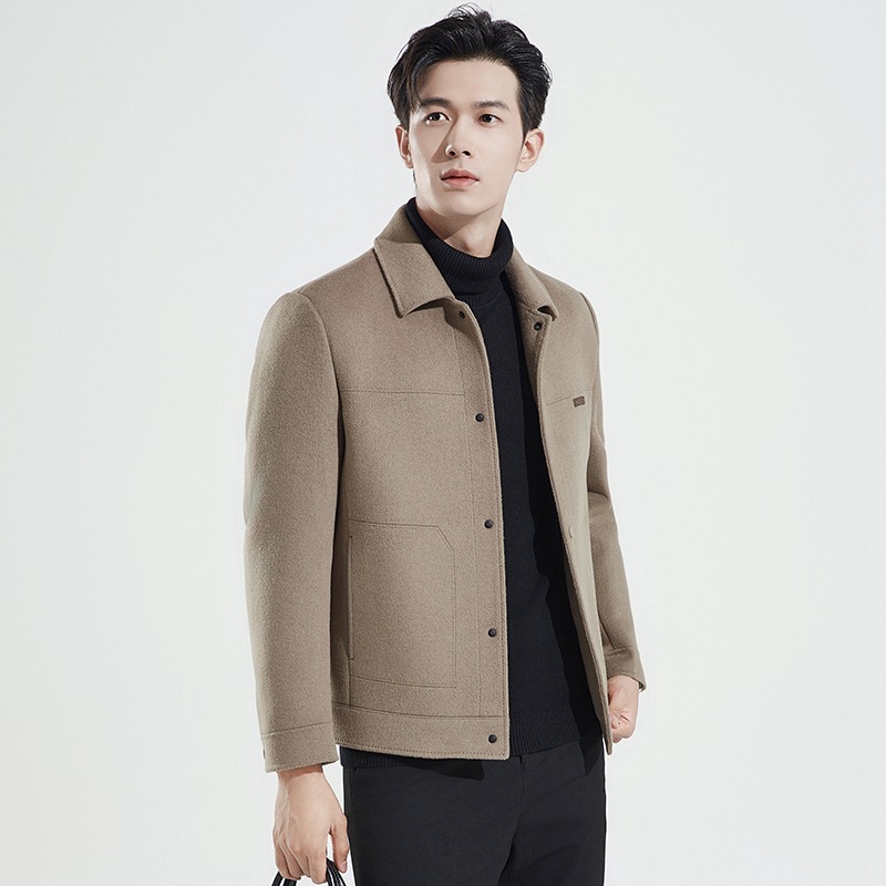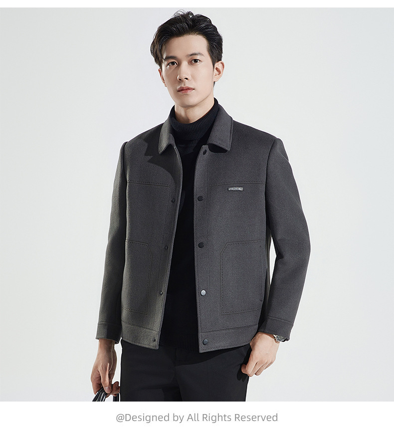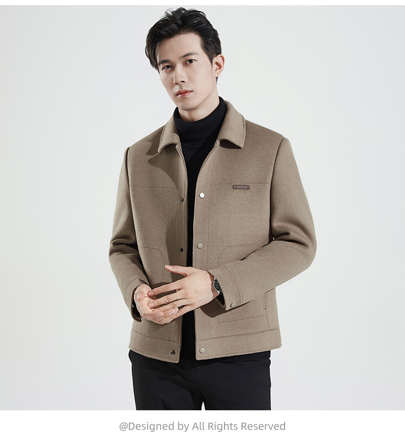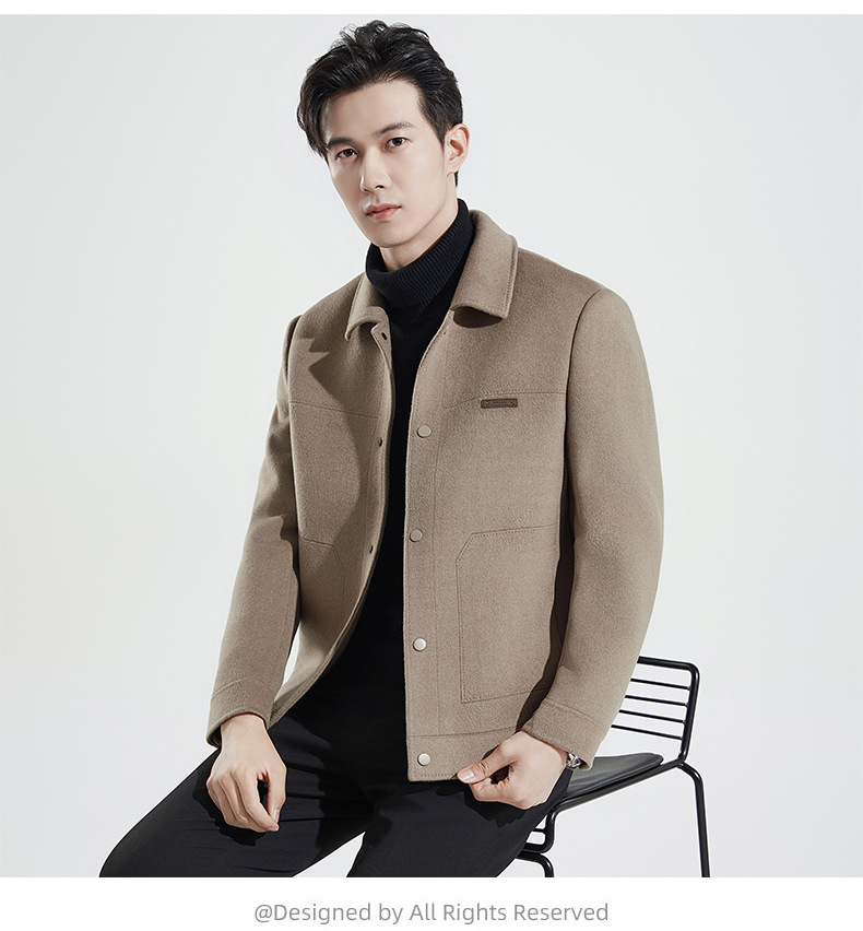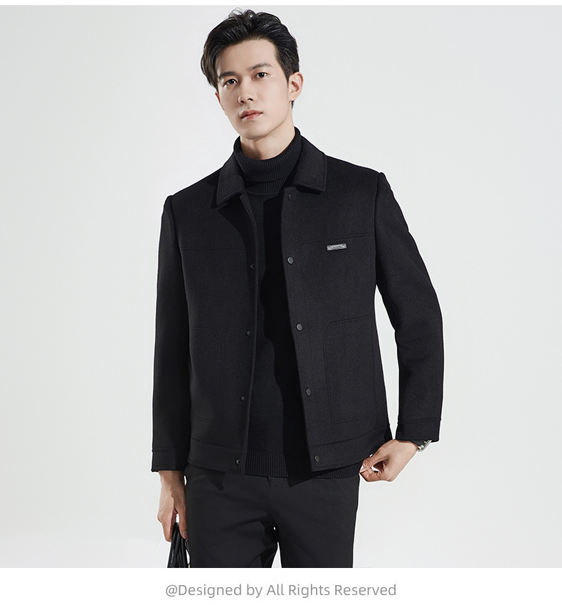 양모 코트 남자의 짧은 양면 나일론 코트 2024 가을과 겨울 새로운 남성 패딩 캐시미어 모직 재킷