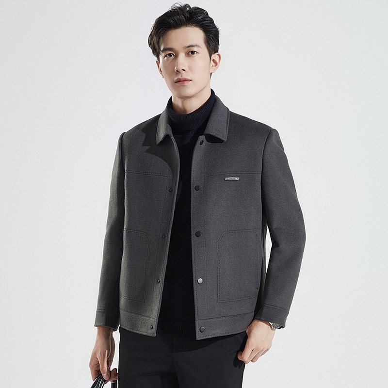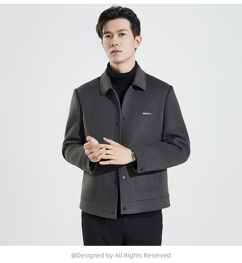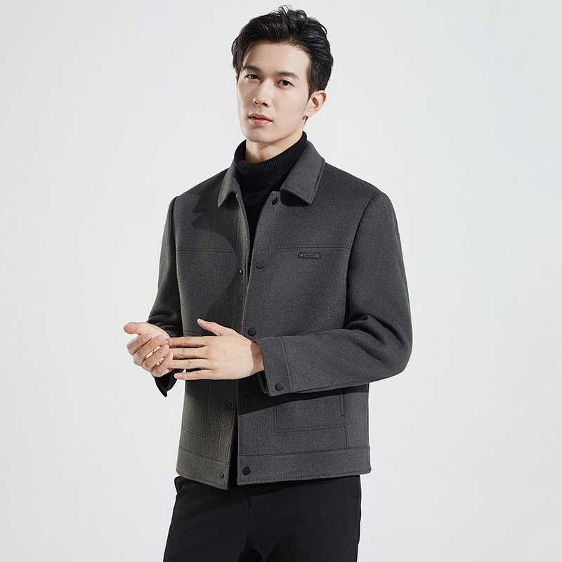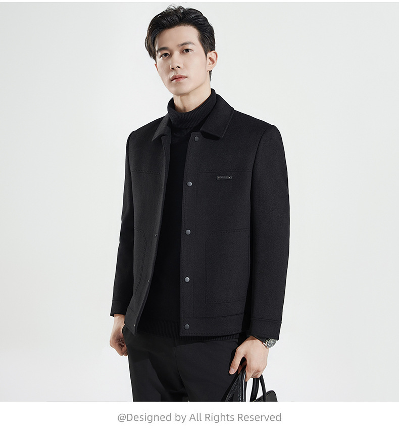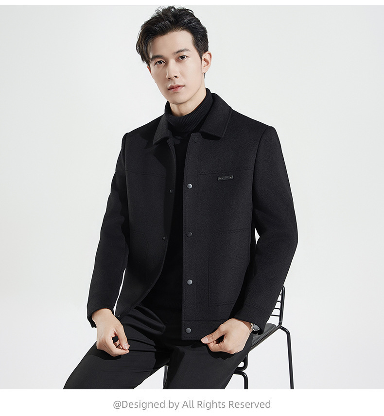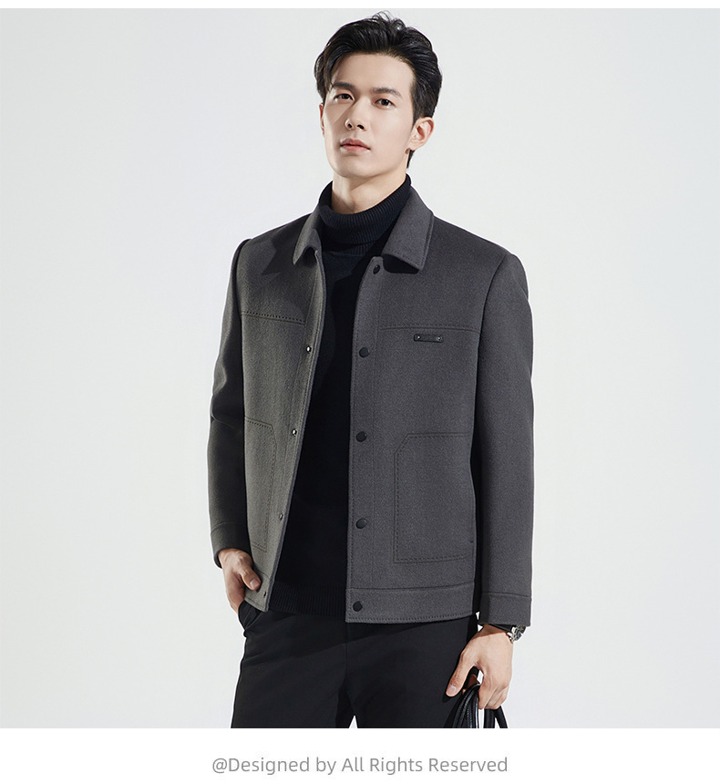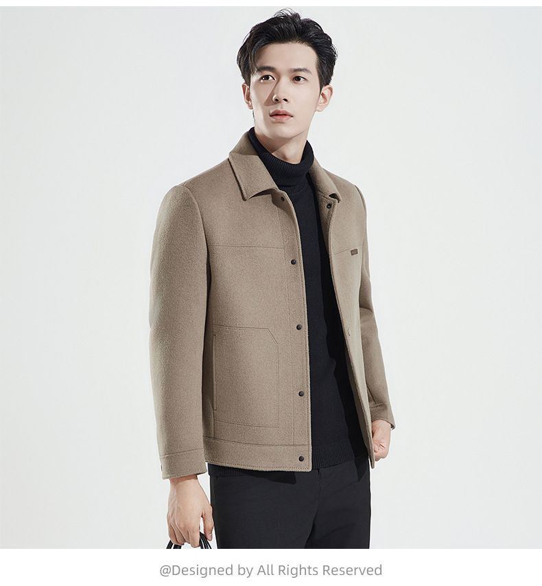 양모 코트 남자의 짧은 양면 나일론 코트 2024 가을과 겨울 새로운 남성 패딩 캐시미어 모직 재킷