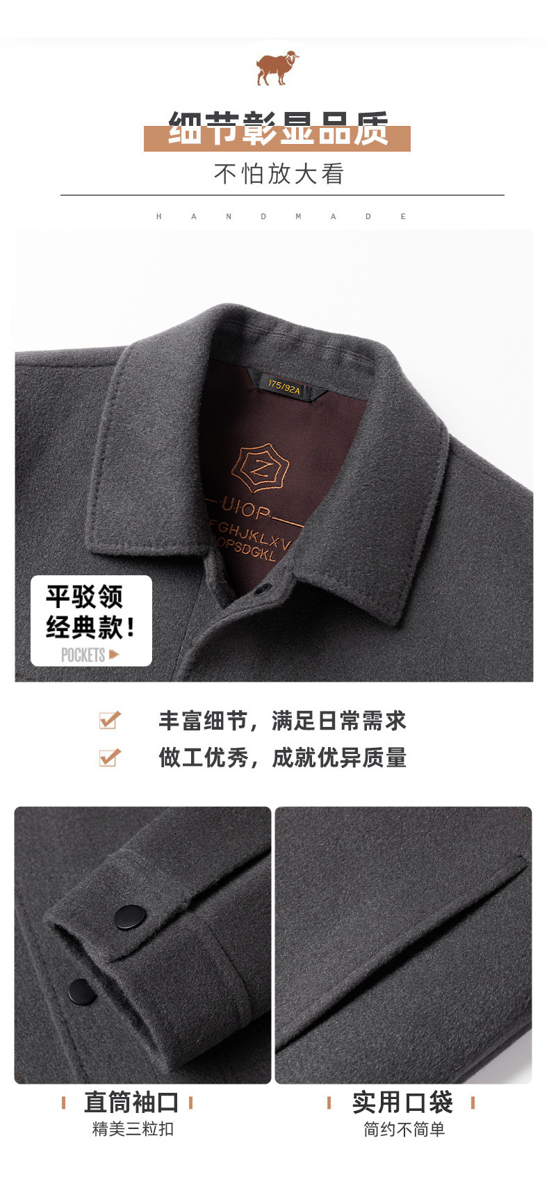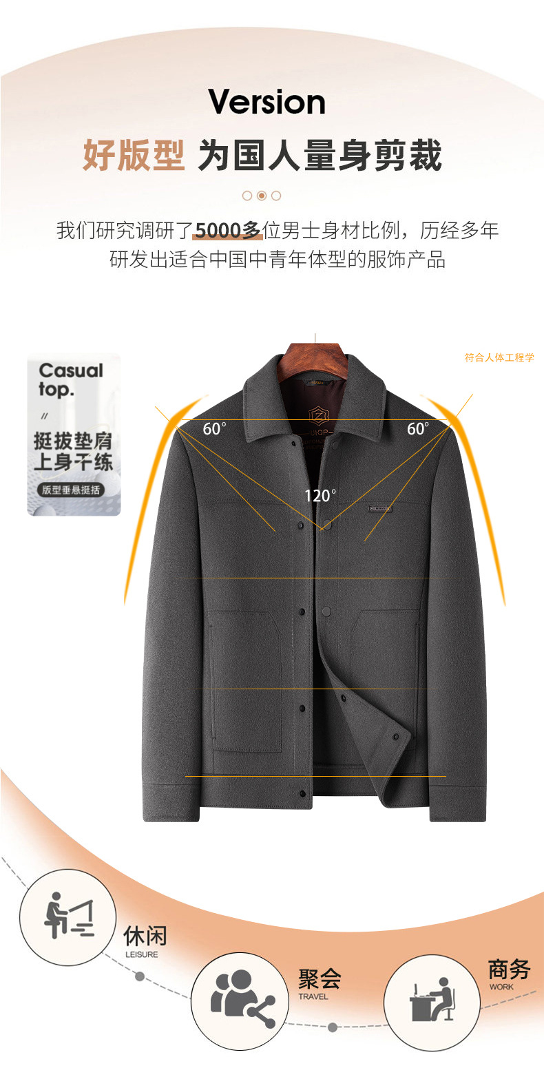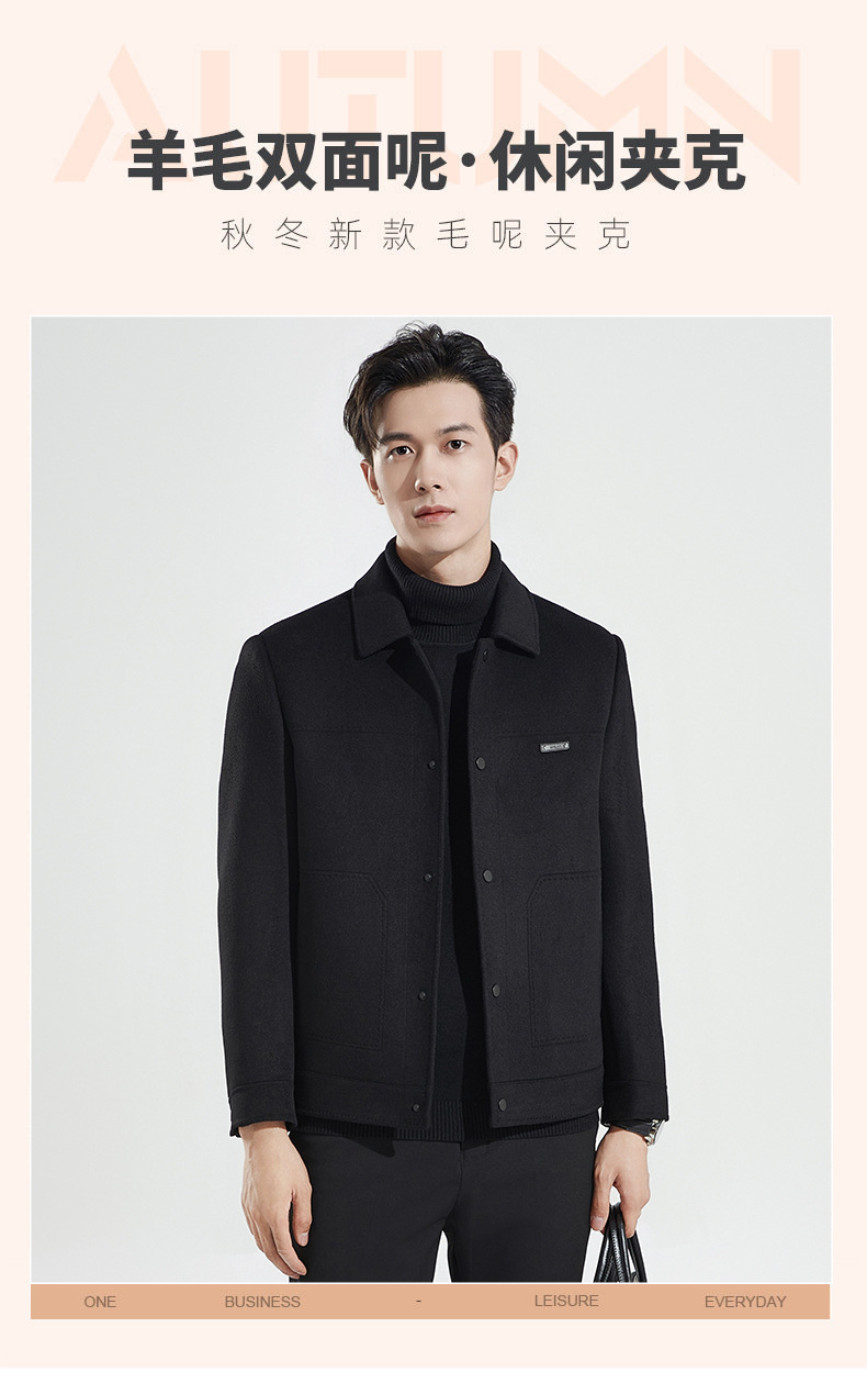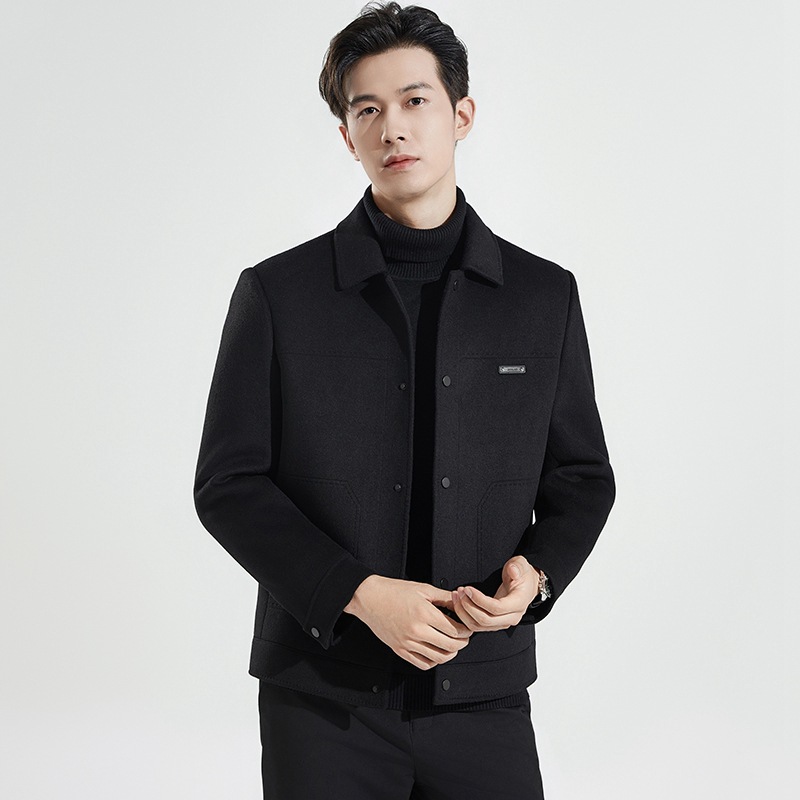 양모 코트 남자의 짧은 양면 나일론 코트 2024 가을과 겨울 새로운 남성 패딩 캐시미어 모직 재킷