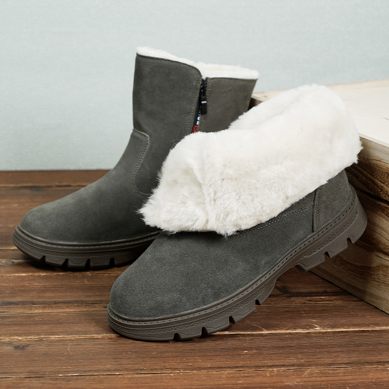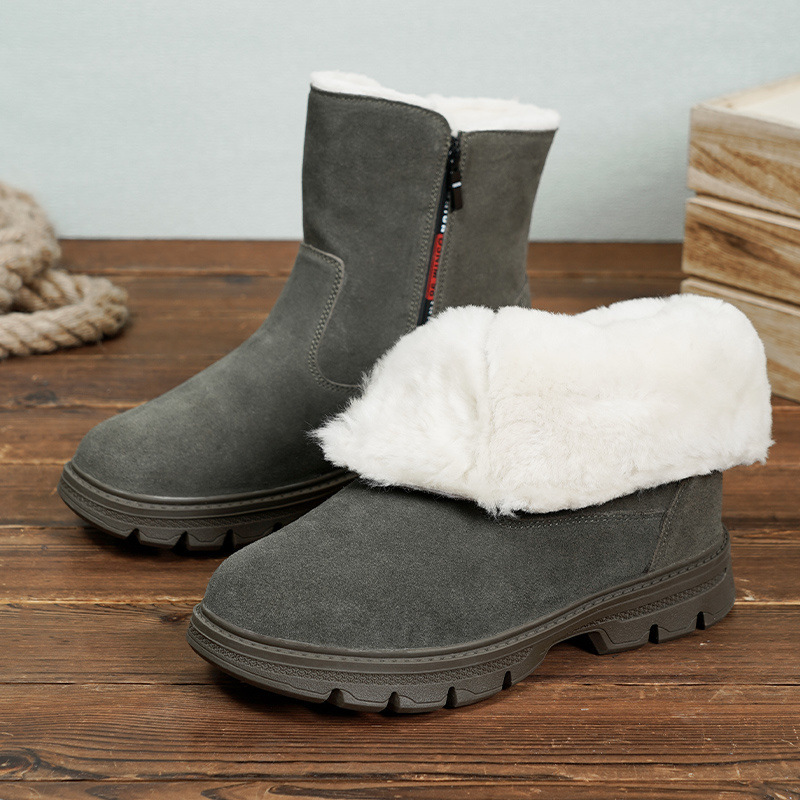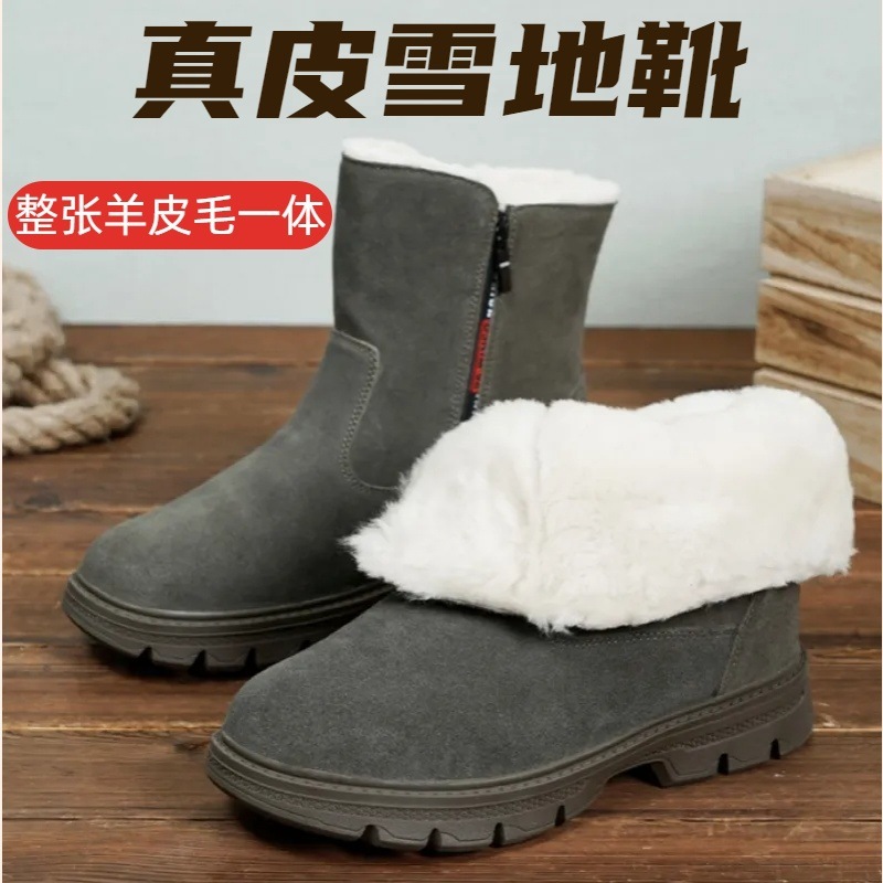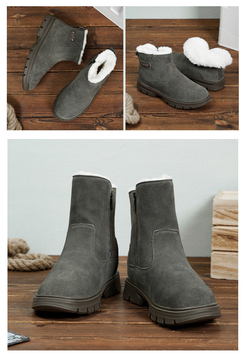 로우탑 [두꺼운 울] 소가죽 스노우 부츠, 발가락까지 울 소재