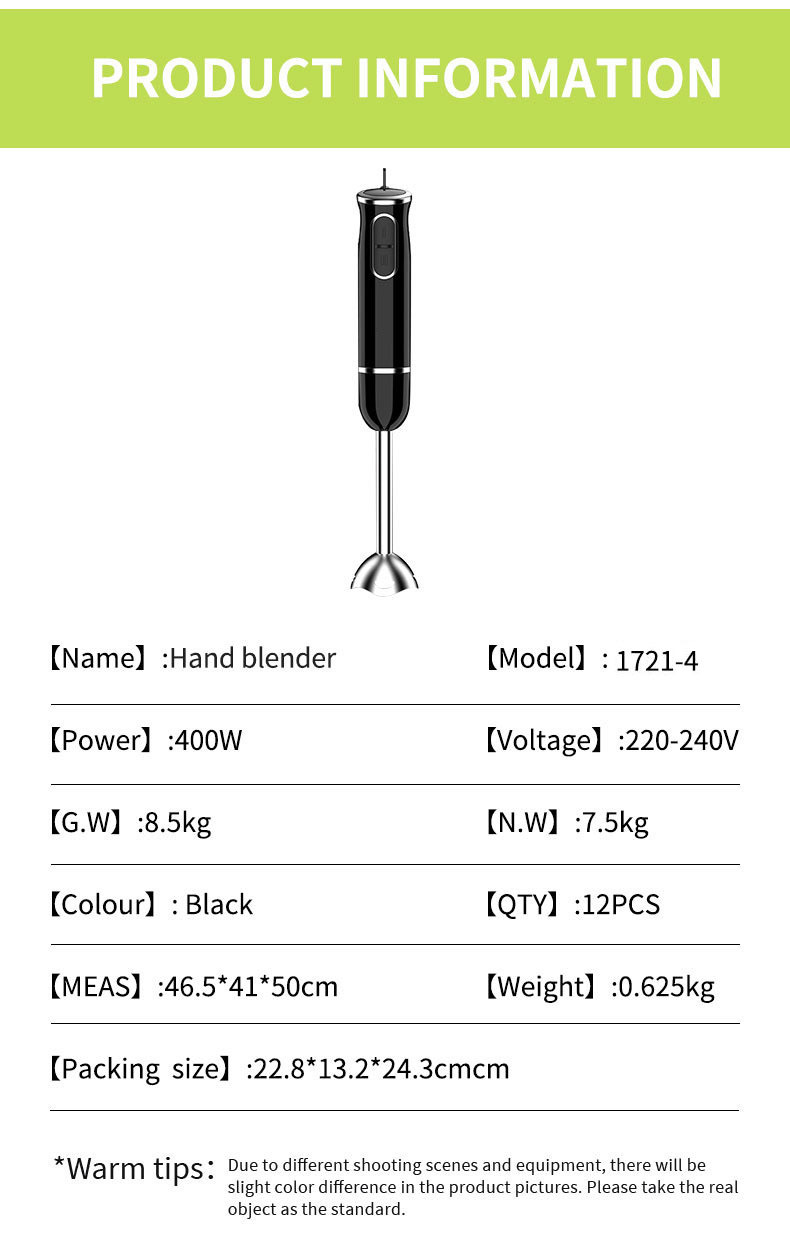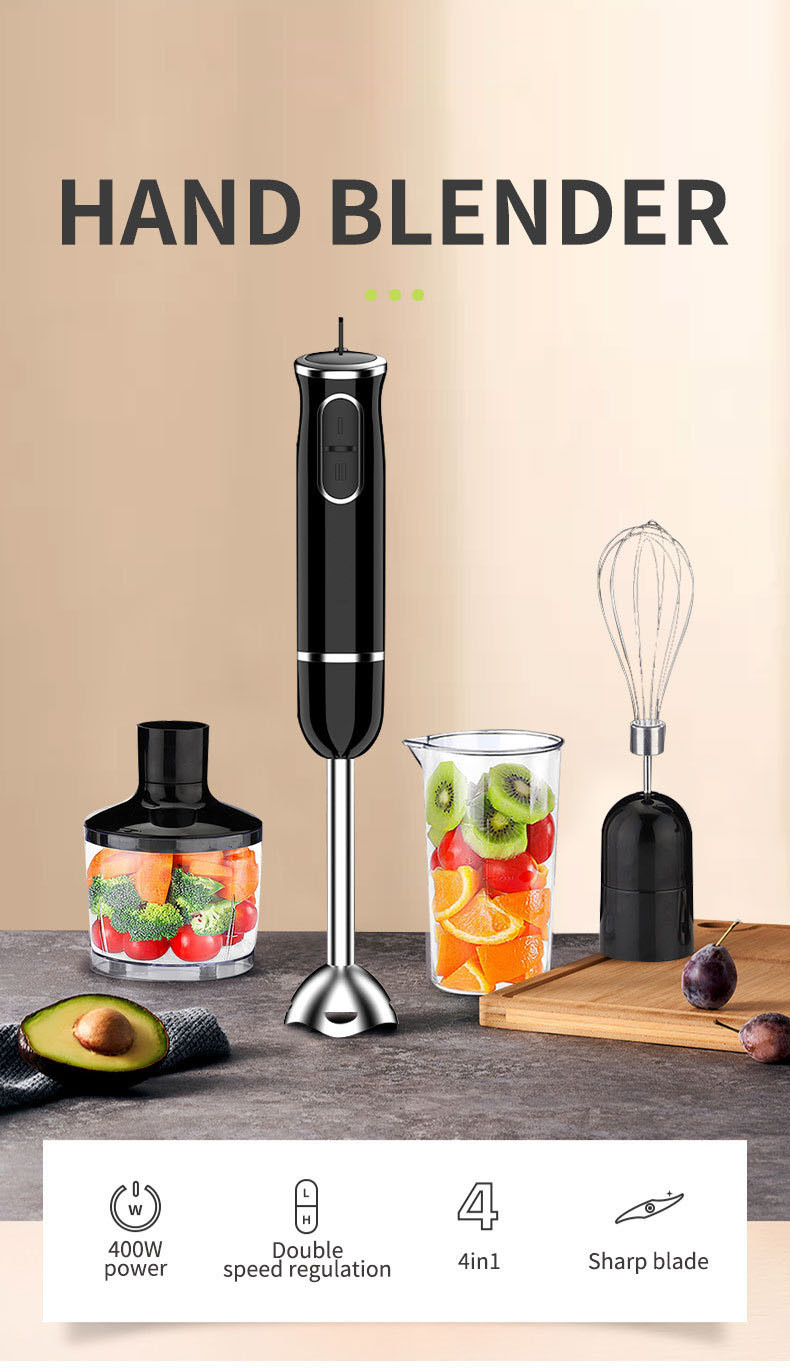 대외 무역 유럽 규정 4in1 요리 스틱 주방 휴대용 전기 믹서 다진 고기와 비트 계란 보조 식품 주스 과즙