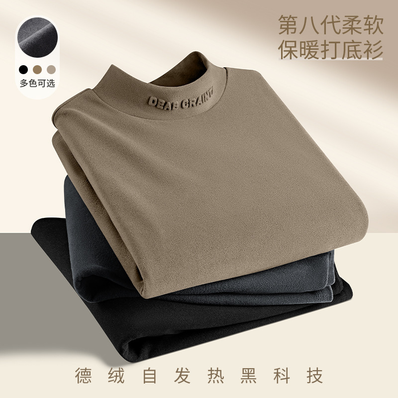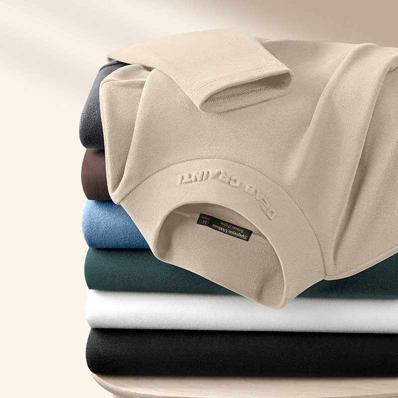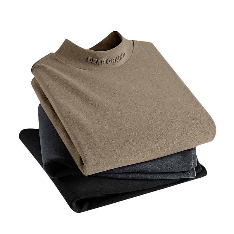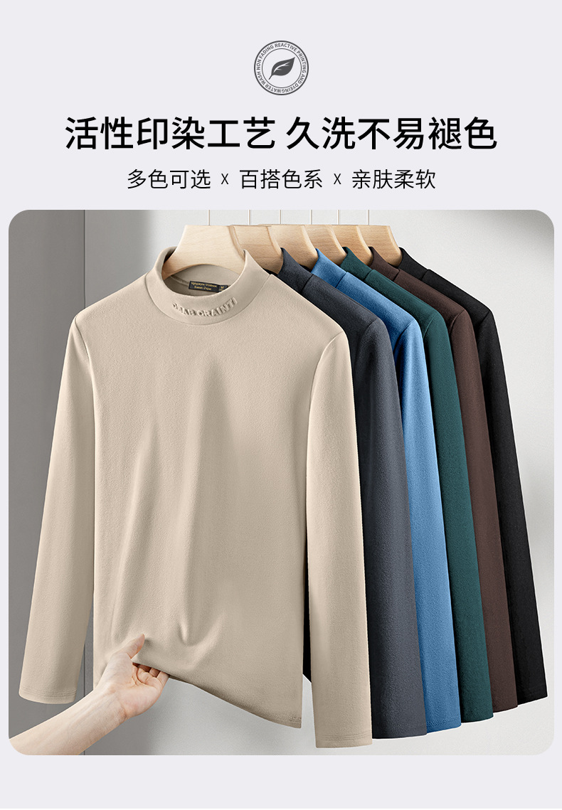 대외 무역 도매 중년 남성 가을과 겨울 단색 긴팔 티셔츠 조커 세미 하이 칼라 재킷 독일 벨벳 따뜻한베이스 셔츠