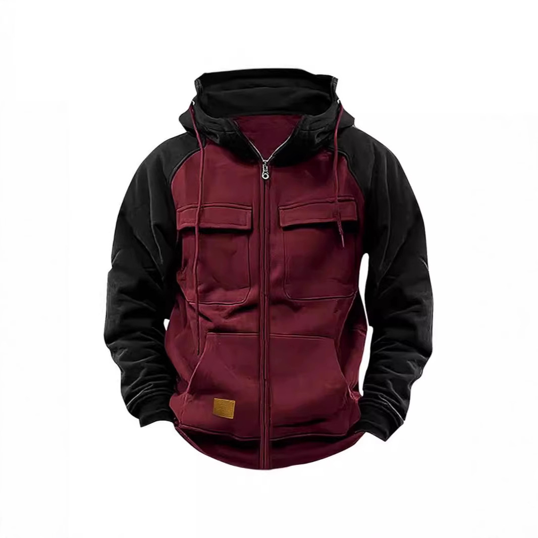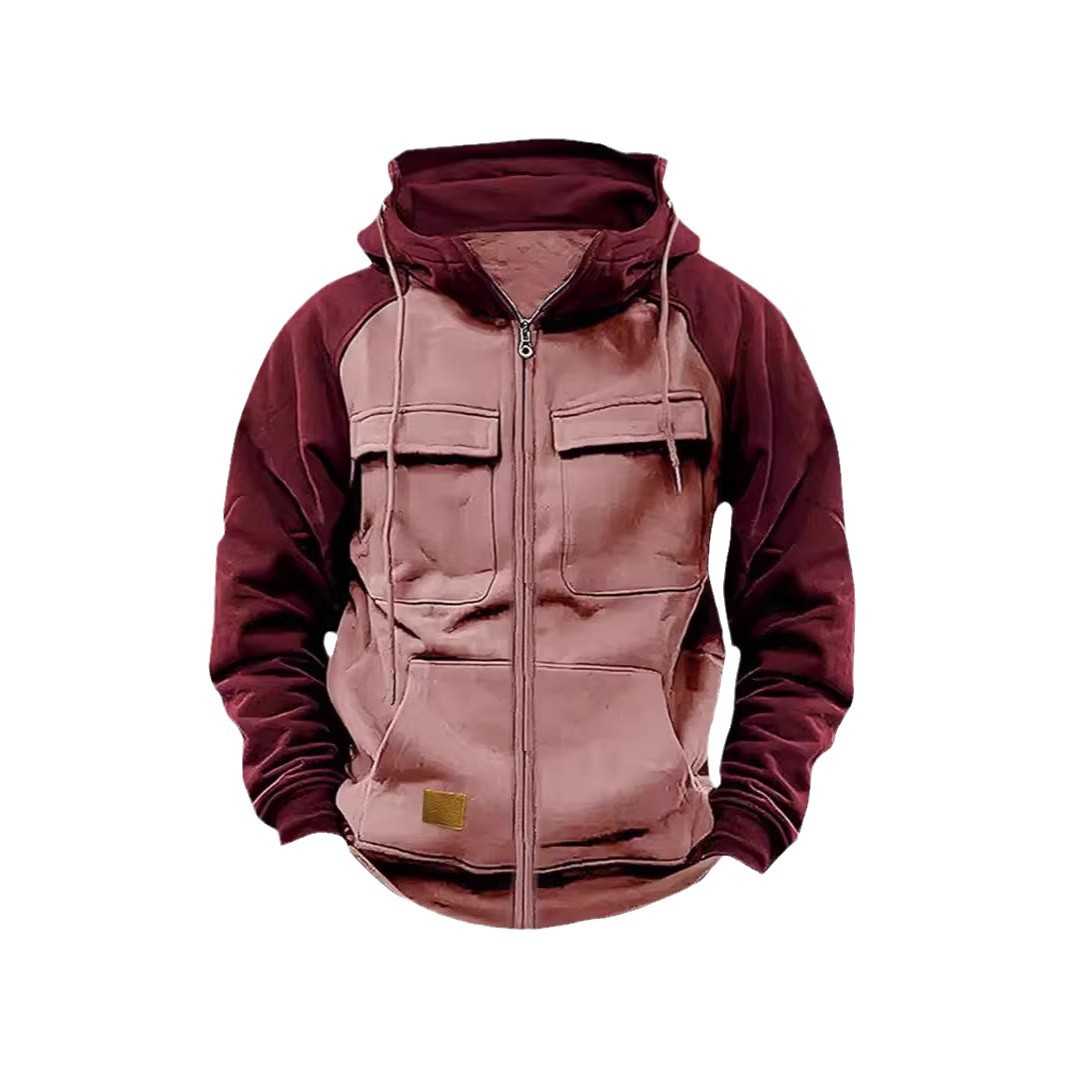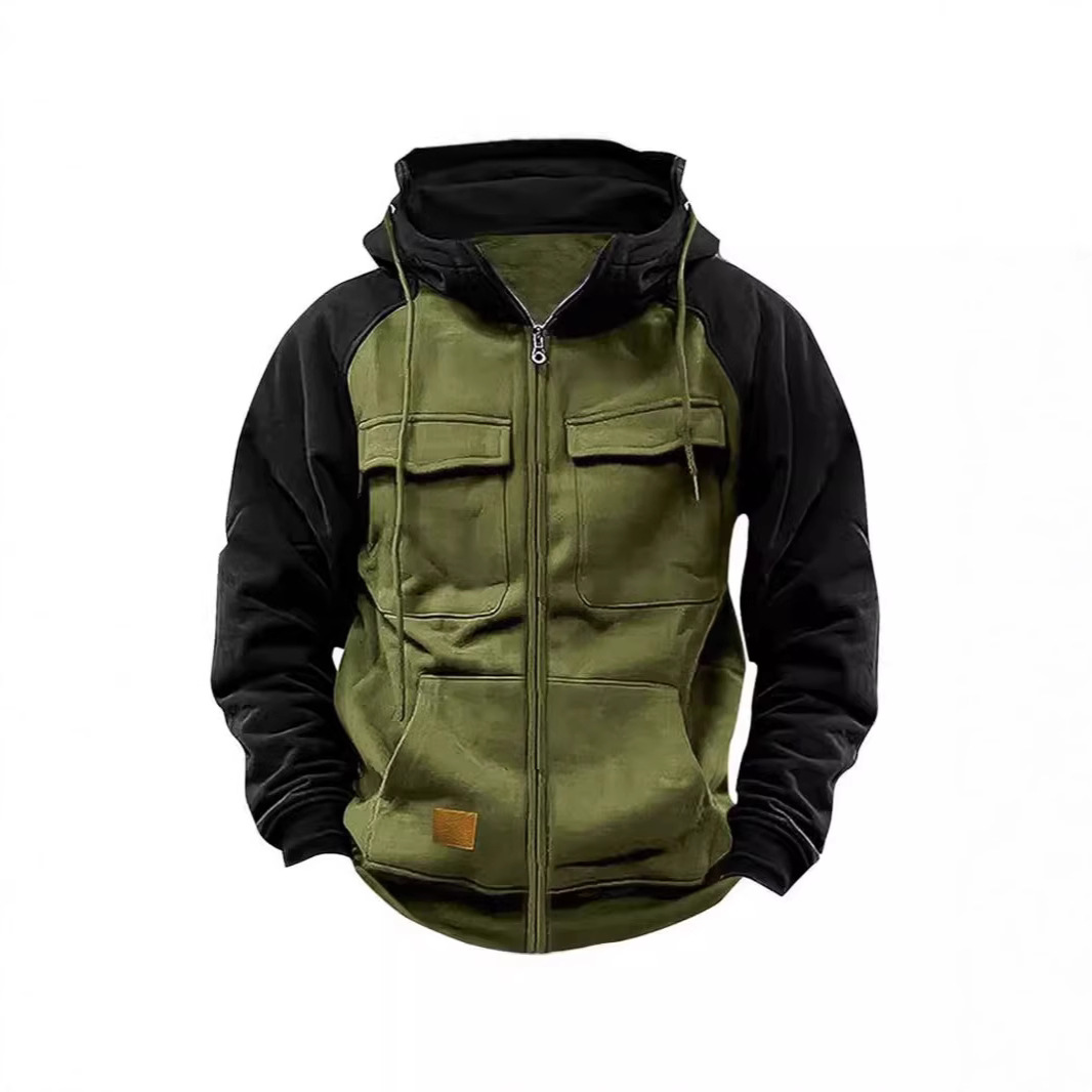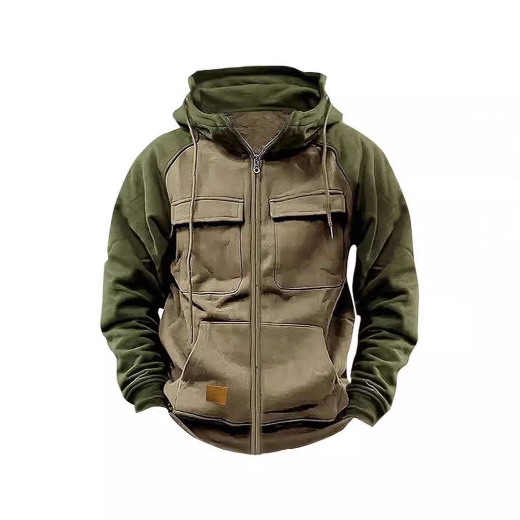 국경 간 봄과 가을 새로운 남성 후드 솔리드 컬러 스웨터 유럽과 미국 청소년 스포츠 멀티 포켓 가죽 툴링 탑