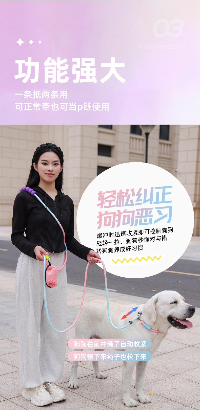 [엄격한 선택] 훈련 수준의 강아지의 P 로프에 매달릴 수 있습니다. 팬텀 개 로프 훈련 폭발 방지 허리 교차 개 견인 로프