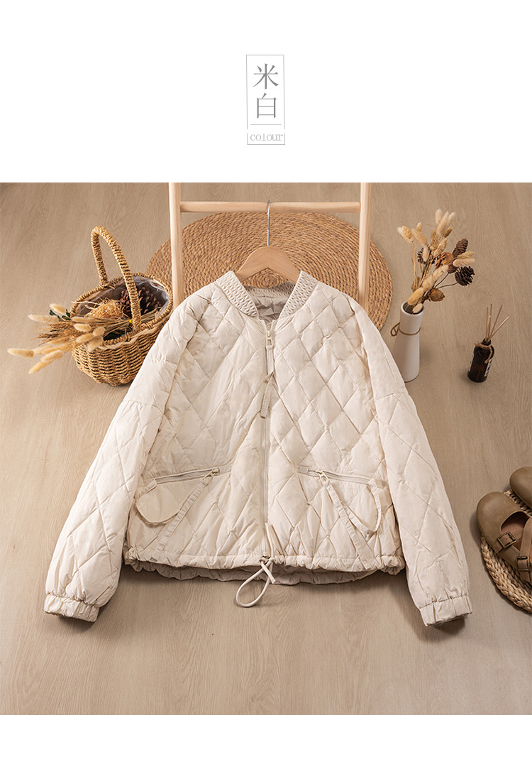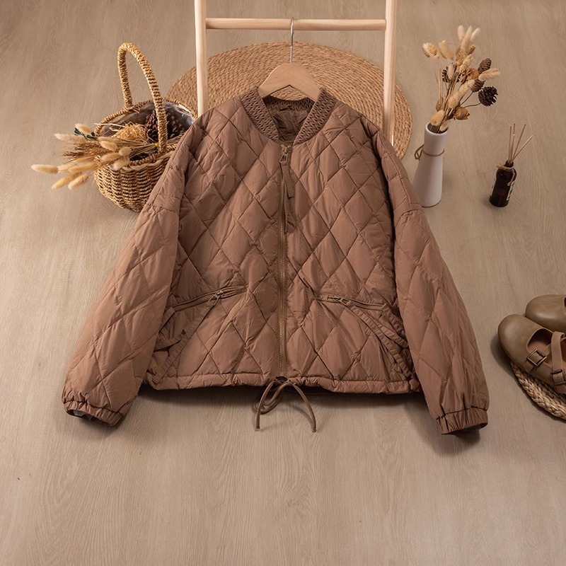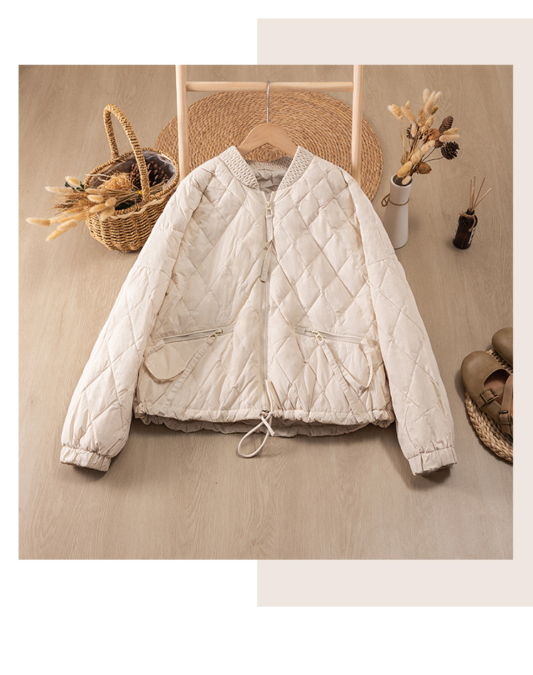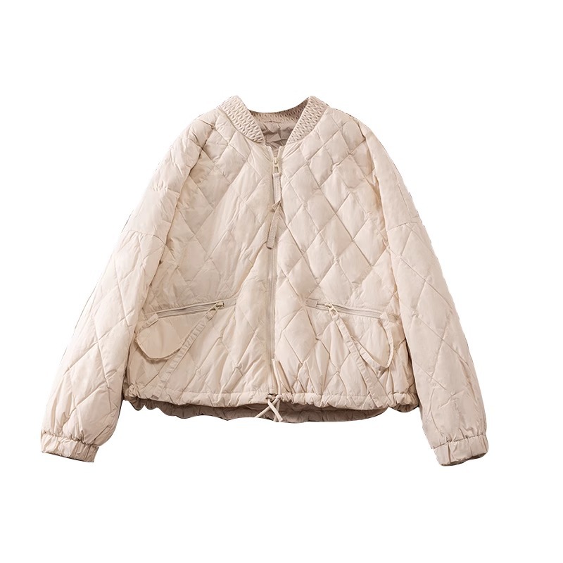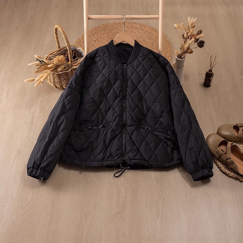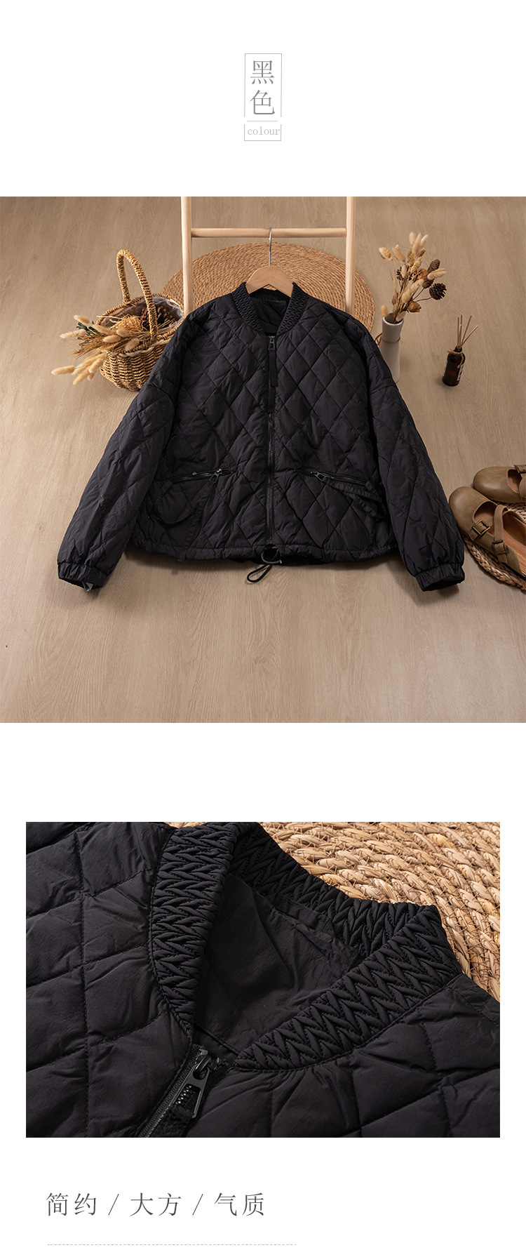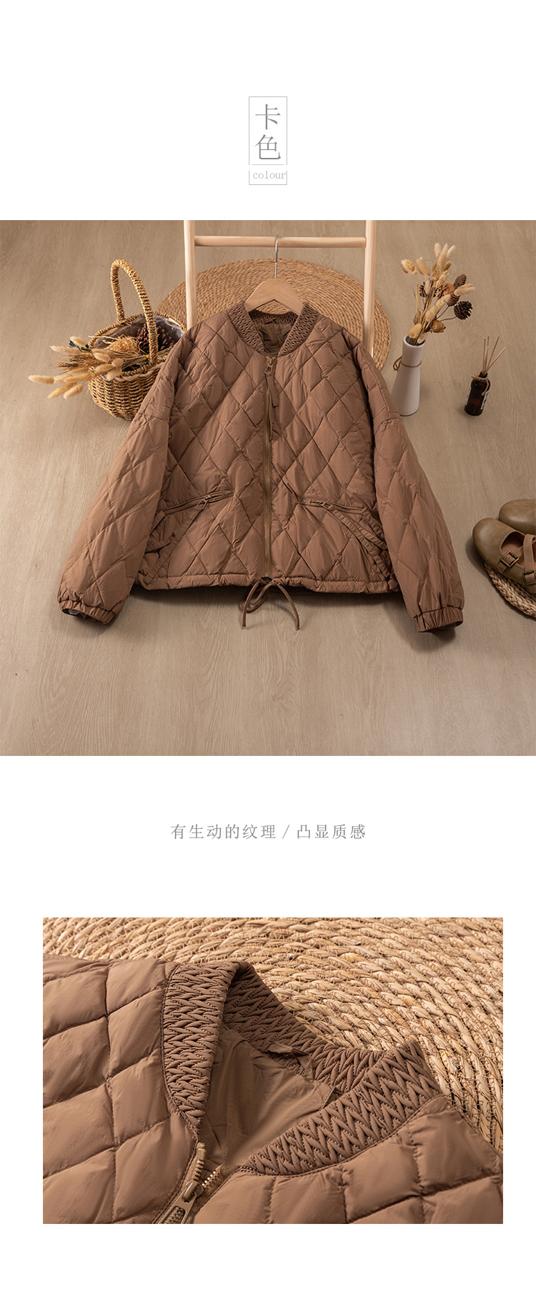23803 느슨한 짧은 재킷 여자의 2024 새로운 겨울 다이아몬드 칼라 작은 따뜻한 재킷