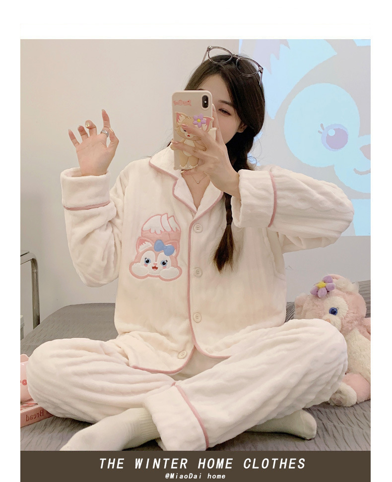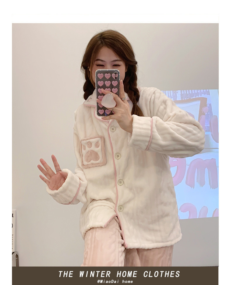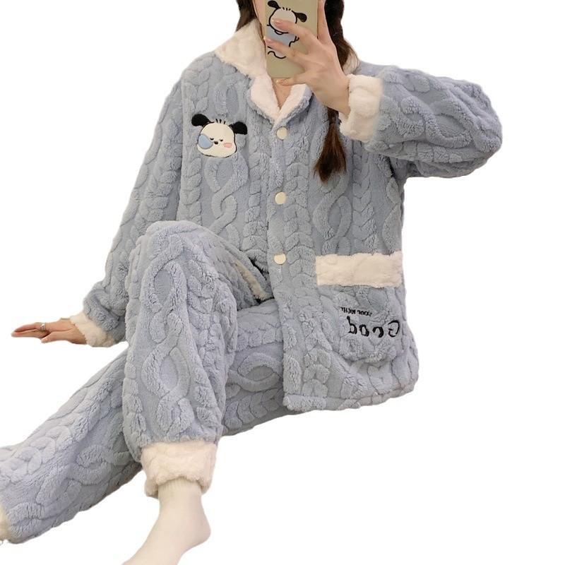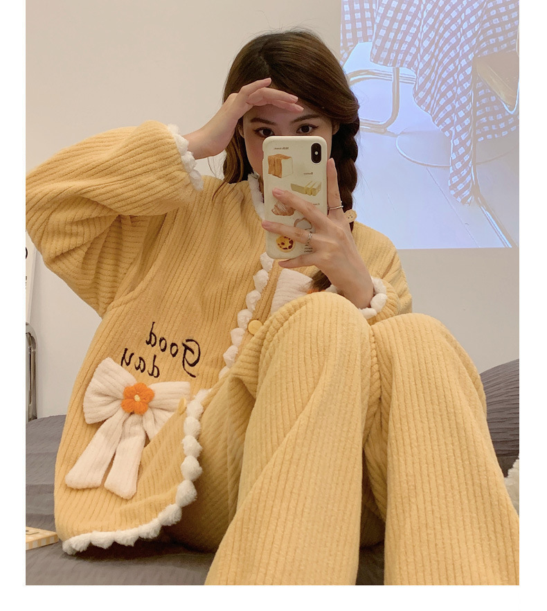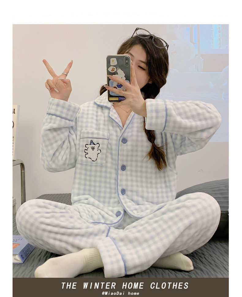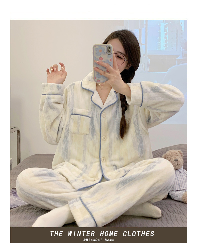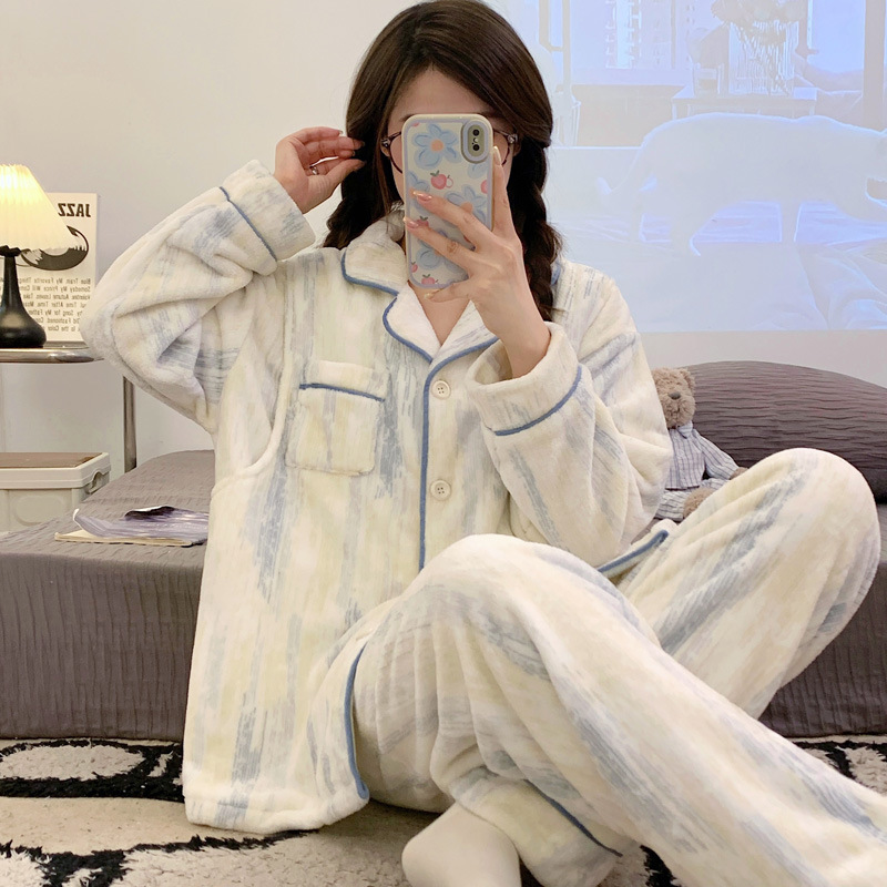 가을 겨울 플란넬 문 의류 임산부 간호 파자마 두꺼운 산호 양털 홈 의류 여성의 겨울 세트