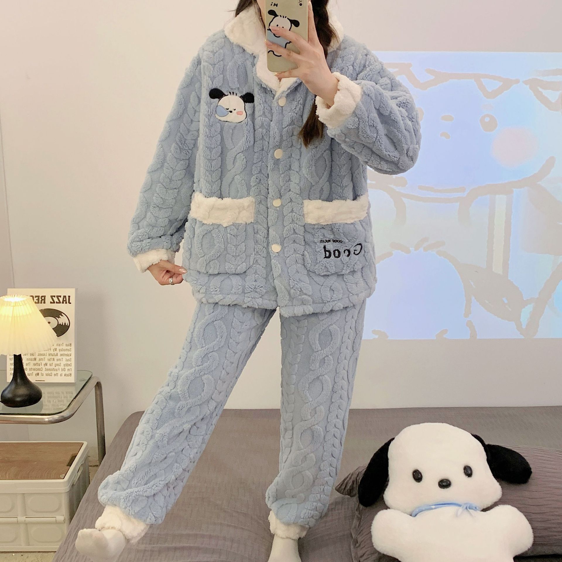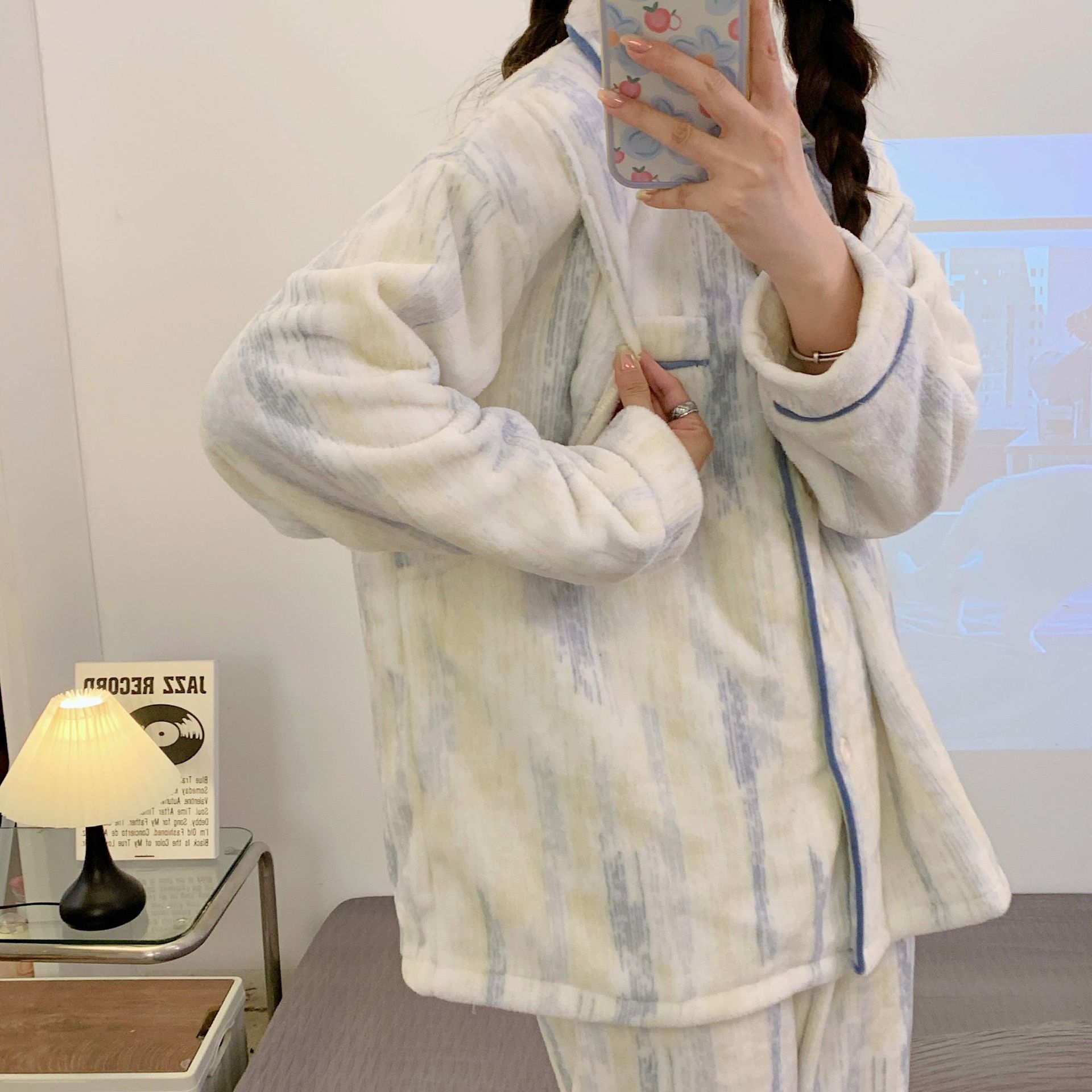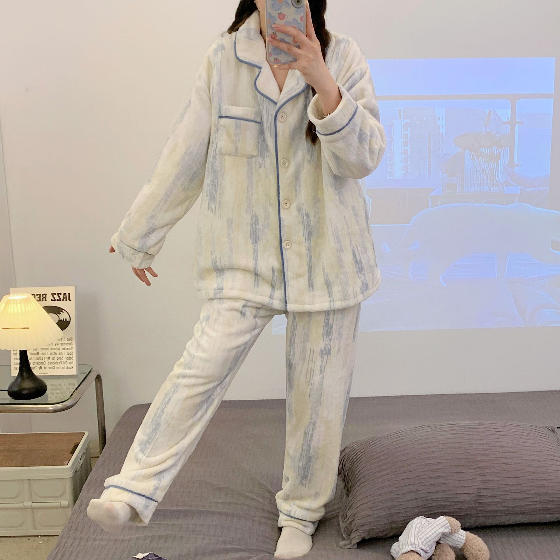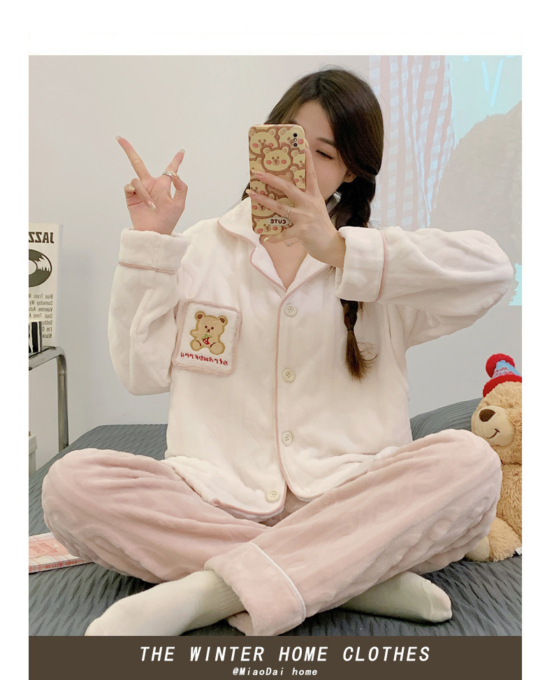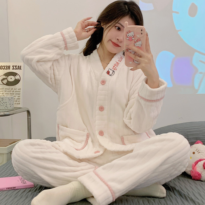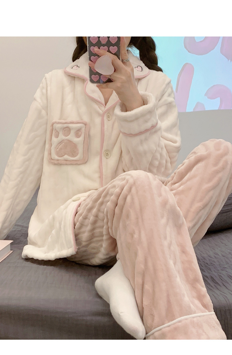 가을 겨울 플란넬 문 의류 임산부 간호 파자마 두꺼운 산호 양털 홈 의류 여성의 겨울 세트