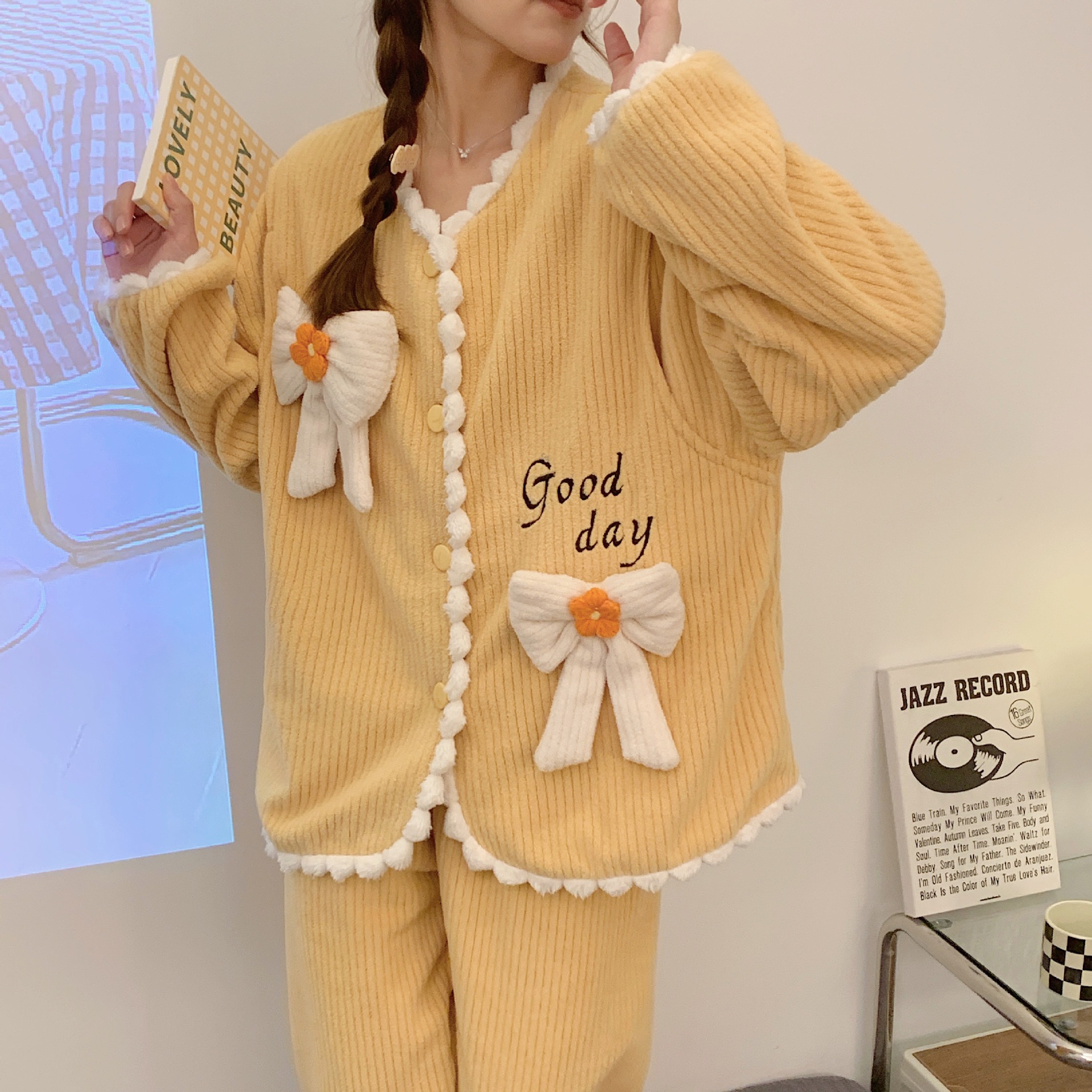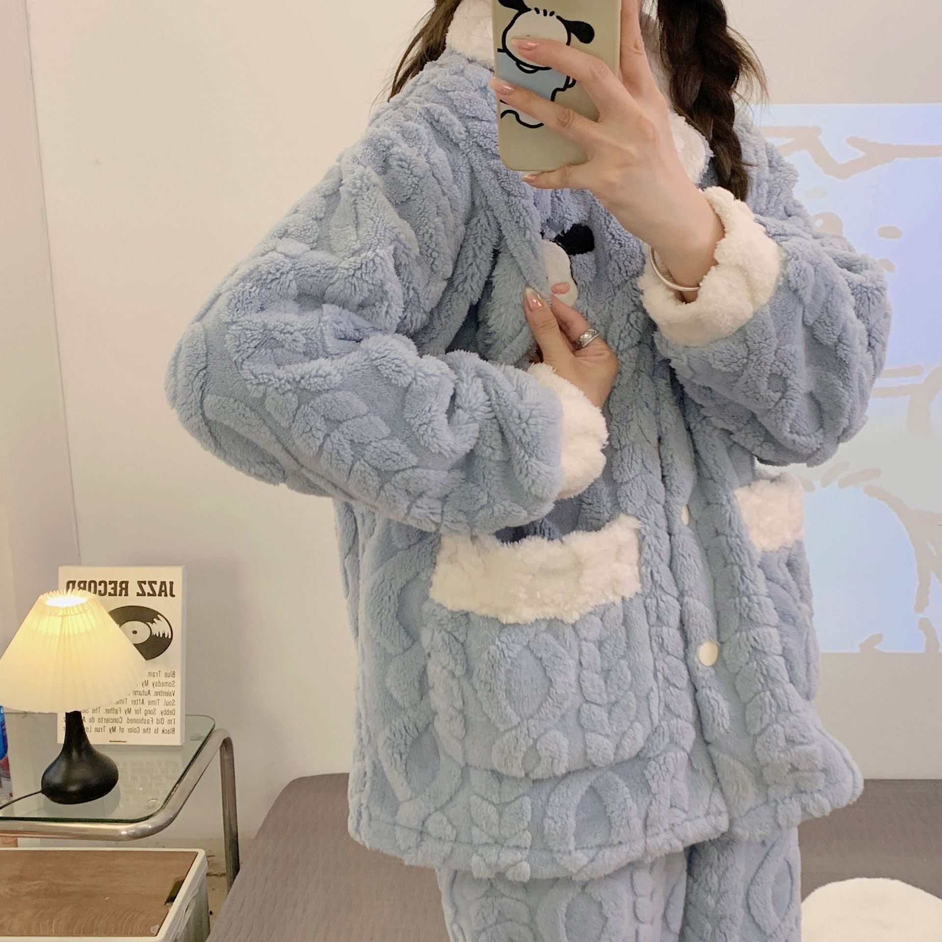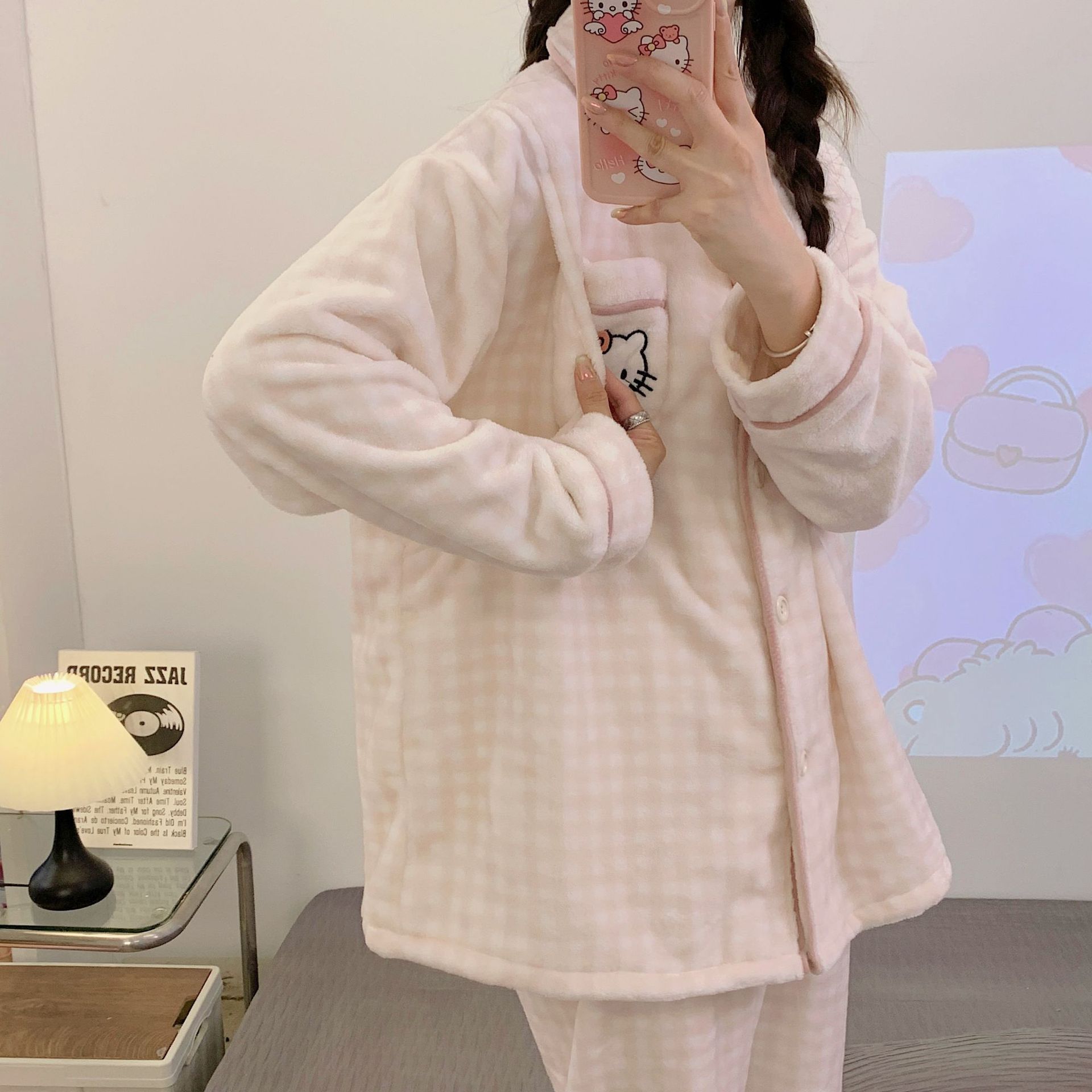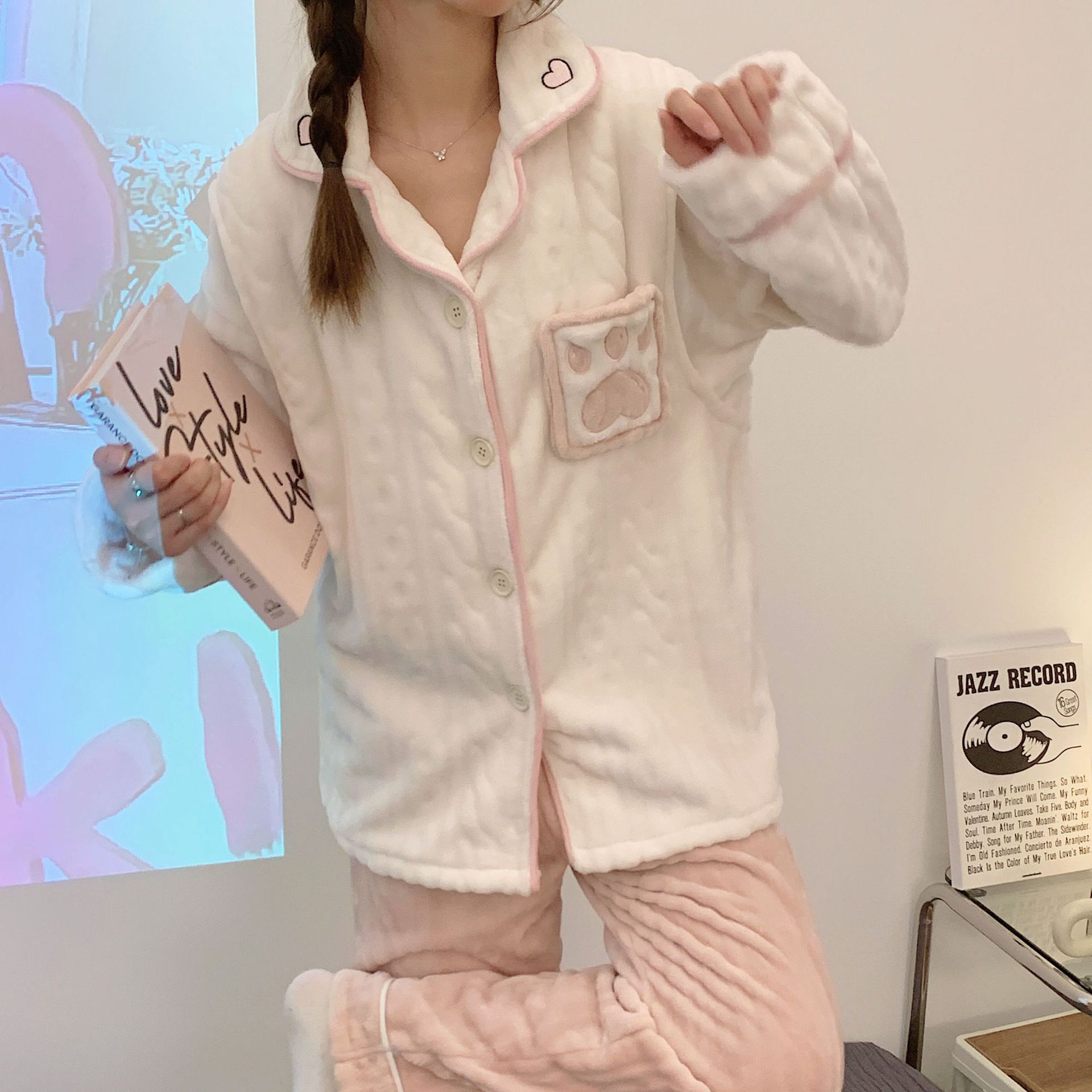 가을 겨울 플란넬 문 의류 임산부 간호 파자마 두꺼운 산호 양털 홈 의류 여성의 겨울 세트