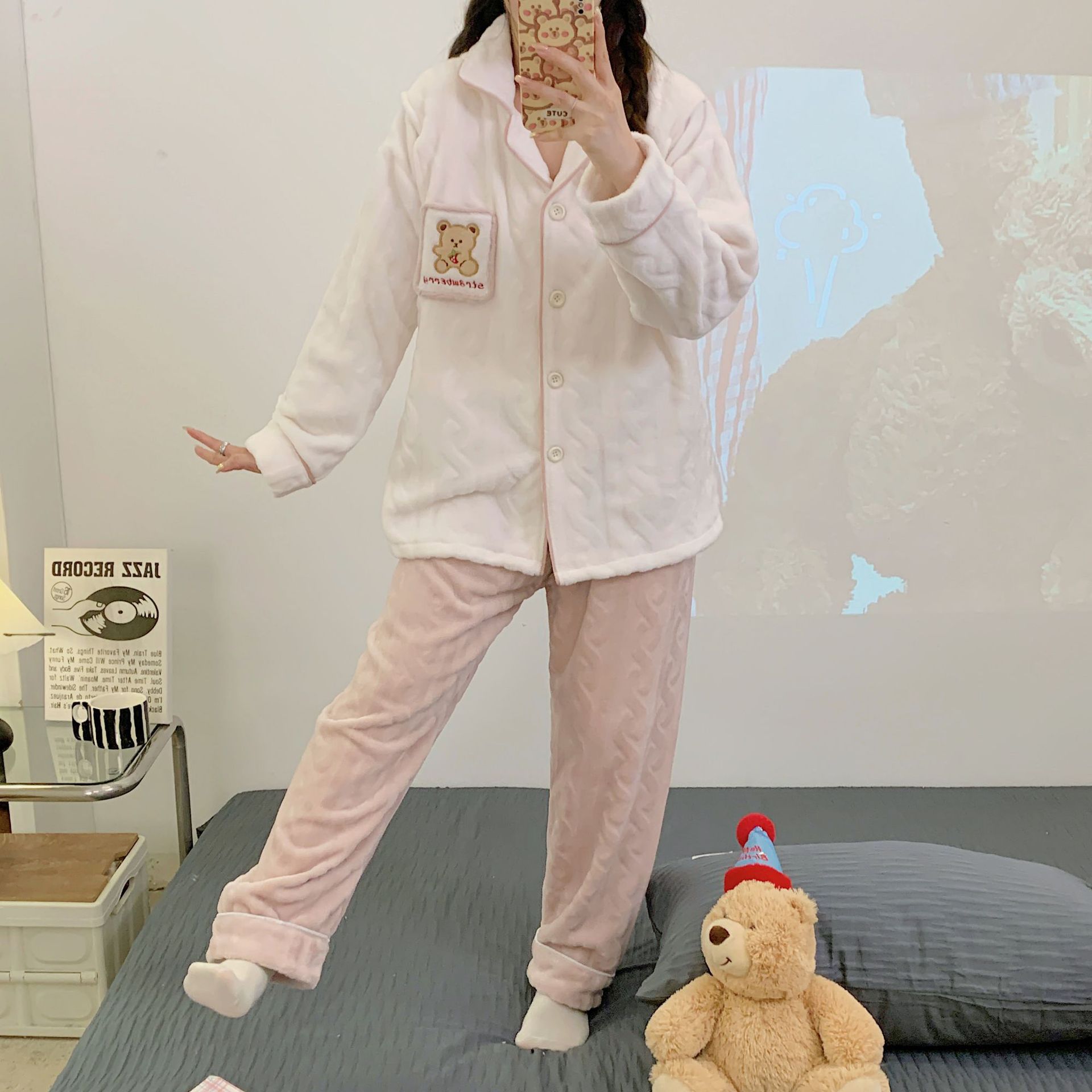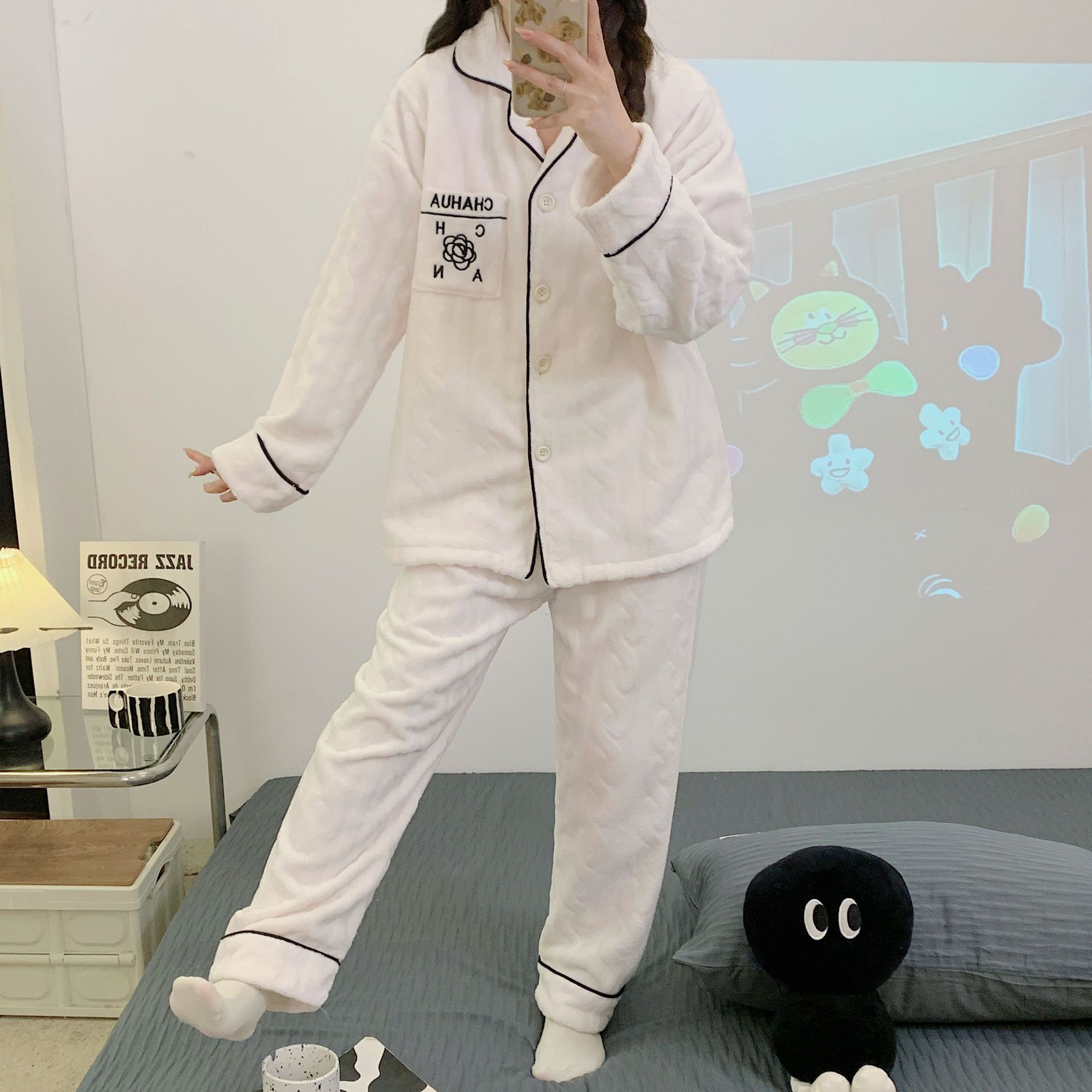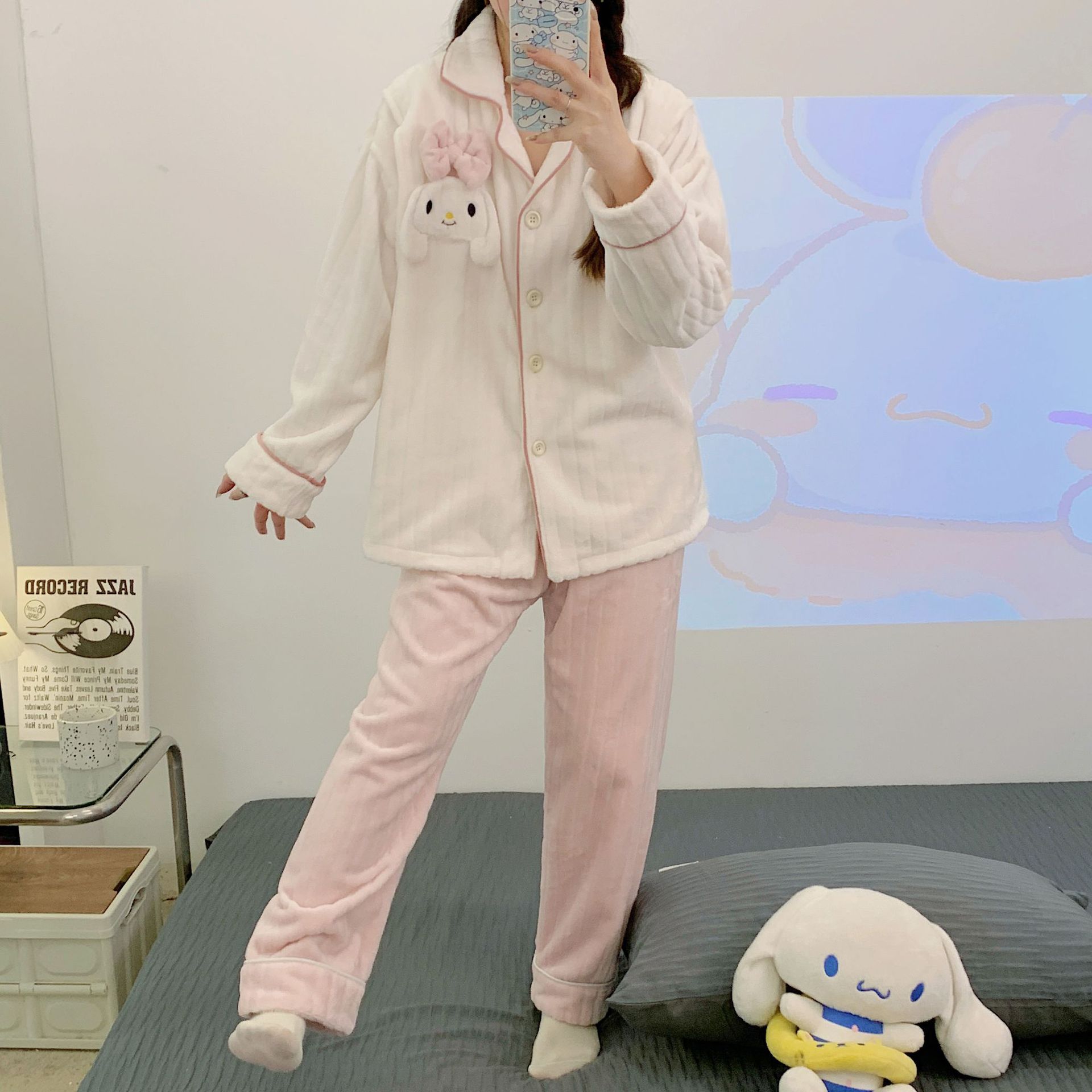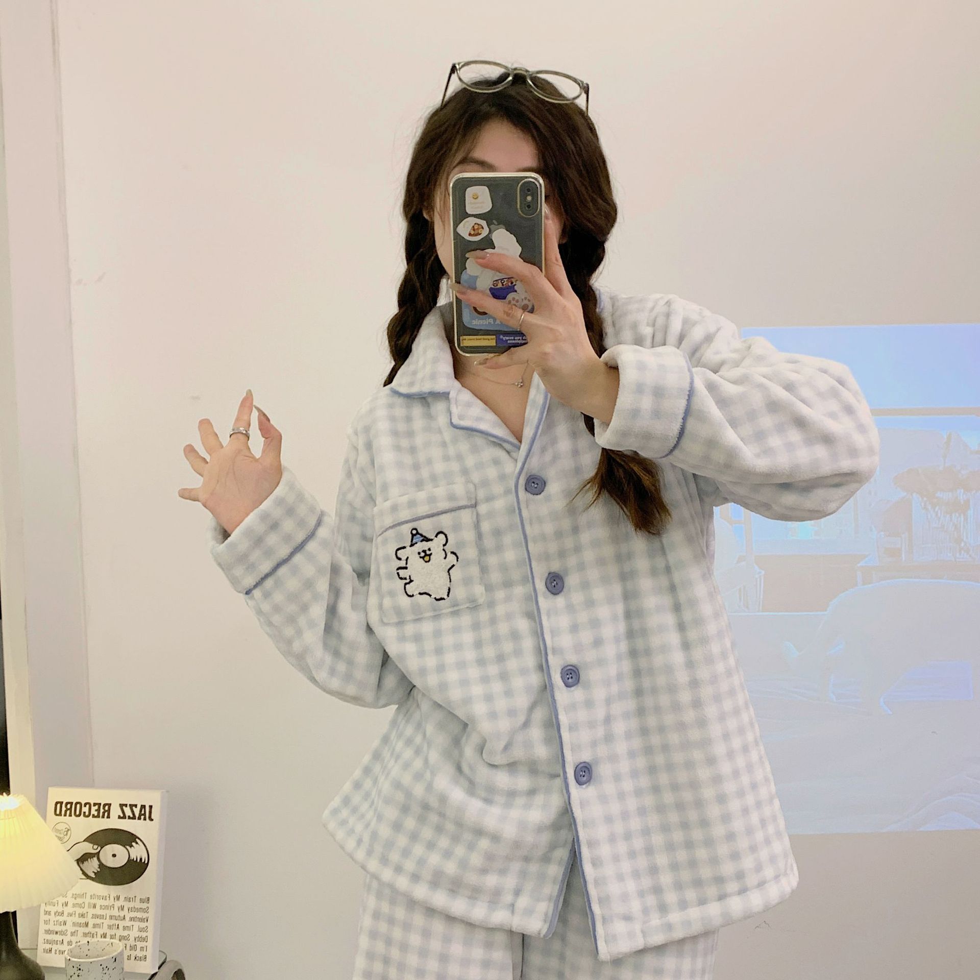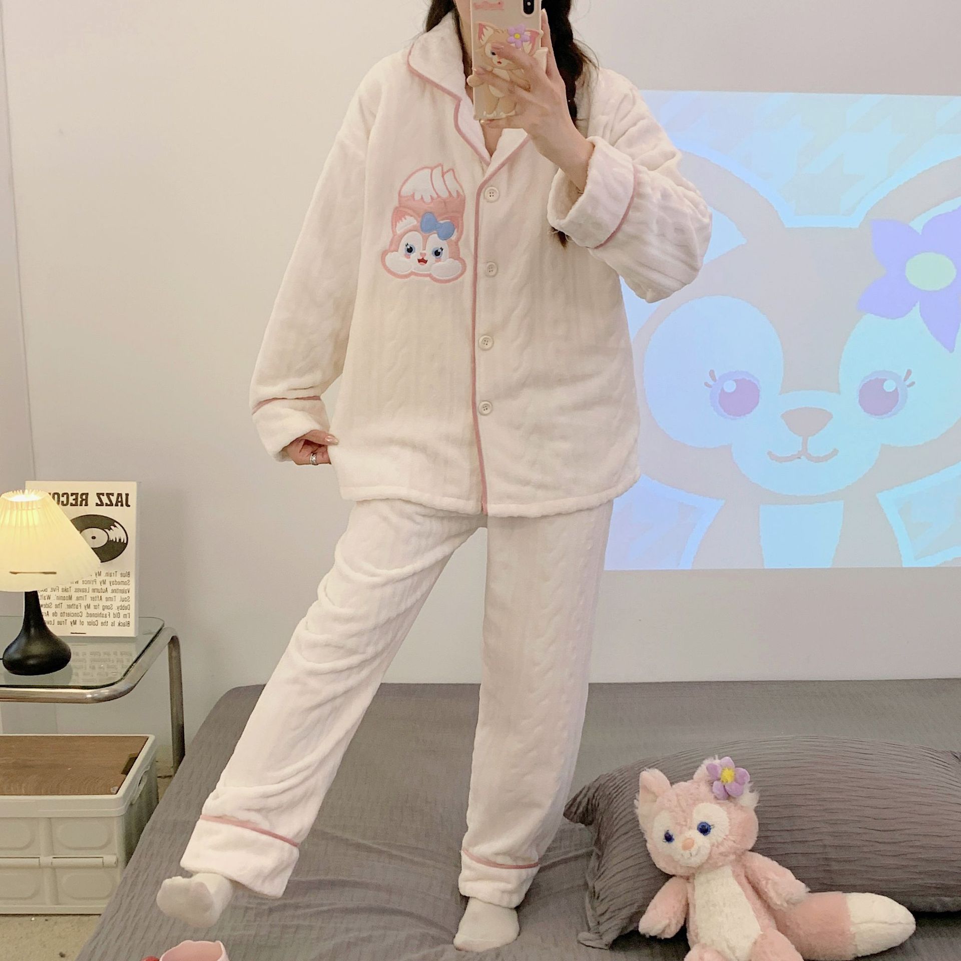 가을 겨울 플란넬 문 의류 임산부 간호 파자마 두꺼운 산호 양털 홈 의류 여성의 겨울 세트