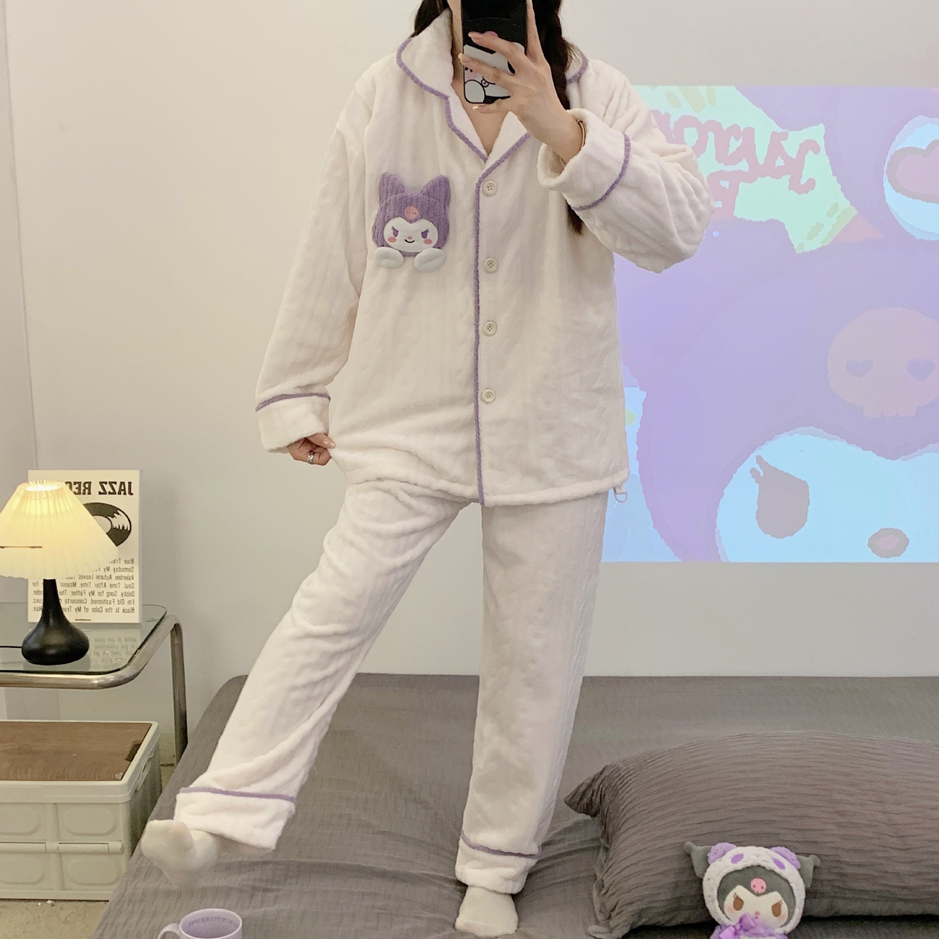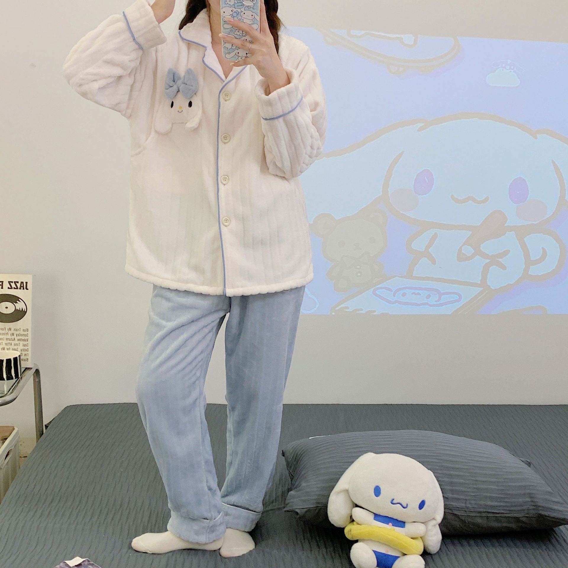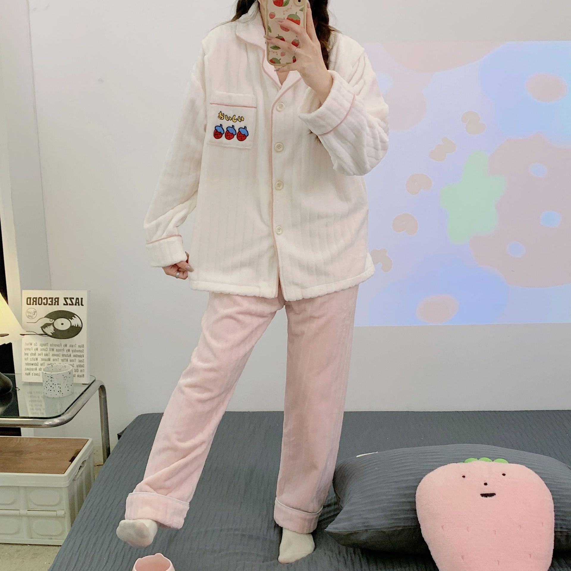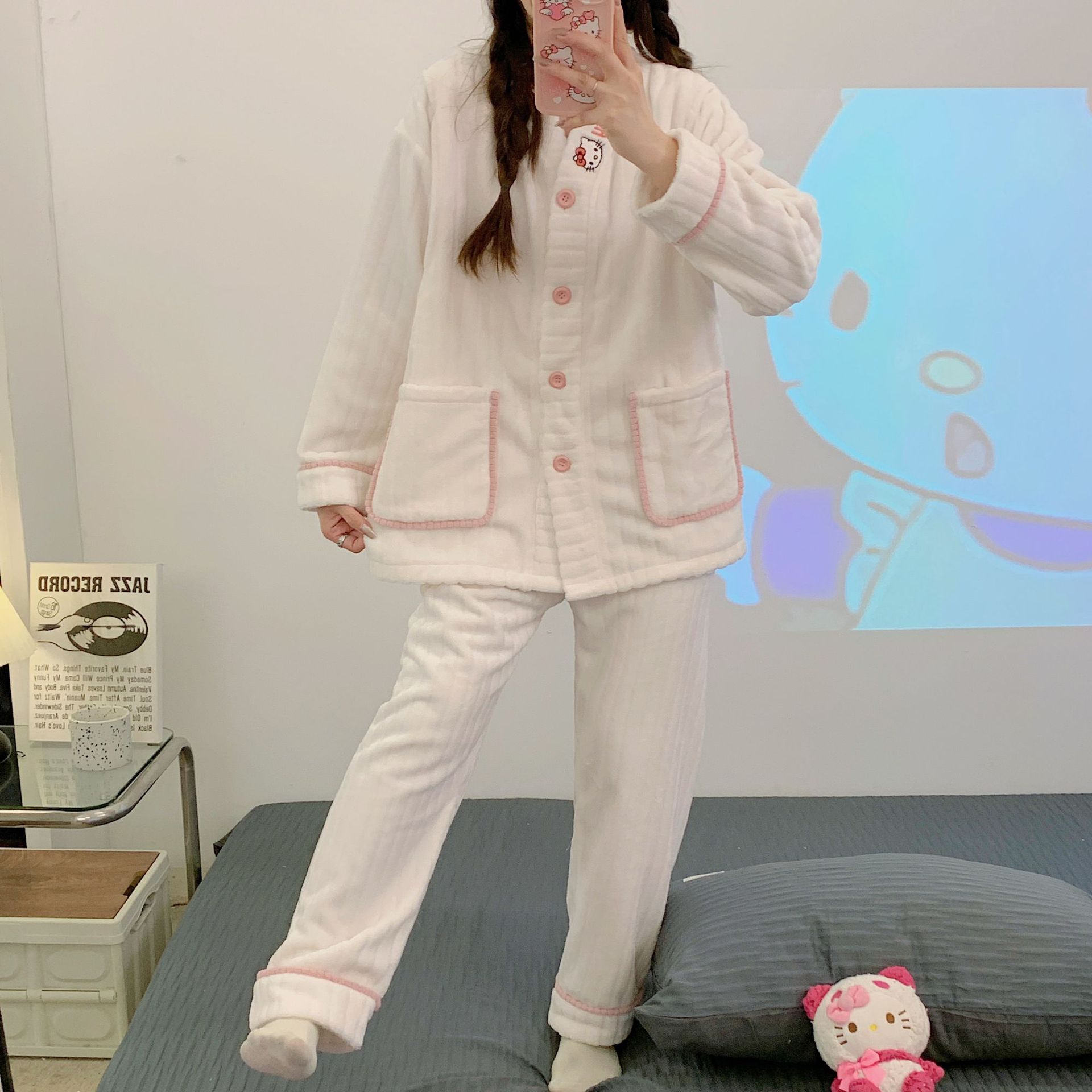 가을 겨울 플란넬 문 의류 임산부 간호 파자마 두꺼운 산호 양털 홈 의류 여성의 겨울 세트