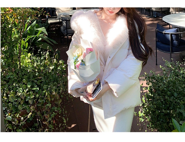 짧은 퀼트 라이트 파우더 폭스 모피 칼라 다운 재킷 여성의 겨울 새로운 따뜻한 얇은 두꺼운 코트