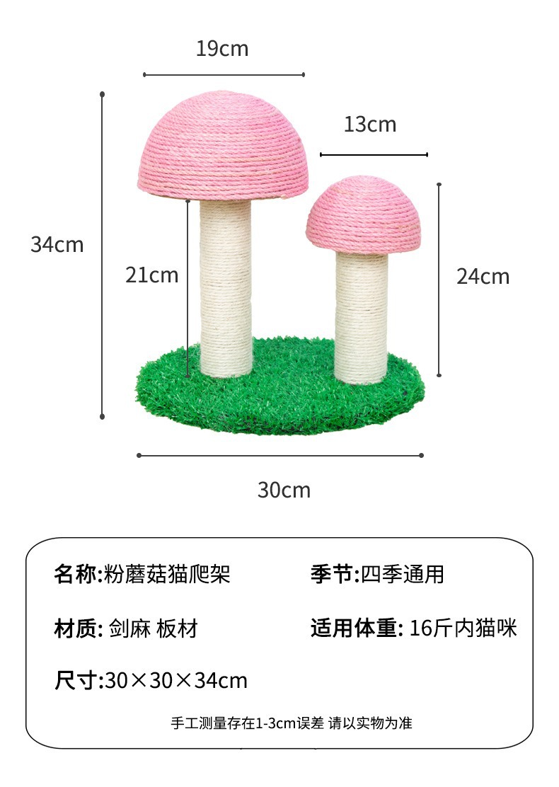 귀여운 핑크 버섯 모양의 애완 동물 고양이 등반 랙 안정적인 섀시 더블 레이어 고양이 점프 플랫폼 고양이 등반 애완 동물 장난감