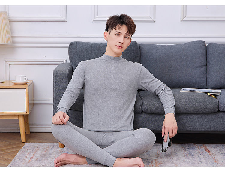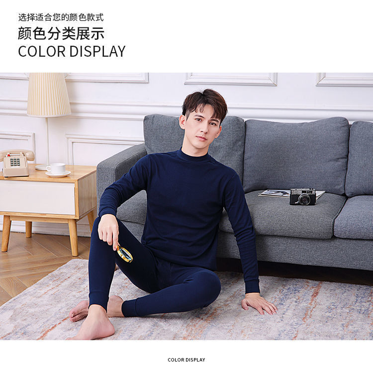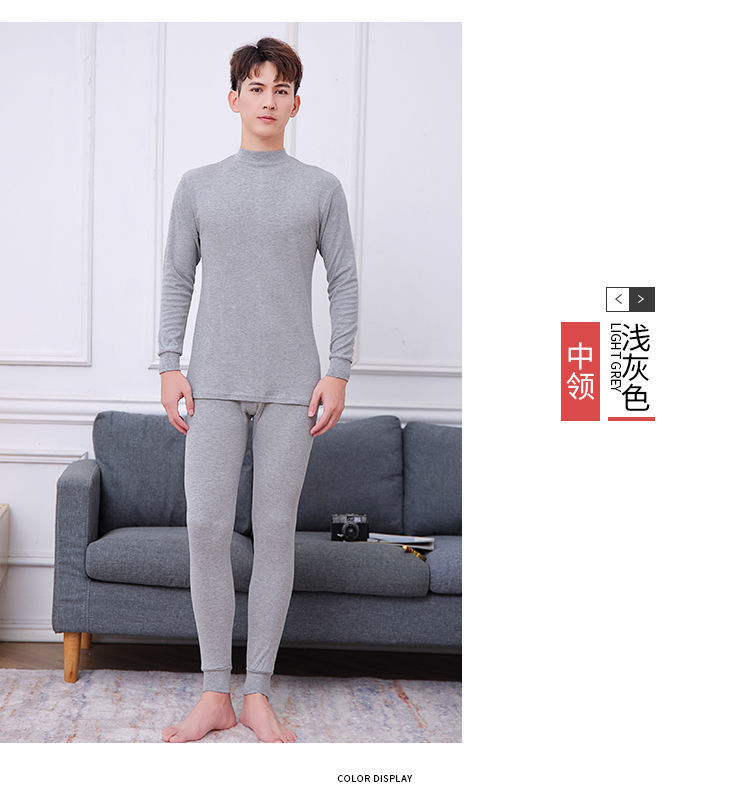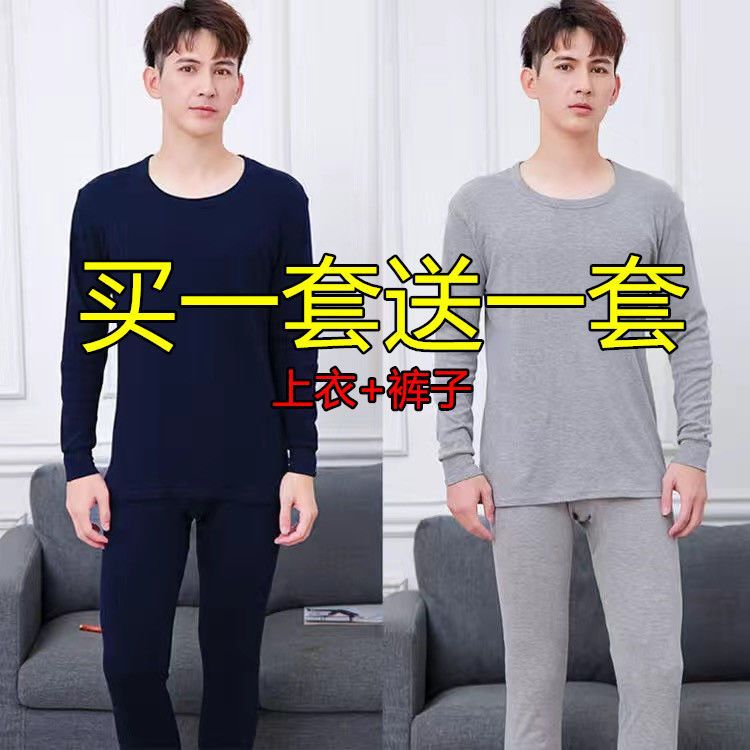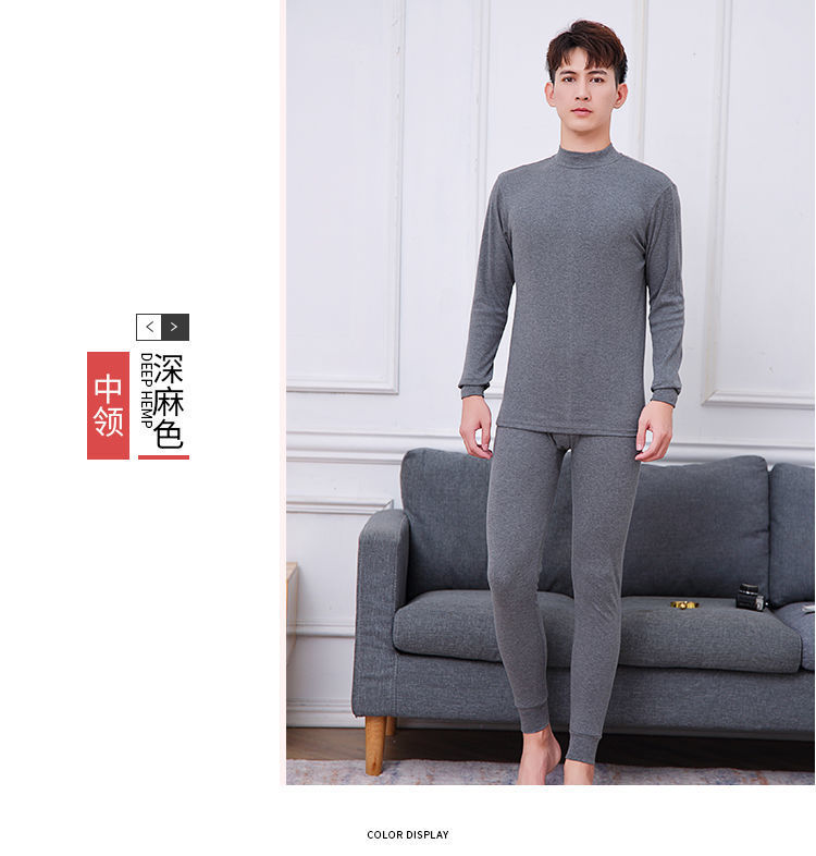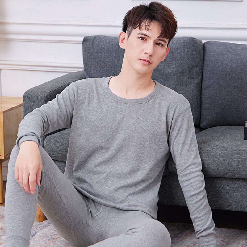 낮은 칼라 열 속옷 남성 기모 10 대 세트 두꺼운 겨울 둥근 목 소년 남성 가을 옷과 트렌디 한 가을 바지
