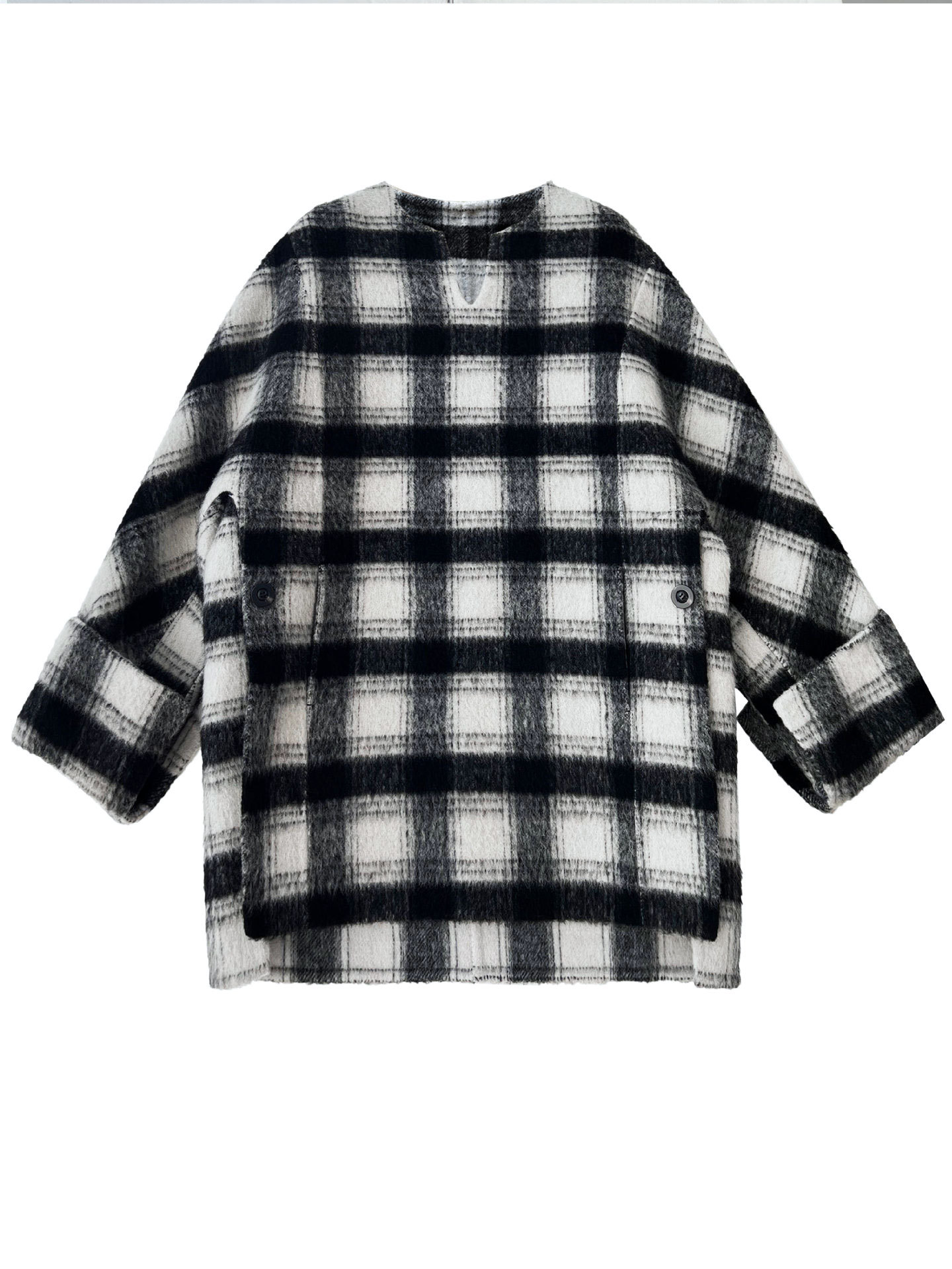블랙 스탠다드 웨스턴 스타일 흑백 격자 무늬 양면 양면 양모 코트 여성 2024 새로운 가을 및 겨울 풀오버 울 코트 5901