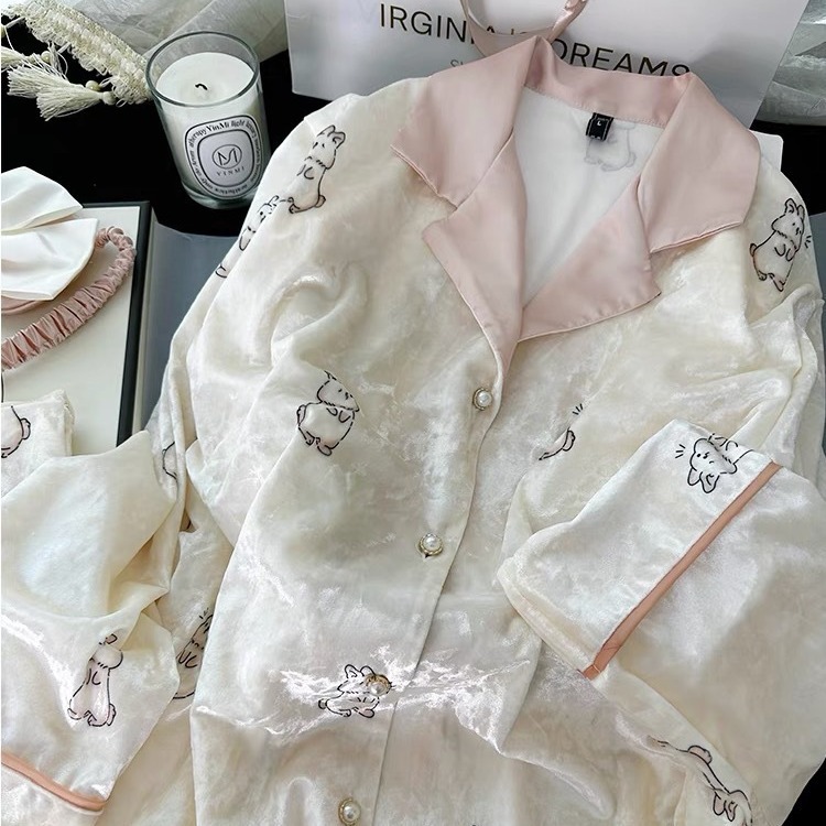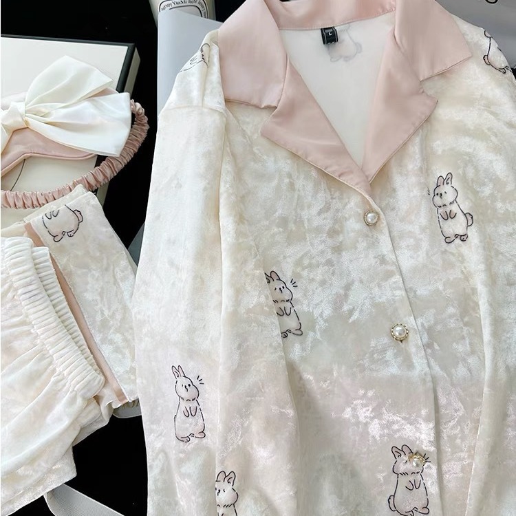 2024YD 홈 옷 달콤한 귀여운 골든 벨벳 버니 봄과 가을 뉴 파자마 긴 소매 바지 여성용 세트 얇은